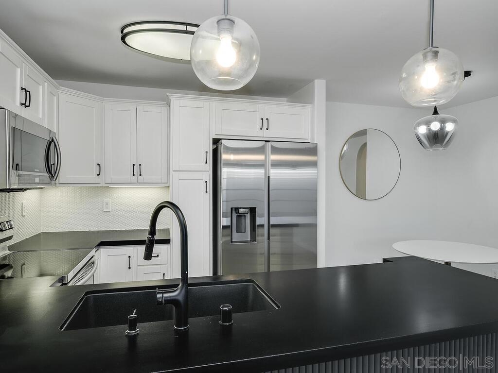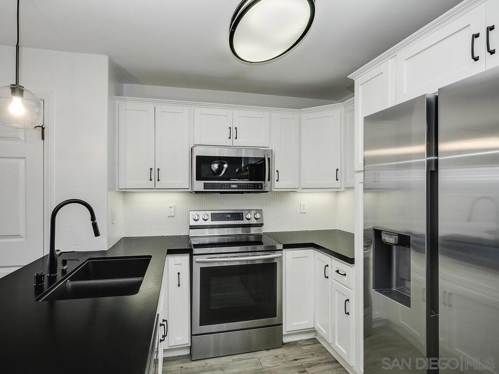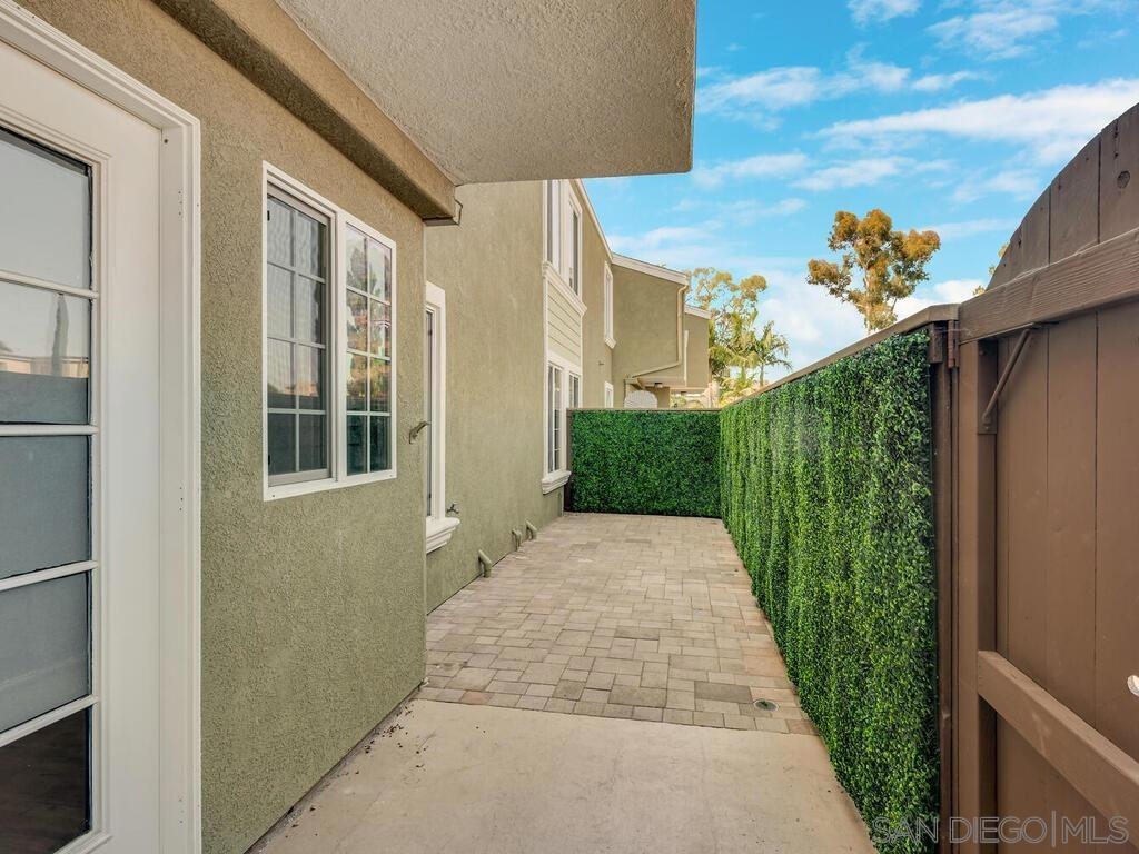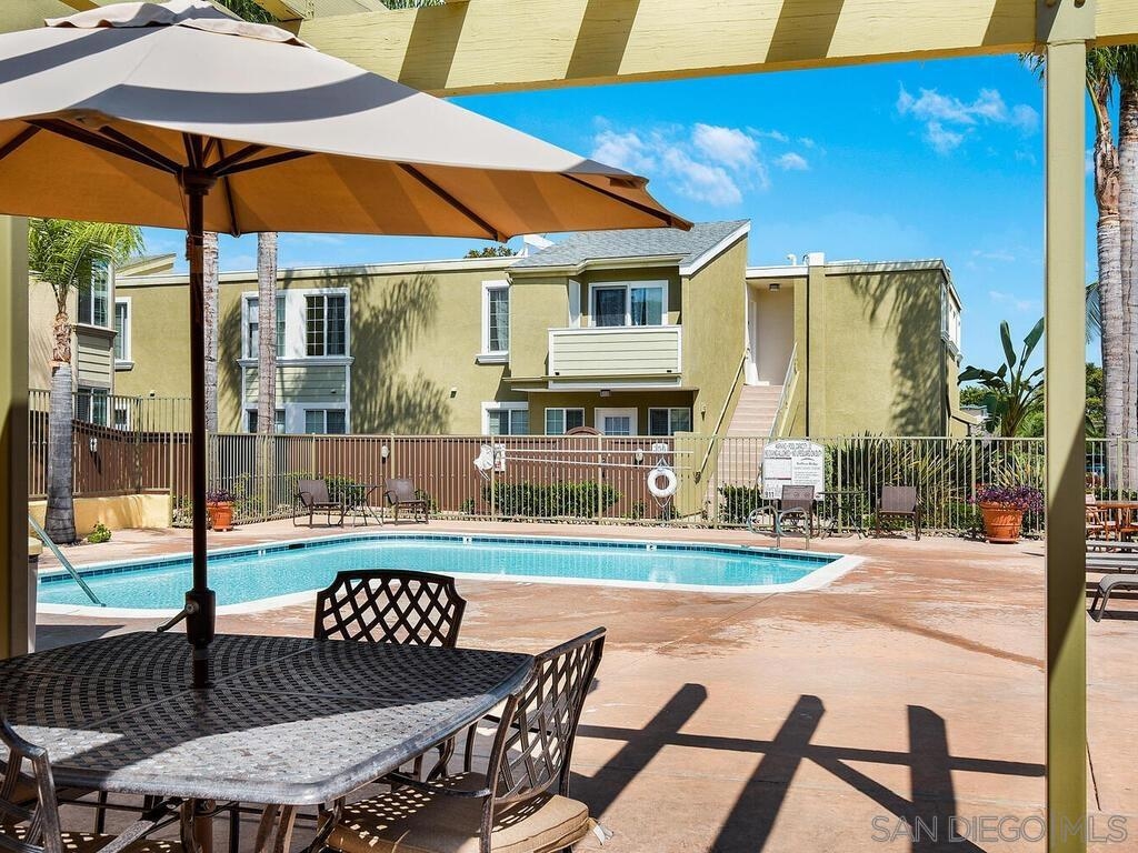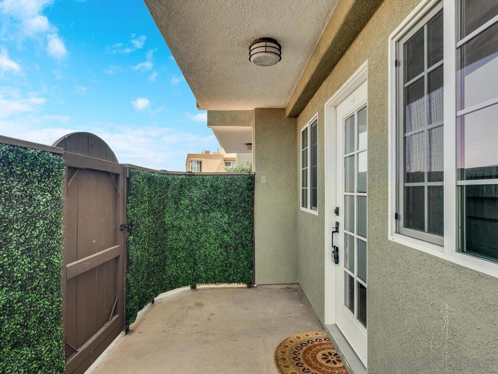 Unit 118 @ Balboa Ridge is one-of-a-kind. Upon entering you will quickly notice the indestructibly easy-to-clean tile floors and the calming custom paint. The kitchen and master bathroom were recently tastefully remodeled. All the lighting is new—Full-size Samsung washer/dryer in unit. Pride of home ownership oozes from this property. Timeless style and designer touches provide subtle extras you have to see to appreciate. The patio has custom paver tiles and superior UV-resistant quality artificial foliage/hedge boxwood green panels to cover the fence and welcomes you into this inviting space. You will enjoy San Diego’s picturesque sunsets in luxury. Both A/C units are newly replaced to keep you cool and plantation shutters will keep things as private as you wish. Rare parking directly in front of the unit. This gated community is well-maintained with amazing amenities including three pools, a sauna, barbecues, a gym, and beautifully manicured grounds with a low HOA. This central Clairemont location provides easy access to all the best of San Diego.