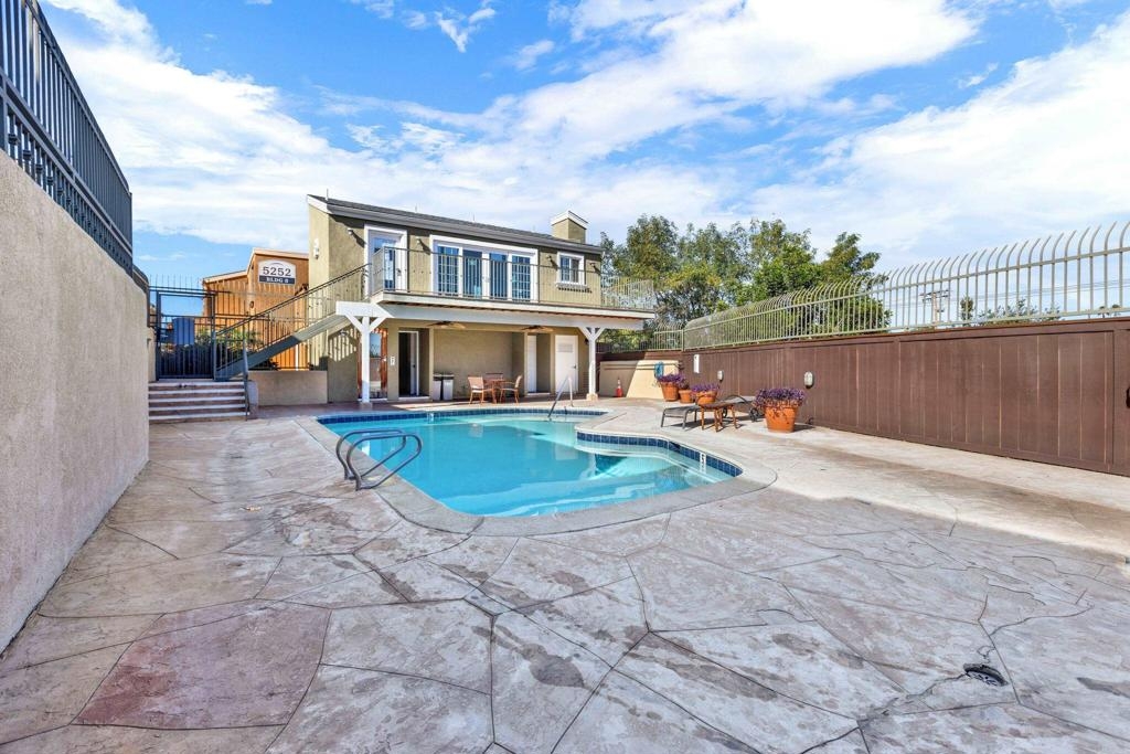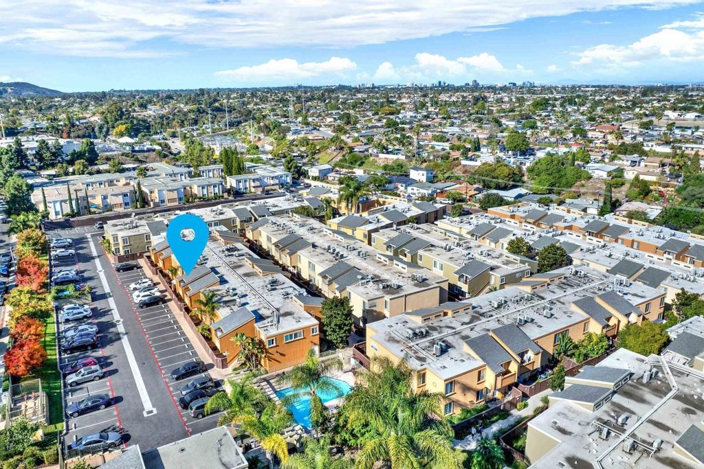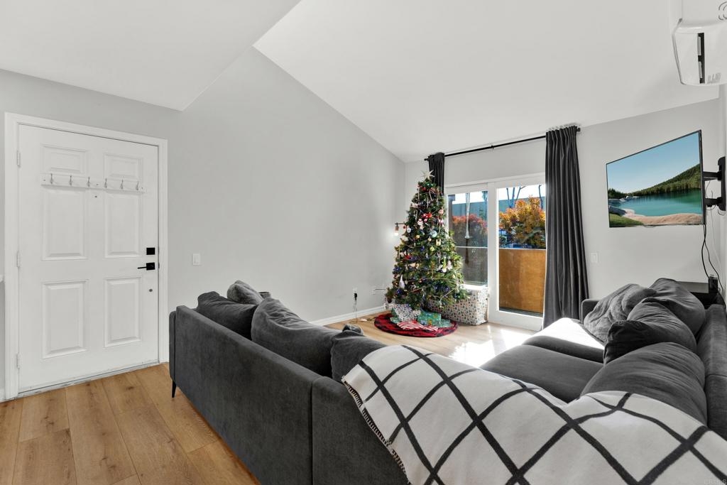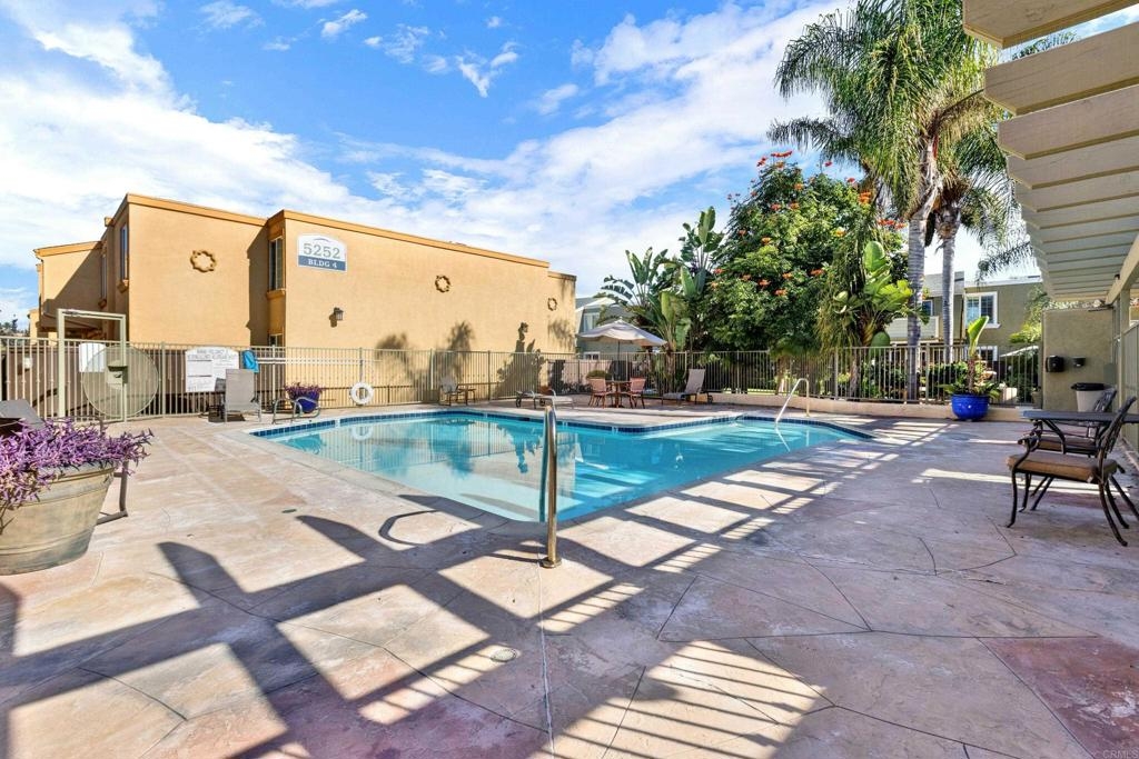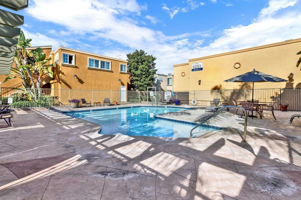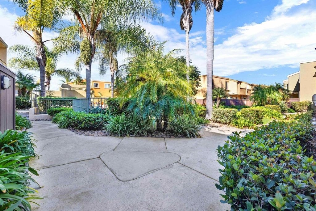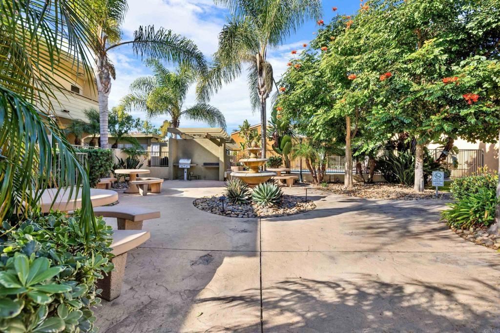 Great opportunity to own in Balboa Ridge in centrally located Clairemont!!This upstairs unit offers high cathedral ceilings, and immediate access from the assigned parking spot down below. Other upgrades include a laminate vinyl floor, quartz countertops, stainless appliances, interior laundry, a walk-in closet and large Primary bathroom, dual pane windows and more! Community amenities include gated access to parking, 3 swimming pools, picnic tables, BBQ, sauna and a gym. Easy walking distance to shops and dining. See virtual tour to see the neighborhood.