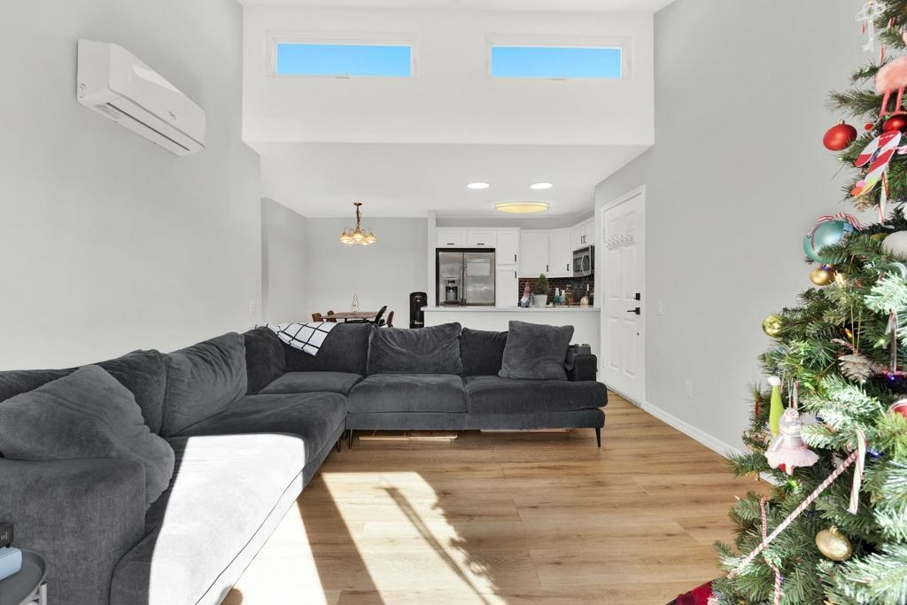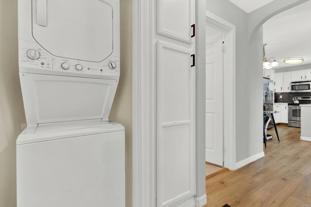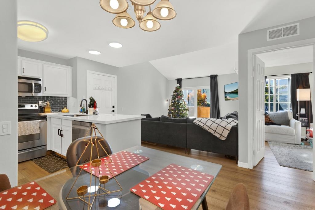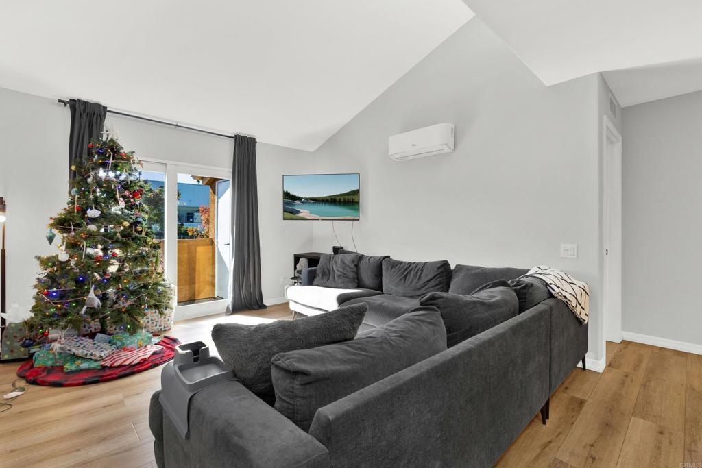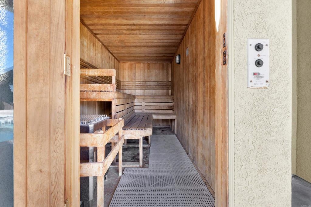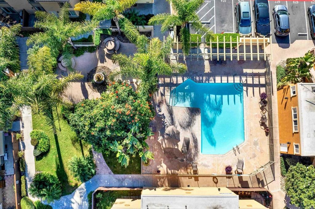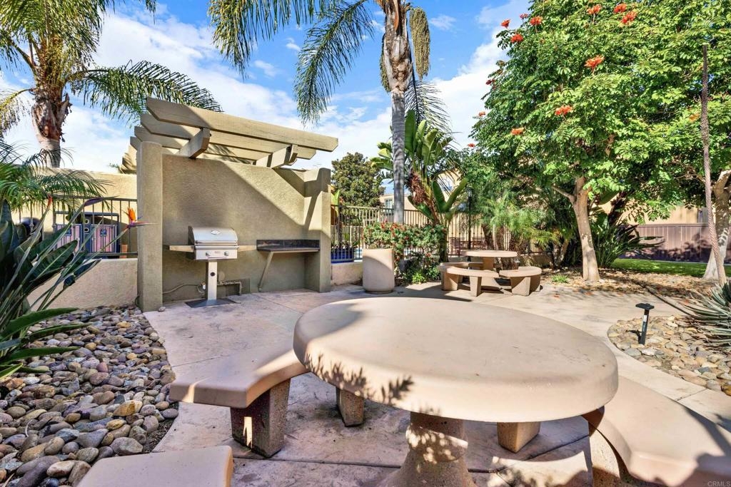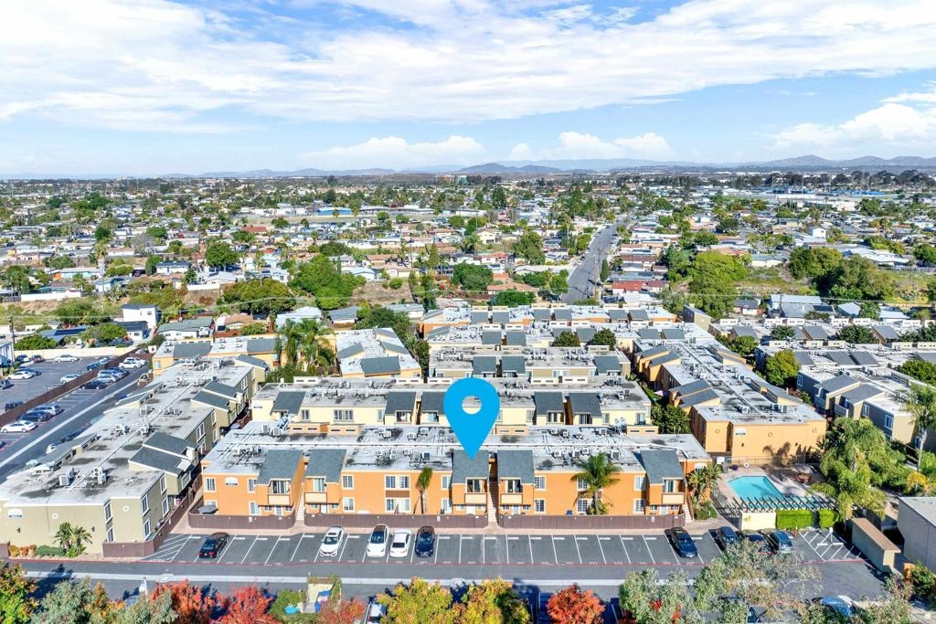 Great opportunity to own in Balboa Ridge in centrally located Clairemont!!This upstairs unit offers high cathedral ceilings, and immediate access from the assigned parking spot down below. Other upgrades include a laminate vinyl floor, quartz countertops, stainless appliances, interior laundry, a walk-in closet and large Primary bathroom, dual pane windows and more! Community amenities include gated access to parking, 3 swimming pools, picnic tables, BBQ, sauna and a gym. Easy walking distance to shops and dining. See virtual tour to see the neighborhood.