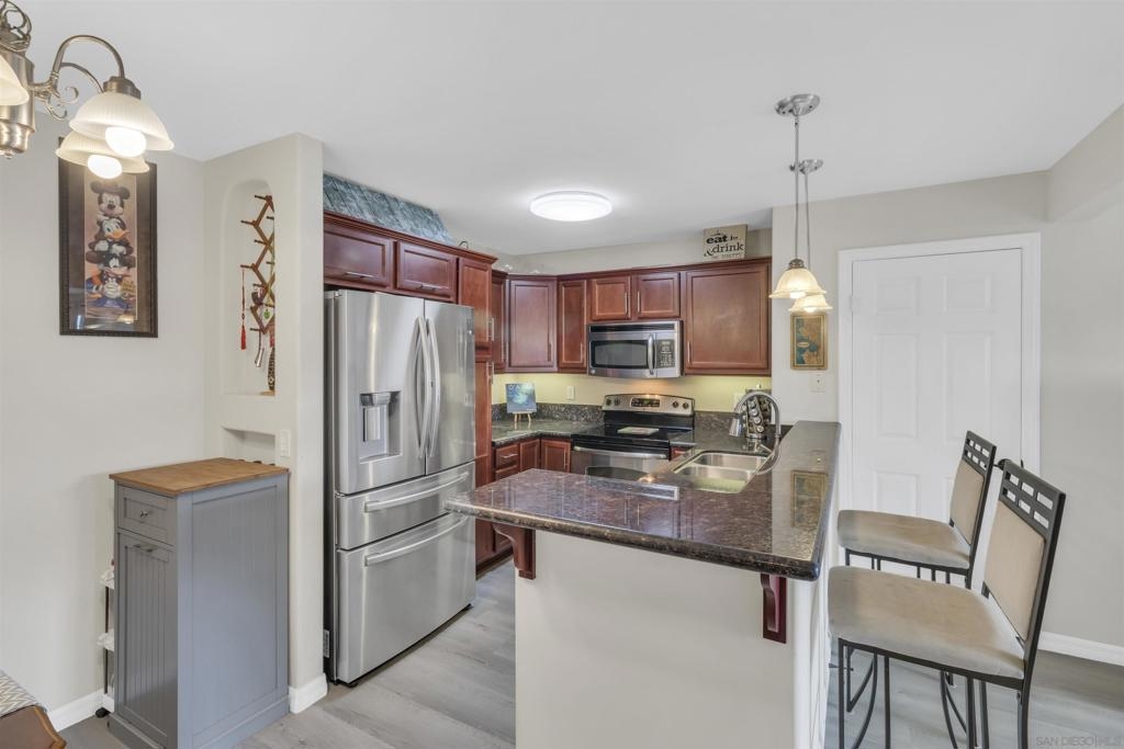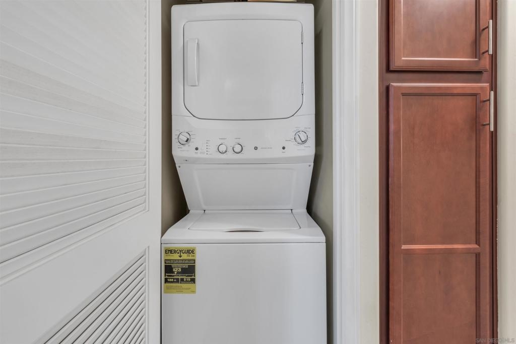 Welcome Home!!! Experience San Diego Urban living in this great 2 bedroom, 2 bath condo, inside a gated community. Enter your front door to an open and naturally lighted space: living room, dining area, and kitchen combo. The kitchen has a granite countertop and shaker cabinets. Bedrooms have mirrored closets. Enjoy your early morning coffee smelling the fresh air outside on your very own private patio with a thriving Blackberry bush! Brand new In-unit stackable washer/dryer. Luxury vinyl plank (LVP) flooring, newer bathtub with shower door. Complex amenities include a park-like space with a BBQ grill, outdoor circular concrete benches, a community clubhouse, a game room, access to 3 pools, a spa, and a state-of-the-art fitness center. LOCATION LOCATION LOCATION Located close to the 5, 805, and 52 freeways. Restaurants and grocery shopping nearby. It is within walking distance of Sprouts, Vons, Target, and 99 Ranch! Assigned parking is right in front of the unit for added convenience. TRULY A MUST SEE!