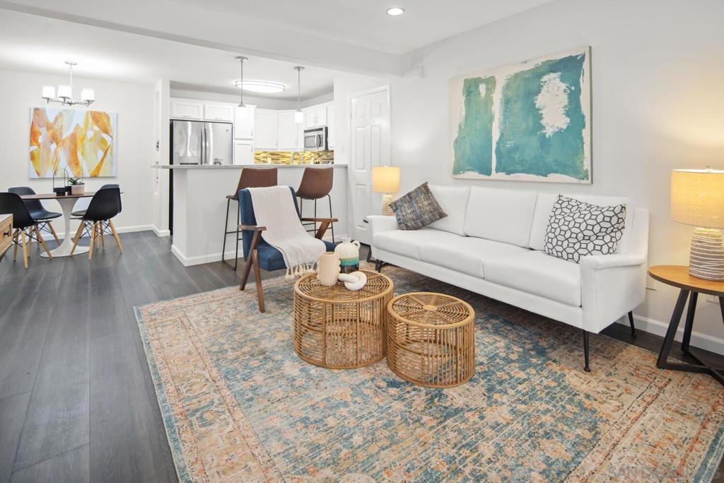 Welcome to your new home, perfectly situated in the vibrant heart of Clairemont! This exquisite residence boasts a private patio, ideal for entertaining or reading a book while soaking up the sunshine, providing a seamless blend of indoor and outdoor living. Step into a pet-friendly community that offers an array of amenities designed to enhance your lifestyle. Enjoy a refreshing dip in one of the three pools, unwind in the relaxing sauna, stay fit in the fully-equipped gym, and enjoy the outdoor picnic areas. Convenience is at your doorstep, with grocery stores, Target, Home Depot, and a variety of restaurants all within walking distance. Embrace the coastal lifestyle with Mission Bay and beautiful beaches just minutes away, offering endless opportunities for recreation and relaxation. Discover the perfect combination of comfort, convenience, and community in this exceptional Clairemont residence. Welcome to Balboa Ridge, nestled in the vibrant community of Clairemont! This charming condo offers a single-level floor plan with a spacious outdoor patio, perfect for relaxation and entertaining. Inside, you will find 2 cozy bedrooms and 2 well-appointed bathrooms spread across 782 square feet of comfortable living space. The home has been freshly painted, and new carpeting has been installed in both bedrooms, adding a fresh and welcoming touch. The kitchen is a chef's delight, featuring elegant Italian Carrera marble countertops, sleek stainless steel appliances, and durable luxury vinyl flooring. For added convenience, there is a stackable washer and dryer tucked away in a closet, and plantation shutters adorn the windows throughout the home, offering both style and privacy. Balboa Ridge provides a perfect blend of comfort and style, making it an inviting place to call home. Come and see for yourself all that this delightful condo has to offer!