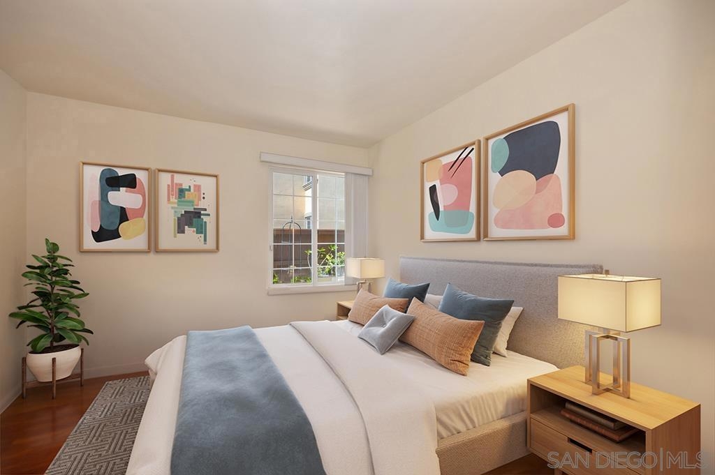Just minutes away from the beach, La Jolla, and Torrey Pines hiking trails, this stunning home is nestled in the coveted Balboa Ridge Gated community. Experience resort-style living in this exquisite 3-bedroom, 2-bathroom condo located in the heart of Clairemont. Step into an inviting open floor plan adorned with laminate flooring, elegant French paned windows, and a host of modern amenities including newer appliances and remote-controlled mini-split AC/Heating system. The home boasts a neutral color palette, accentuating the beautiful kitchen cabinets with granite countertops, pendant lighting over the breakfast bar, and stainless steel appliances, perfect for inspiring the chef in your family. The primary bedroom features an ensuite bath with a step-in shower and a spacious wardrobe closet with mirrored doors. The bright and cheerful additional bedrooms are complemented by a second bath, complete with a tub/shower combination, granite countertop, and tile flooring. Convenience is key with a full-size stacked washer and dryer discreetly tucked away for easy access, as well as additional pantry/storage near the kitchen and a separate storage locker included for off-season items. The community includes 3 pool areas, a club house, fitness center, and so much more. Embrace the opportunity to make this exquisite home your own today.