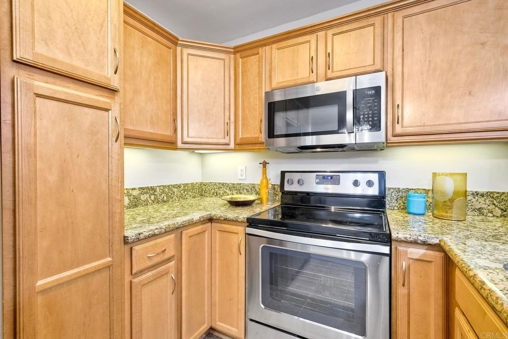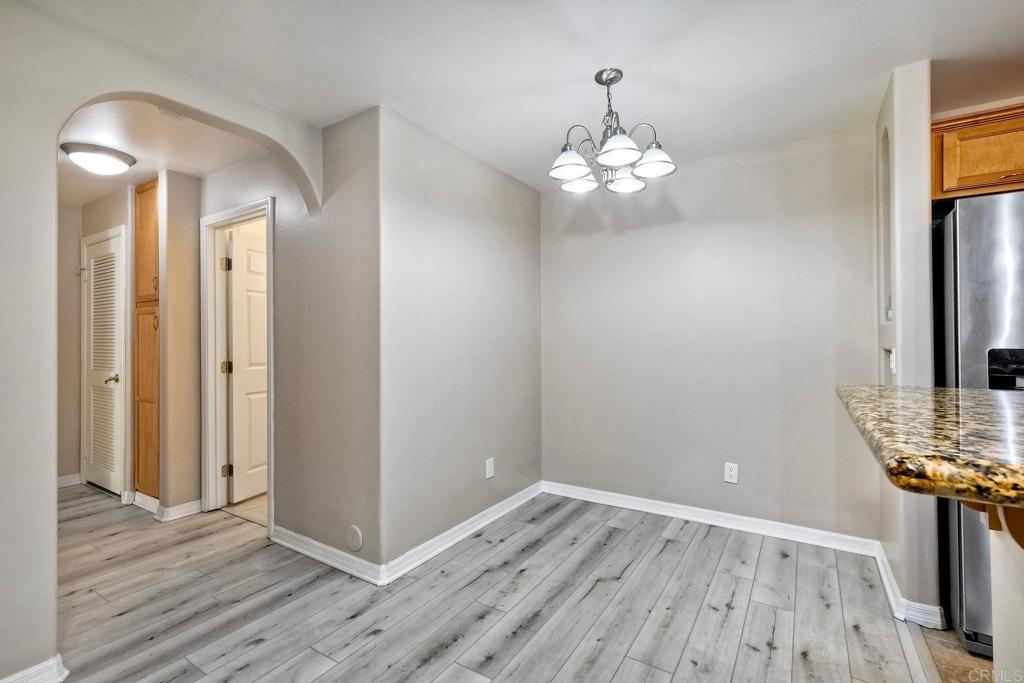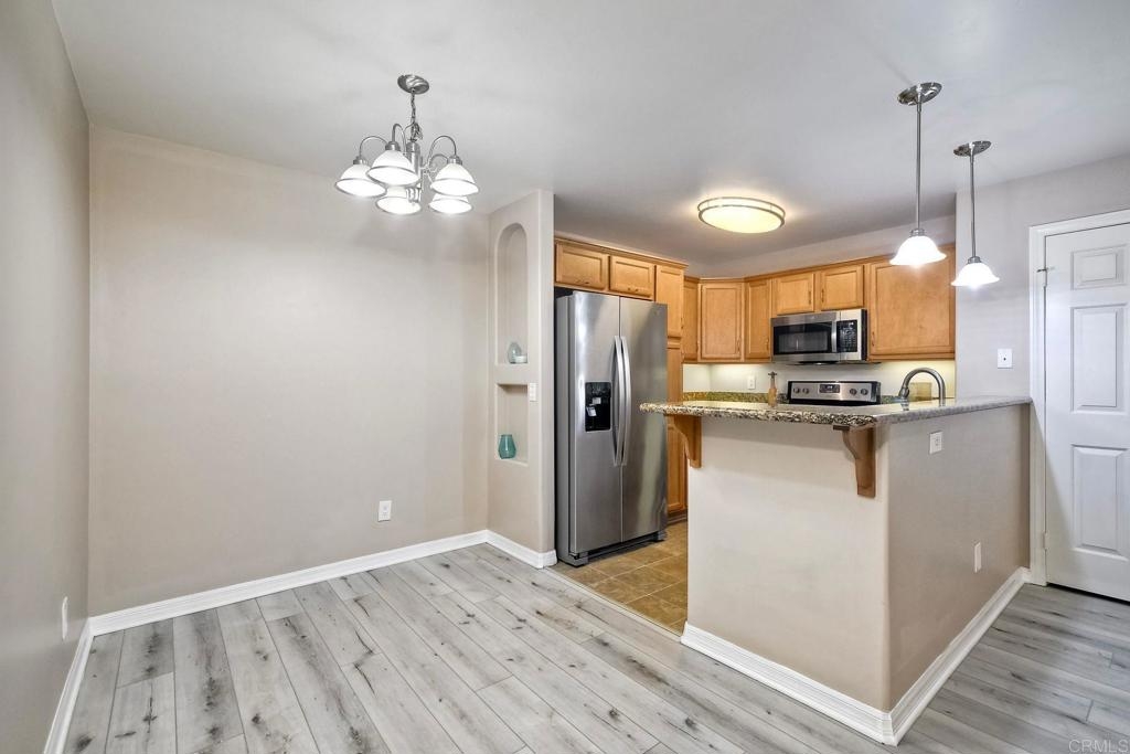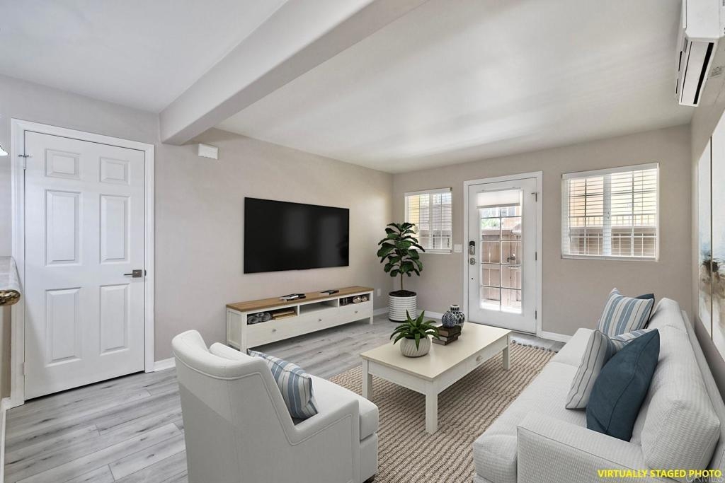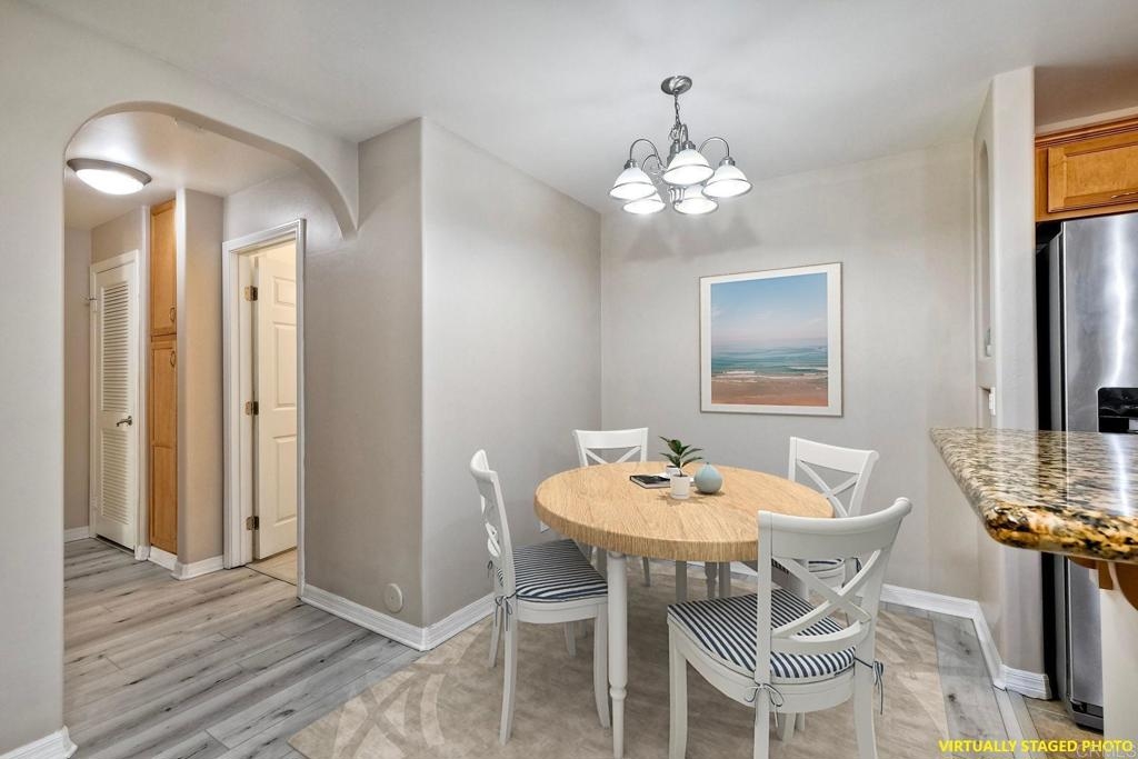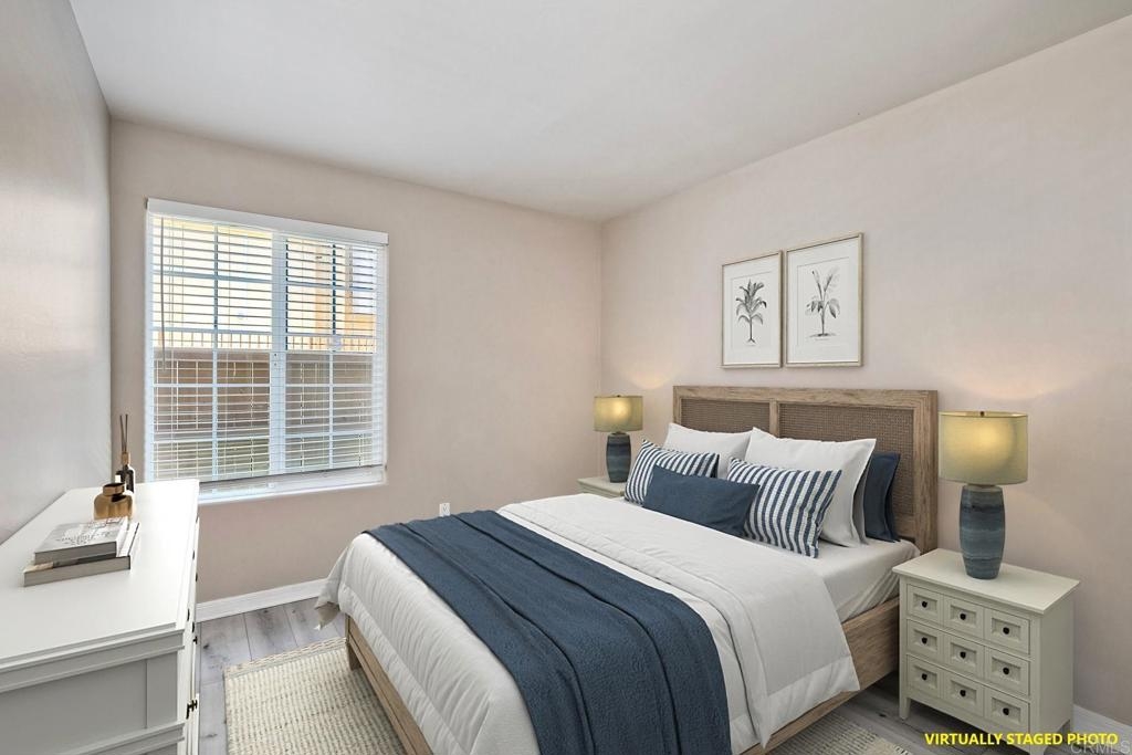 Welcome to 5252 Balboa Arms Dr, Unit 169 – a charming 2-bedroom, 2-bathroom condo that combines comfort in one of San Diego’s convenient communities. Spanning 782 square feet, this thoughtfully designed home features modern laminate flooring throughout providing a contemporary yet cozy ambiance. This condo also offers practical amenities such as split-wall units in the living area, and primary bedroom for heating and cooling, and in-unit washer/dryer for added convenience. The kitchen is a standout feature, boasting granite countertops, an electric stove, dishwasher, microwave, and refrigerator, making meal preparation a delightful experience. The open layout seamlessly connects the kitchen to the living space, perfect for entertaining or enjoying a quiet evening at home. Step outside to discover the inviting private courtyard and outdoor space, where you can unwind in a serene setting. The complex provides additional amenities including a gym, 3 pools, BBQ area, and security gates for peace of mind. For pet lovers, a dedicated doggie relief-station is on site.. Whether you are looking to take advantage of the community's vibrant lifestyle or seeking a tranquil retreat, this condo at 5252 Balboa Arms Dr, Unit 169 is an excellent choice. Don't miss the opportunity to make it your new home. Some photos have been virtually staged.