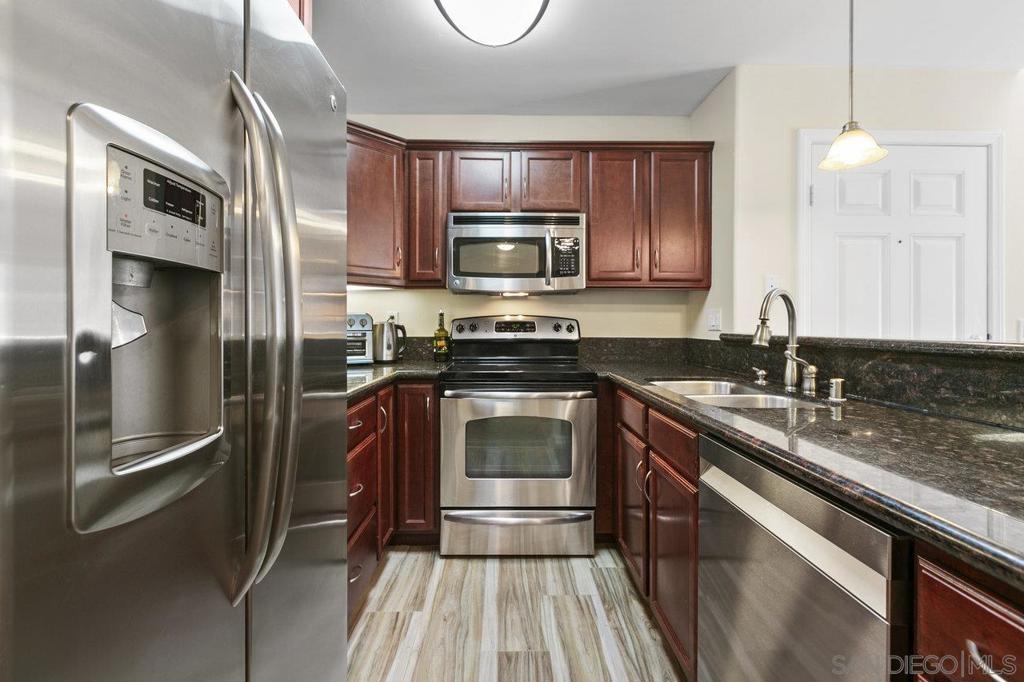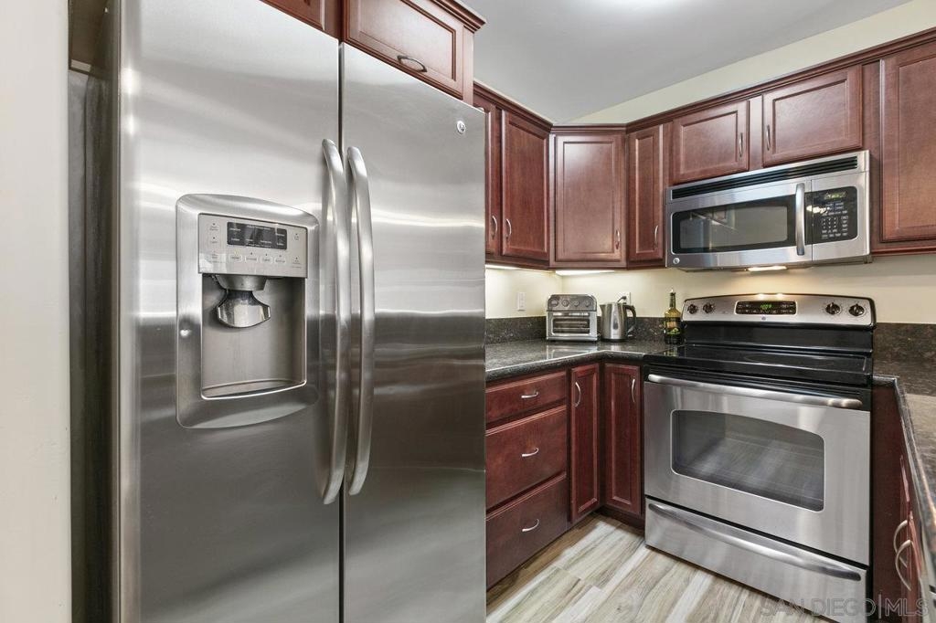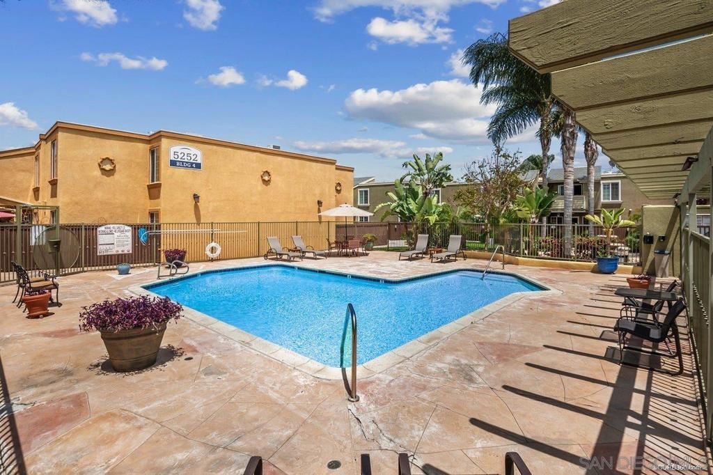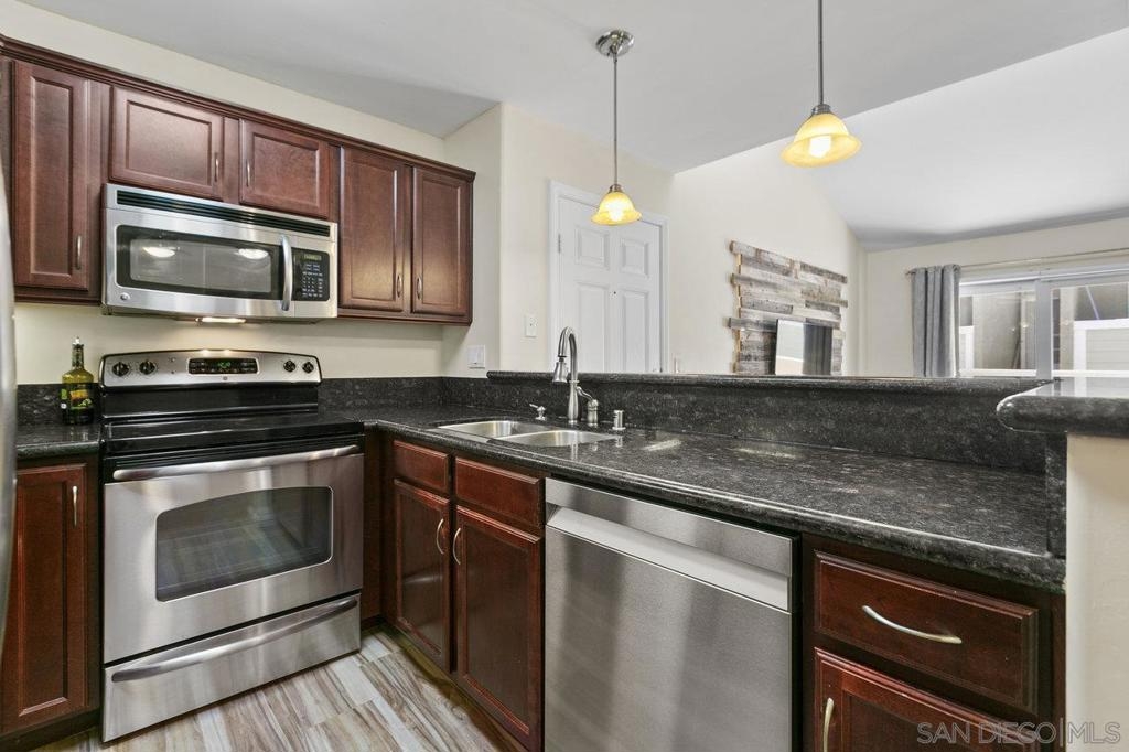 Top floor Clairemont condo in Gated Community with all the amenities. Parking, A/C, In-Unit Laundry, Walk-In Bedroom Closet, Balcony, Storage, 3 Pools, Spa, Sauna, Gym, Clubhouse, Centrally Located, Walk to Restaurants/Shopping. Livingroom accented with backlit distressed wood installation and a Vaulted Ceiling topped with Dual-paned Windows. Kitchen shows cherry Wood Cabinets capped with black Marble Counters, and Stainless Appliances that are paired with other brushed nickel finishing. Bathroom and Linen Closet reflect the same modernized look. Top floor Clairemont condo in Gated Community with all the amenities. Parking, A/C, In-Unit Laundry, Walk-In Bedroom Closet, Balcony, Storage, 3 Pools, Spa, Sauna, Gym, Clubhouse, Centrally Located, Walk to Restaurants/Shopping. Livingroom accented with backlit distressed wood installation and a Vaulted Ceiling topped with Dual-paned Windows. Kitchen shows cherry Wood Cabinets capped with black Marble Counters, and Stainless Appliances that are paired with other brushed nickel finishing. Bathroom and Linen Closet reflect the same modernized look.