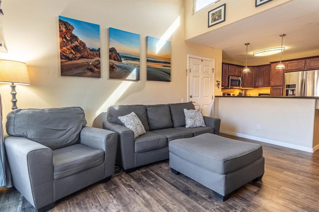 Discover the charm of Unit 449 at Balboa Ridge - a truly unique home. Step inside, and you'll be greeted by vinyl plank flooring, high ceilings, and plenty of natural light that comes through the sliding door and windows. The kitchen features granite countertops and stainless steel appliances and opens out to a spacious dining area. Plenty of storage with 1 unit off the balcony, as well as 2 extra units just steps away and near your assigned off street parking space. To top it off this unit has 2 full bathrooms and in-unit laundry making it the perfect 2 bedroom home. Located in a gated community, residents enjoy exceptional amenities, including three pools, a sauna, barbecues, a gym, and beautifully landscaped grounds—all with a low HOA. Situated in central Clairemont, this home offers easy access to San Diego’s best beaches, attractions, and lifestyle conveniences. All measurements are approximate. Buyer's and Buyer's Broker/Agent should verify measurements and complete thorough inspections and investigations prior to Close of Escrow to satisfy themselves with the current condition of the property. Buyer(s) to verify and approve all data, reports, records, inspections, permits, MLS, HOA, if applicable and all information pertaining to the property prior to removal of contingencies. All contracts/offers are subject to seller approval and any offers or counteroffers by seller are not binding unless the entire agreement is ratified by all parties.