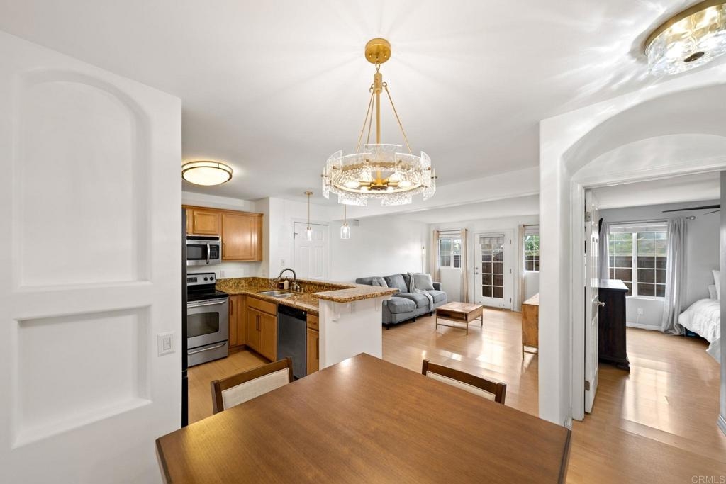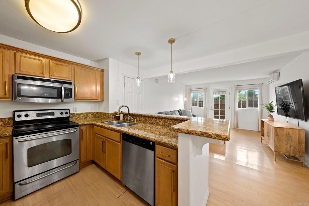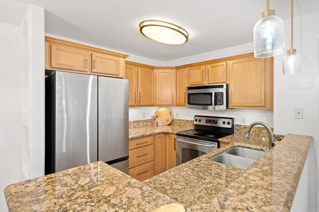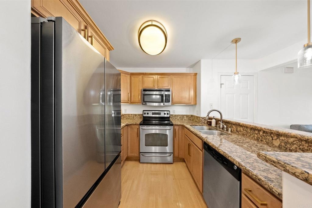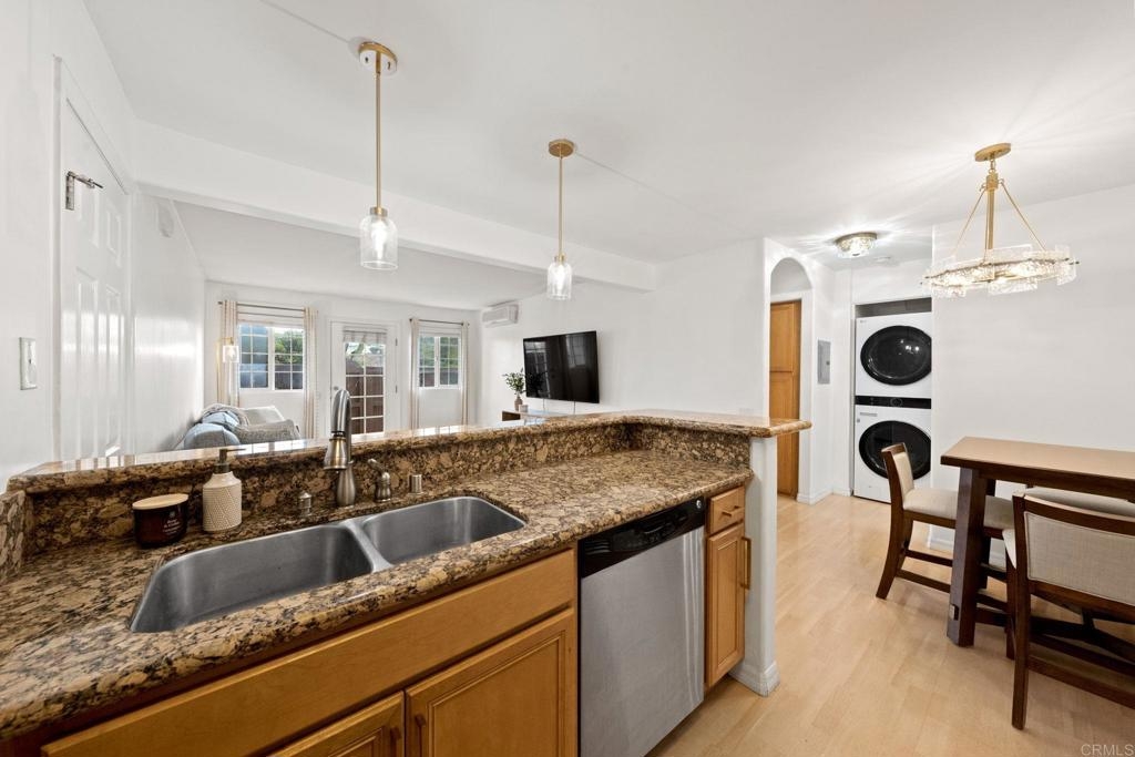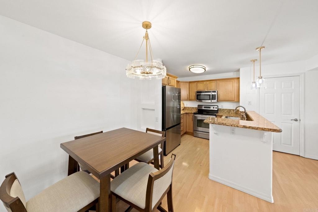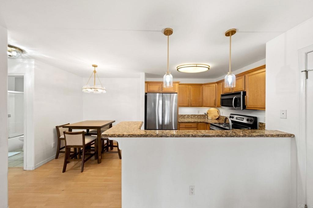 Welcome to 5404 Balboa Arms Drive, Unit 372, a stylish 1-bedroom, 1-bathroom condo in the highly sought-after Balboa Ridge community in Clairemont, San Diego. This modern, move-in-ready home offers 582 square feet of comfortable living space, perfect for first-time buyers or investors. One of the standout features of this unit is the in-unit washer and dryer, providing ultimate convenience—no more trips to the laundromat! Additionally, this home includes a designated parking spot, ensuring secure and hassle-free parking in this desirable area. The open floor plan boasts contemporary finishes, including granite countertops, stainless steel appliances, and honey-tone cabinetry in the kitchen. The spacious living area extends to a private enclosed patio, ideal for relaxing or entertaining. Residents of Balboa Ridge enjoy resort-style amenities, including a pool, spa, fitness center, and sauna within a secure gated community. The location is unbeatable—just minutes from Genesee Plaza Shopping Center, restaurants, and easy freeway access. Don’t miss this opportunity to own a well-appointed condo with in-unit laundry, parking, and top-tier amenities in one of San Diego’s most convenient neighborhoods!
