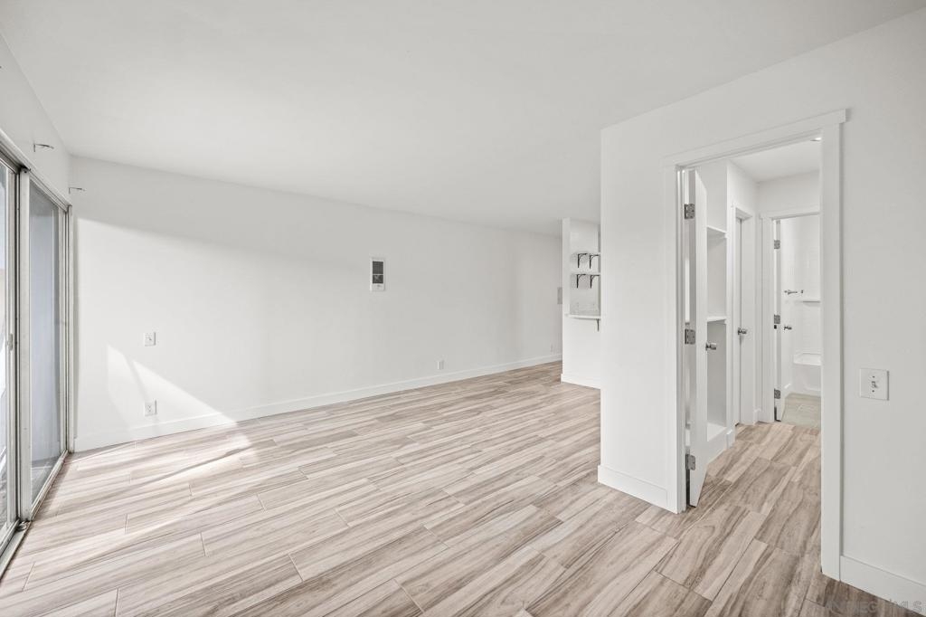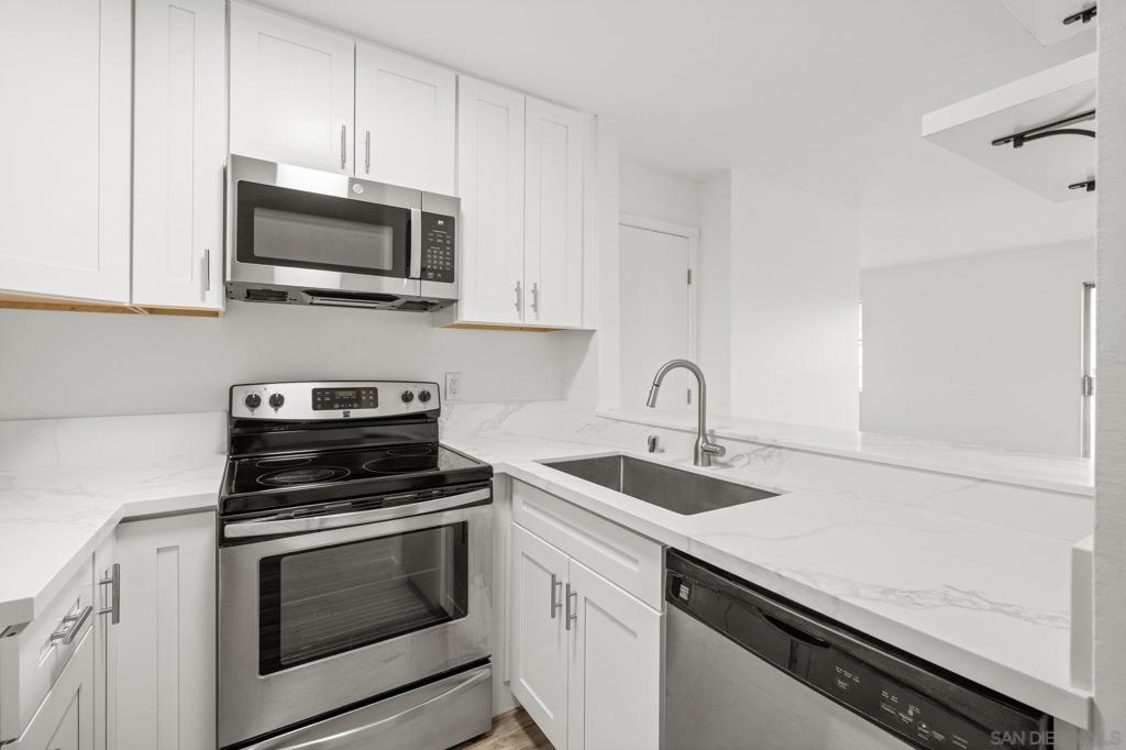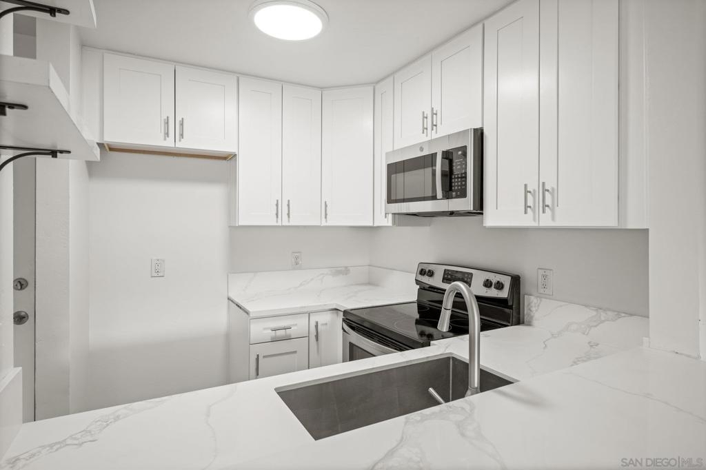 Excellent opportunity to own a first floor end unit studio that was recently remodeled with contemporary flooring, newly painted, GE appliances, a breakfast bar and craftsman style cabinets. There is a surprisingly large walk in closet, a well laid out bathroom with shower over tub, and sliding glass doors leading onto a balcony overlooking a green area. Community features include a pool and spa and a common laundry. Boasting a truly flexible floor plan, this condo is ideal for a homeowner or investor. Enjoy living close to the ocean and take advantage of the shops and dining in Clairemont, Pacific Beach and La Jolla.