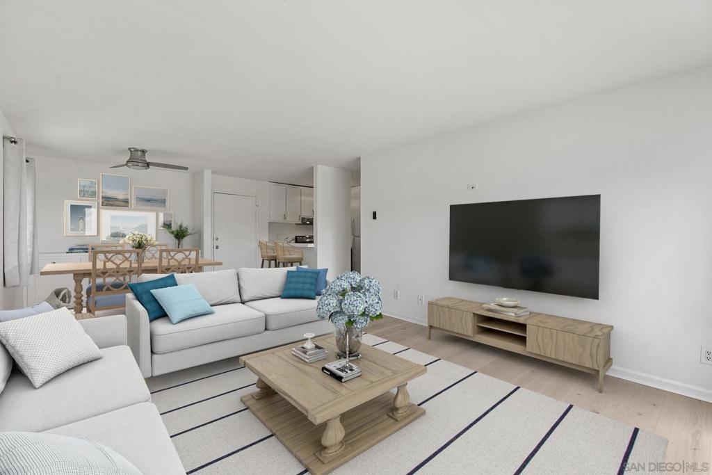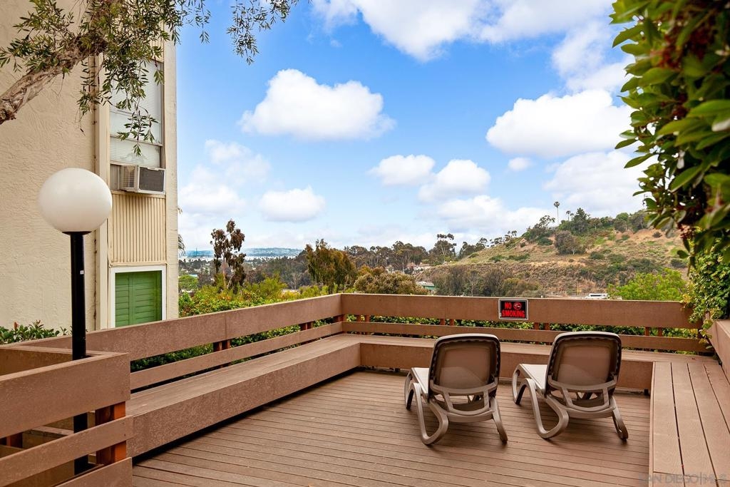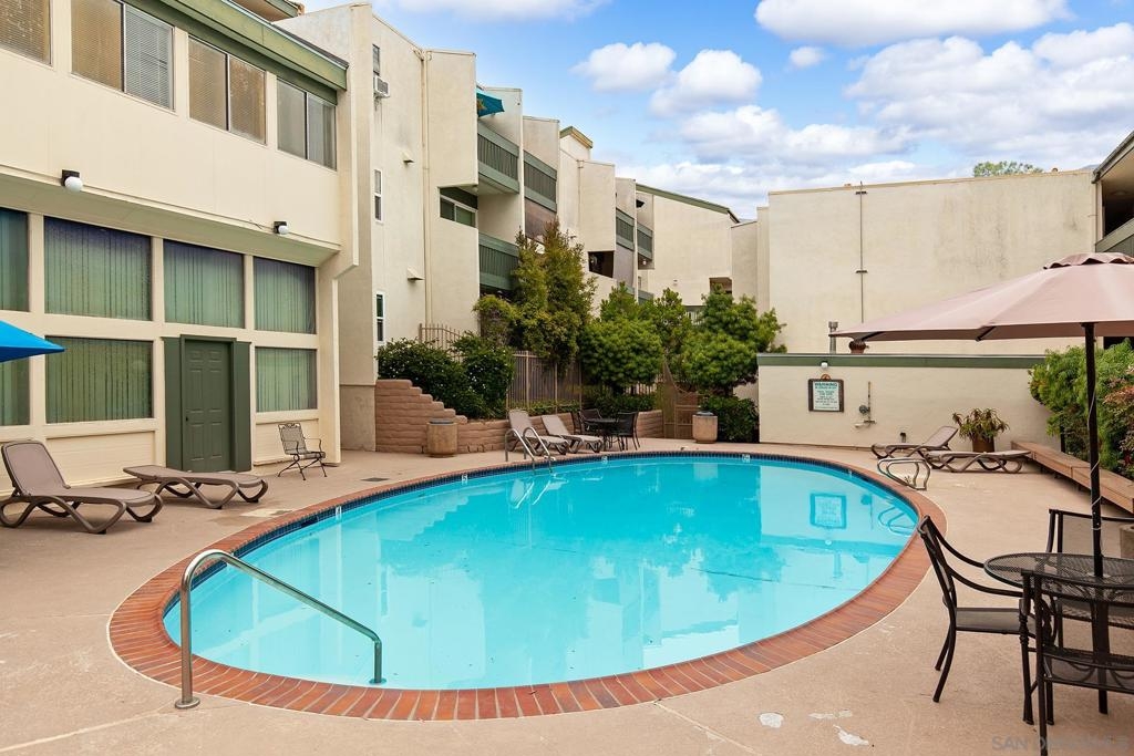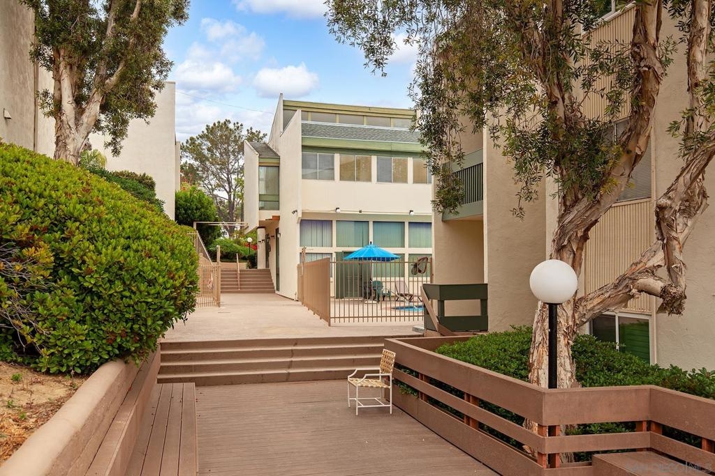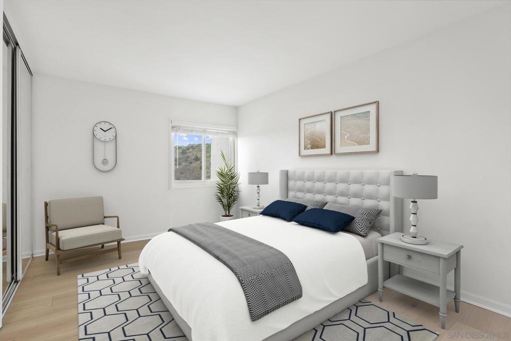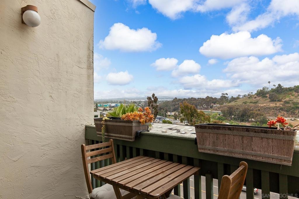 Welcome to this beautifully updated 1-bedroom, 1-bathroom condo in the highly desirable Bay Ho neighborhood. This top-floor, corner unit offers 663 sq. ft. of modern living space with a touch of elegance. The interior features new laminate wood floors, new windows and slider, and modern fixtures throughout. The private location within the complex provides tranquility, and the condo boasts a Mission Bay peek-a-boo view, overlooking the community pool and hot tub. Enjoy the added privacy of being on the top floor in a corner unit. Community Features: Residents have access to a community pool and hot tub, as well as well-maintained common areas. This condo offers a perfect blend of modern updates and a prime location, making it a must-see. Conveniently located near local shops, dining, entertainment, and major freeways.