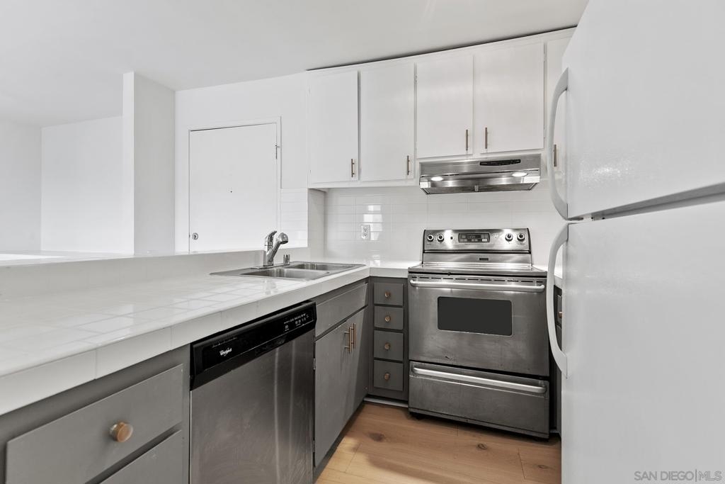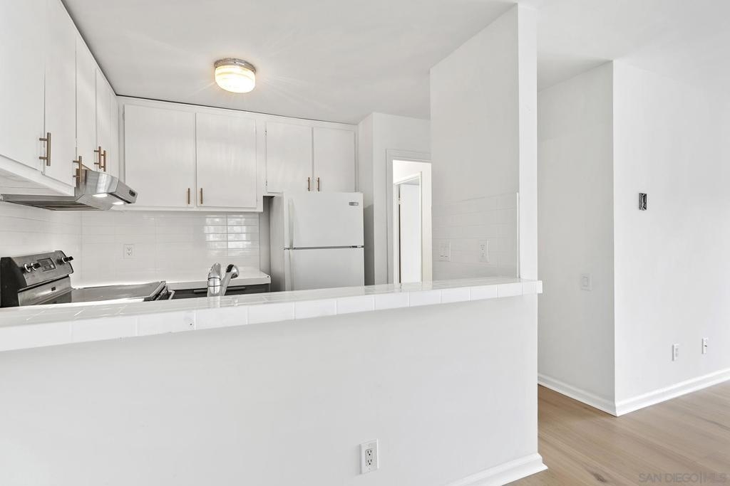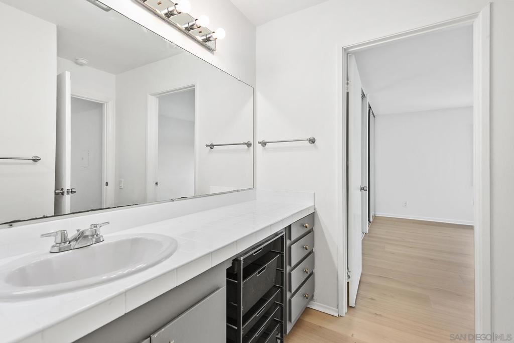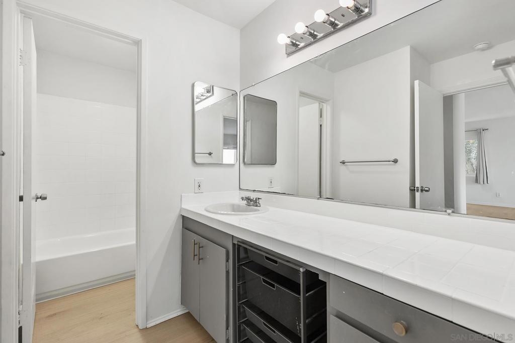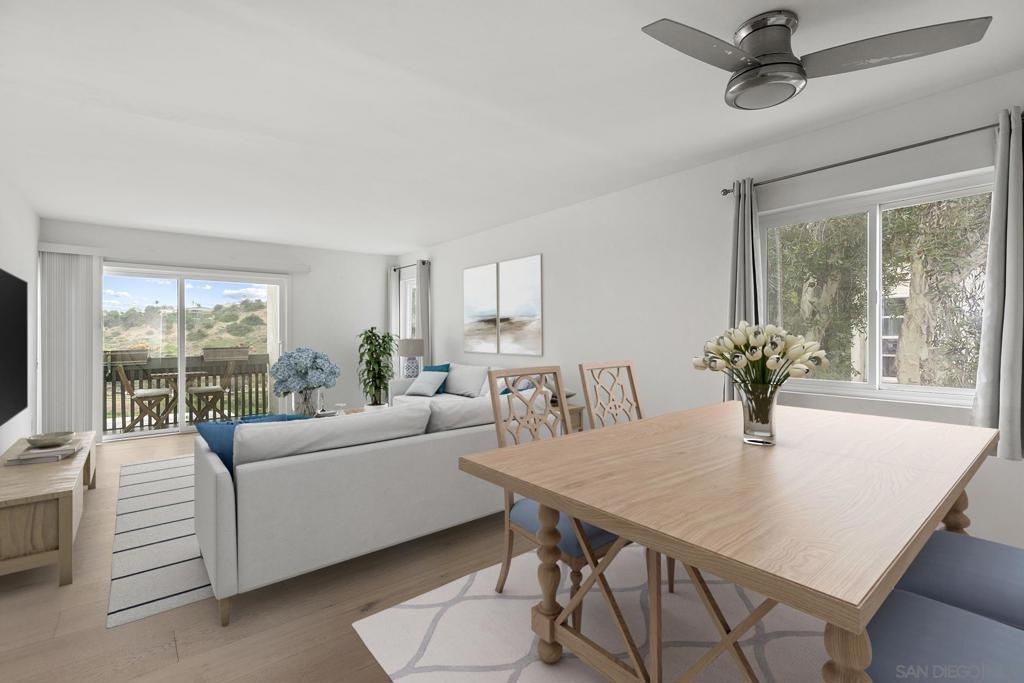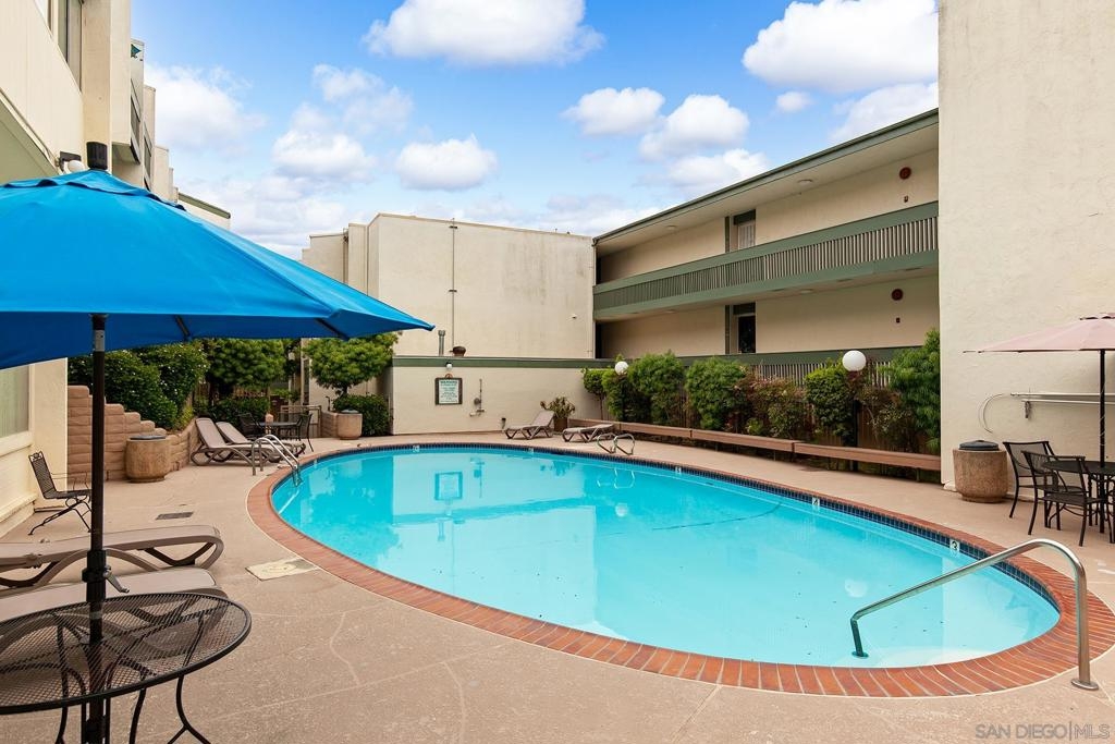 Welcome to this beautifully updated 1-bedroom, 1-bathroom condo in the highly desirable Bay Ho neighborhood. This top-floor, corner unit offers 663 sq. ft. of modern living space with a touch of elegance. The interior features new laminate wood floors, new windows and slider, and modern fixtures throughout. The private location within the complex provides tranquility, and the condo boasts a Mission Bay peek-a-boo view, overlooking the community pool and hot tub. Enjoy the added privacy of being on the top floor in a corner unit. Community Features: Residents have access to a community pool and hot tub, as well as well-maintained common areas. This condo offers a perfect blend of modern updates and a prime location, making it a must-see. Conveniently located near local shops, dining, entertainment, and major freeways.