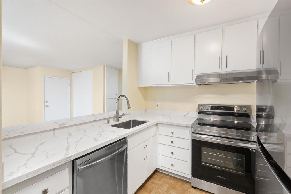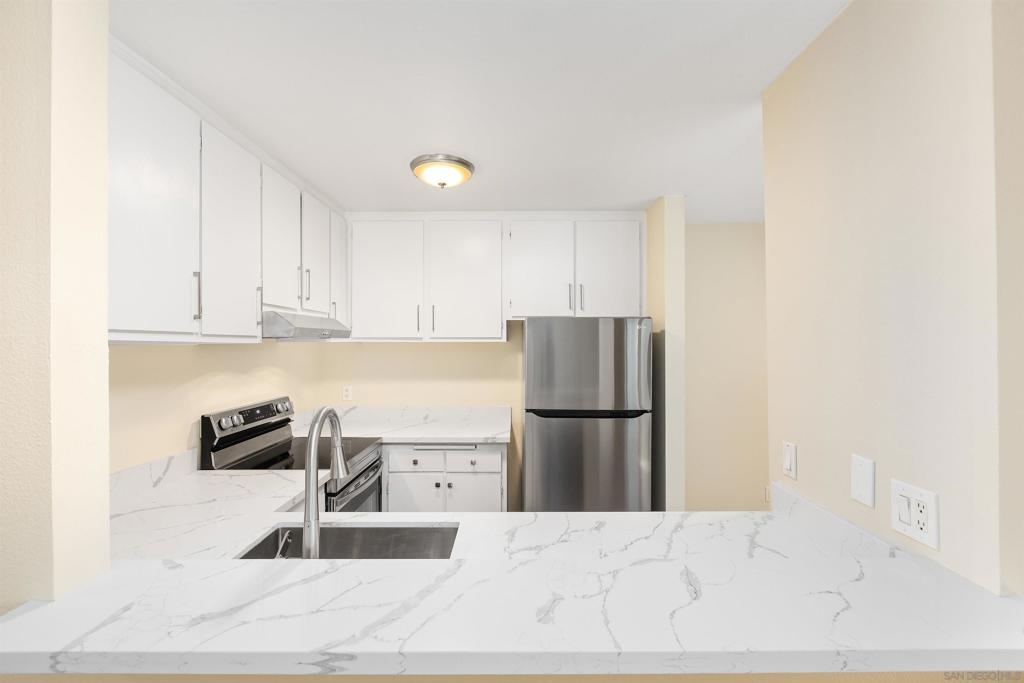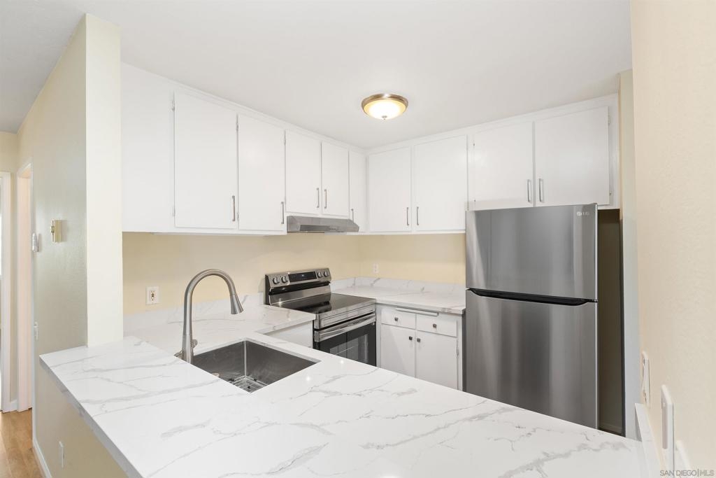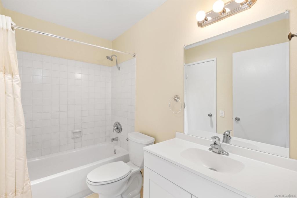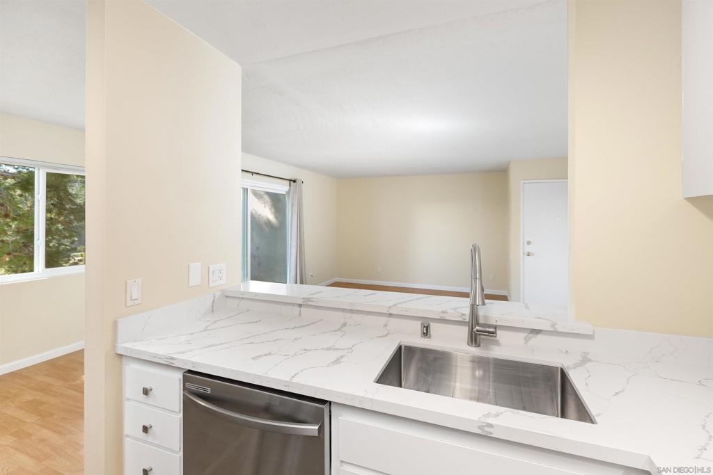 Renovations were just completed at this 2-bedroom condo with Mission Bay views. They include quartz countertops and a breakfast bar in the kitchen, stainless steel appliances, modern bath vanities and ceiling fans, fresh paint, and more. This second-story, top-floor condo, nestled in a coveted spot in the back of the complex, is sure to feel like a private oasis. The staircase to the entrance is only shared with one other unit. The home features hard-surfaced flooring, lots of closet space, and plenty of natural light throughout. From your own private balcony, you’ll enjoy bay views, sunsets, and tall pine trees, as well as amazing Sea World fireworks on summer nights. There is one assigned parking space. The windows and patio door were replaced in 2020. There are 2 generously sized bedrooms; 1 bedroom contains a bath vanity for your convenience. Enjoy resort style living with a pool, huge Jacuzzi, BBQ area, lush landscaping, game room, club house, multiple laundry rooms with newer machines, and a terrace overlooking Mission Bay. The HOA fee includes both hot and cold water, trash, sewer, and common area maintenance. Bay Ho Condominiums offers coastal living at its finest, as well as city convenience. Located just east of the 5 Freeway, it’s less than 1 mile to the Balboa Avenue trolley station. Just minutes from Mission Bay, beautiful beaches, restaurants, shops, and more. Don’t miss out on this gem!