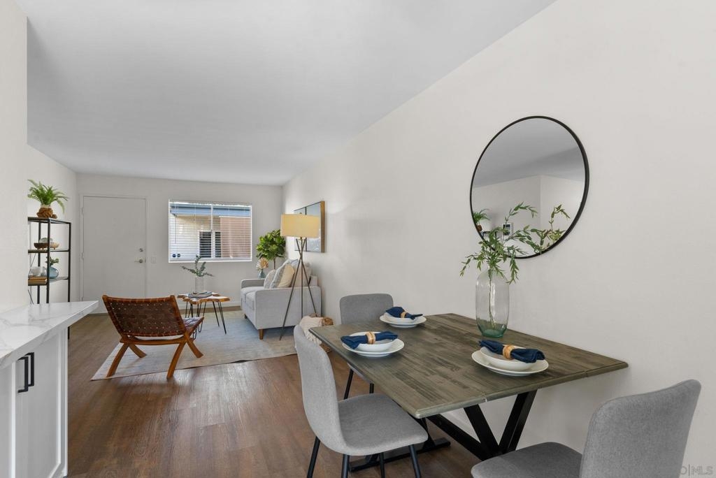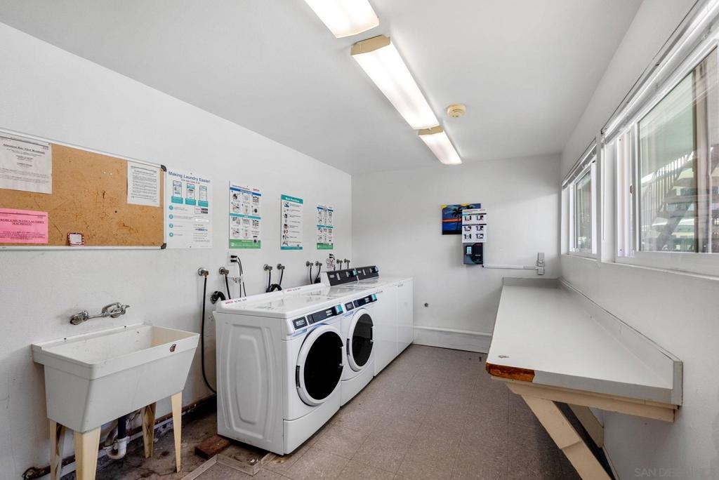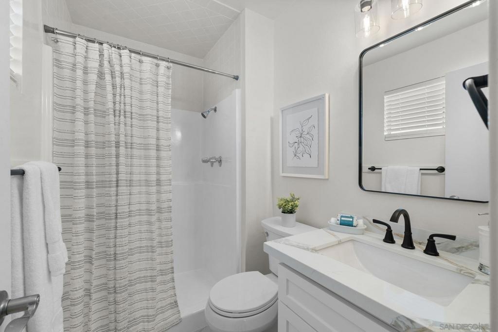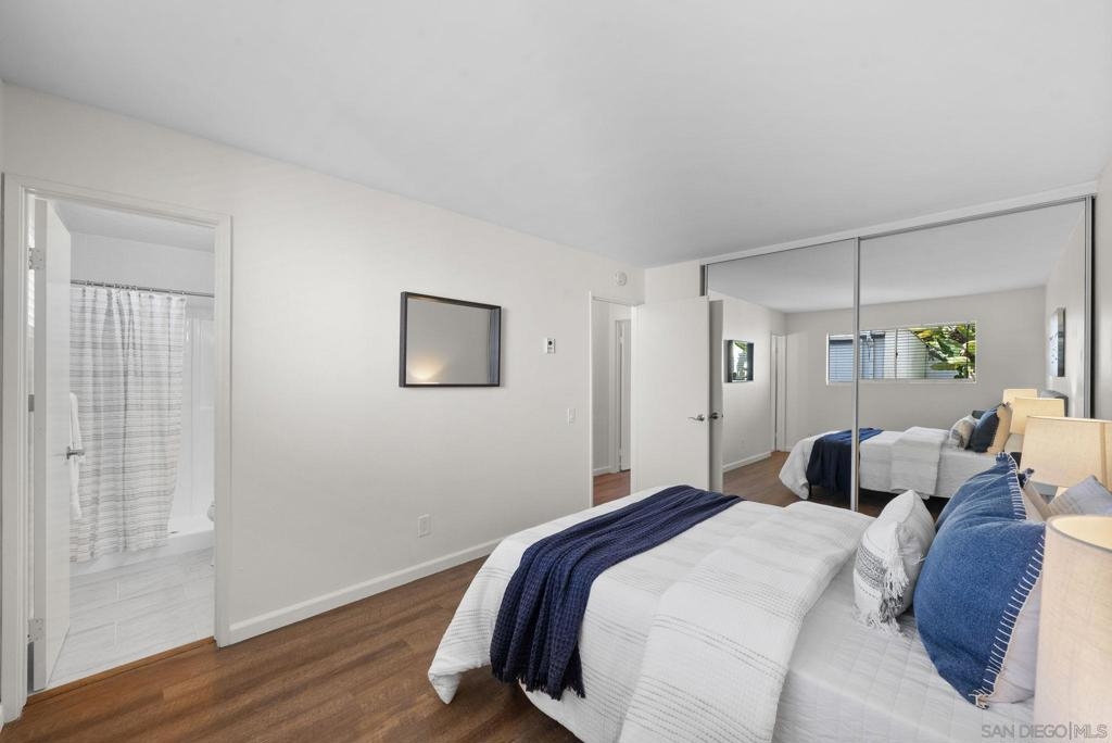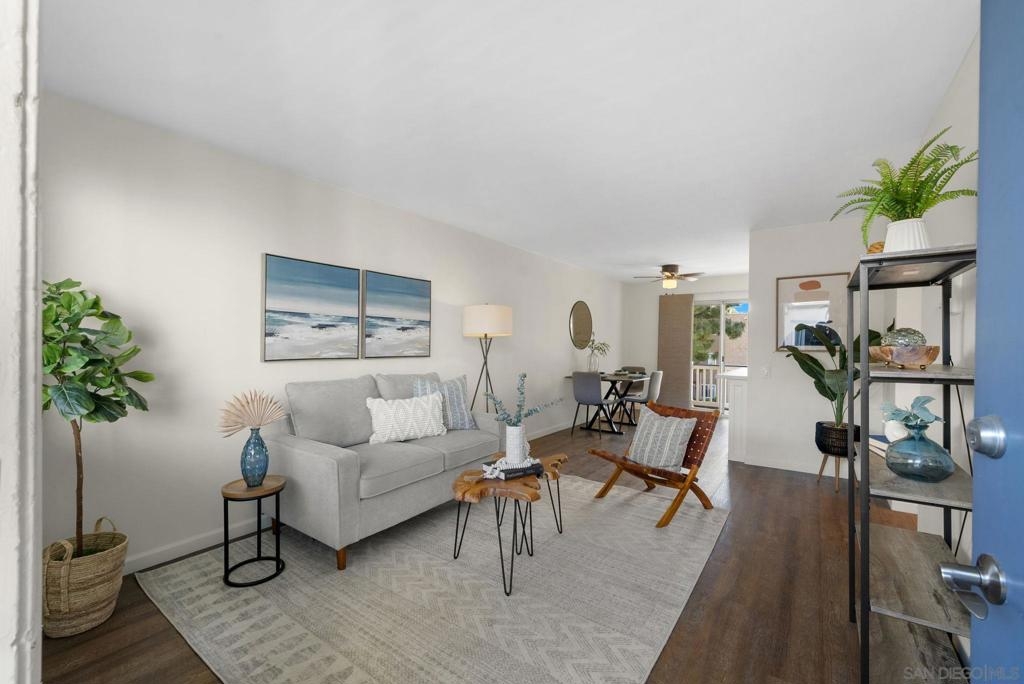 Welcome to this coastal inspired top floor updated 2-bed, 2-bath 790 sqft condo, perfectly situated in the heart of BayHo @ Bay View Terrace. This home offers a comfortable & chic living space with southwestern exposure, allowing for ample natural light throughout the day. Step inside to discover a thoughtfully updated interior, featuring a spacious living area that seamlessly flows into a light filled kitchen. New kitchen cabinets, quartz counters, tile backsplash, & Kraus workstation sink to make cooking a breeze! Both bathrooms have been tastefully updated with new vanities, fixtures, tile floors & refinished shower/tub. The flooring combines the warmth of laminate with the durability of tile, creating a versatile and easy-to-maintain environment. Relax & unwind on your private balcony to soak in a sunset view, or take advantage of the community pool/spa for a refreshing dip on sunny days. Pet friendly complex. Additional amenities include electric heat, common laundry facilities in the building, the convenience of 2 tandem assigned parking & just a few steps to access unit from parking. HOA $395/month inc water & trash. This condo is an ideal choice for those seeking a blend of comfort, style, & convenience in a vibrant San Diego location close to all amenities, beaches, shops, & restaurants that Mission Bay, Pacific Beach, & La Jolla offer. Close to Mission Bay Golf Course, Cadman Park, 3/4 mile to Balboa Trolley stop on blue line for easy commute going either to USD/UCSD or Downtown/Airport & easy access to I-5/52 freeways. Less than 3 miles to the Pacific Ocean! VA Approved Complex