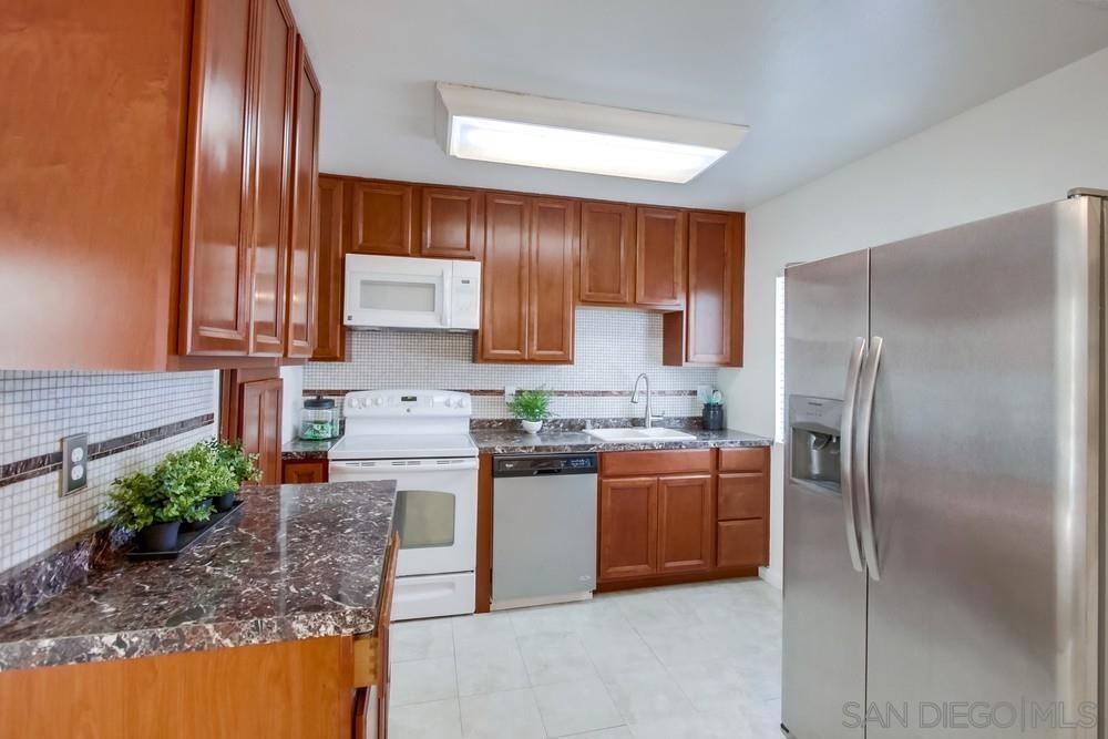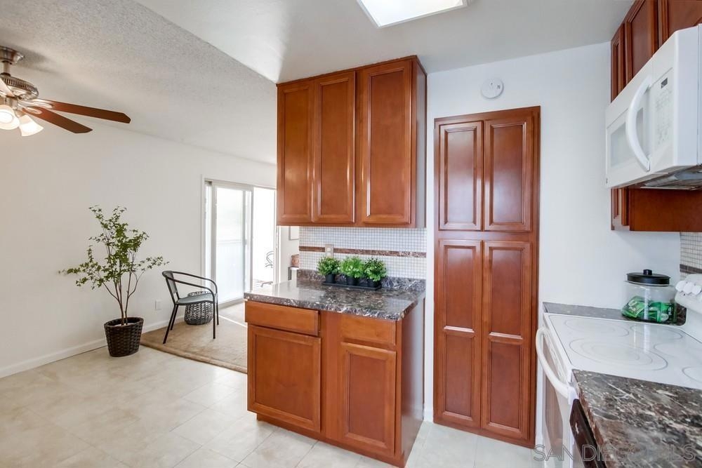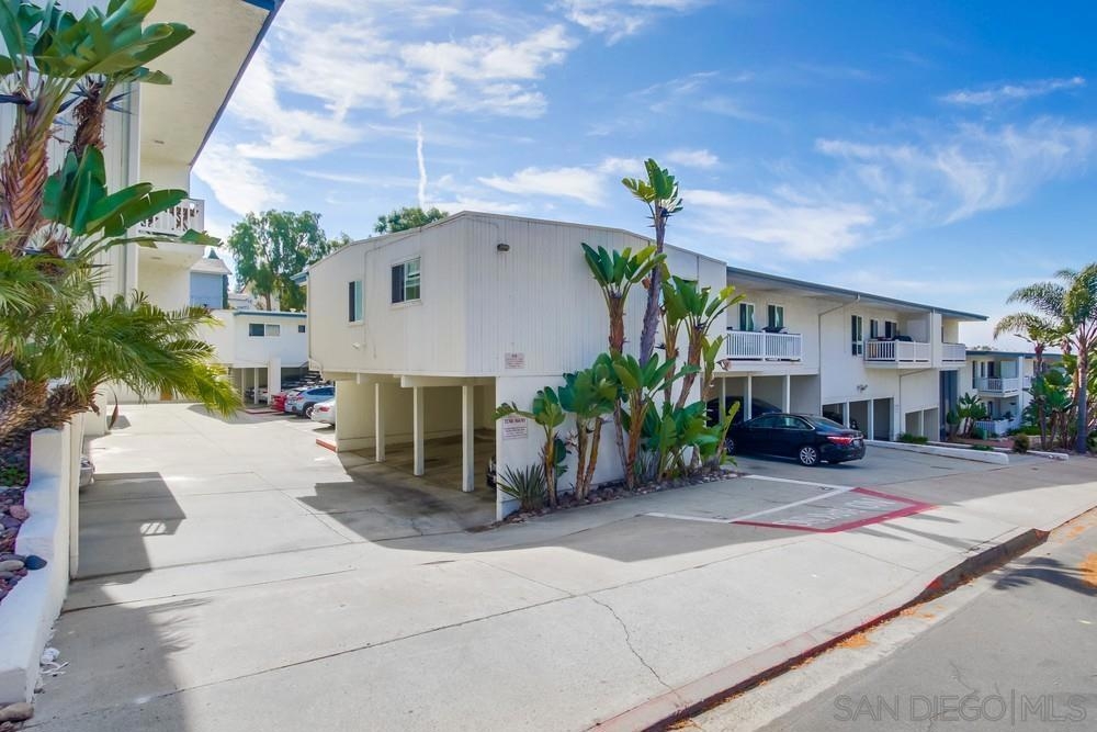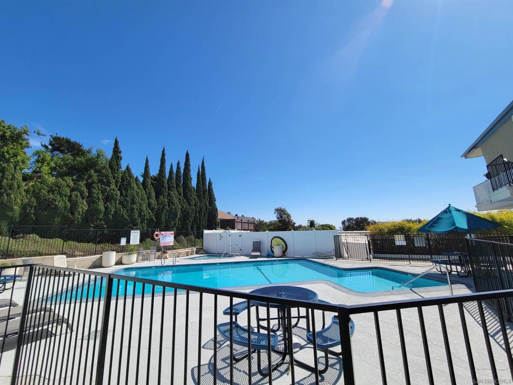 Quiet upper level condo with no one above or below! This end unit 2 bd 2 ba floorplan is rarely available. Features: large private balcony with custom shades, upgraded living room sliding doors, dual pane windows, updated kitchen with granite counters, updated baths. Centrally located minutes to beaches, Mission Bay, shopping, restaurants, and freeways. Parking spot is ideally located right next to unit. Low HOA fee includes the water and hot water. Solar heated hot tub is perfect for relaxing after a few laps in the pool! Complex Features: ,, Sewer: Public Sewer Topography: RSLP