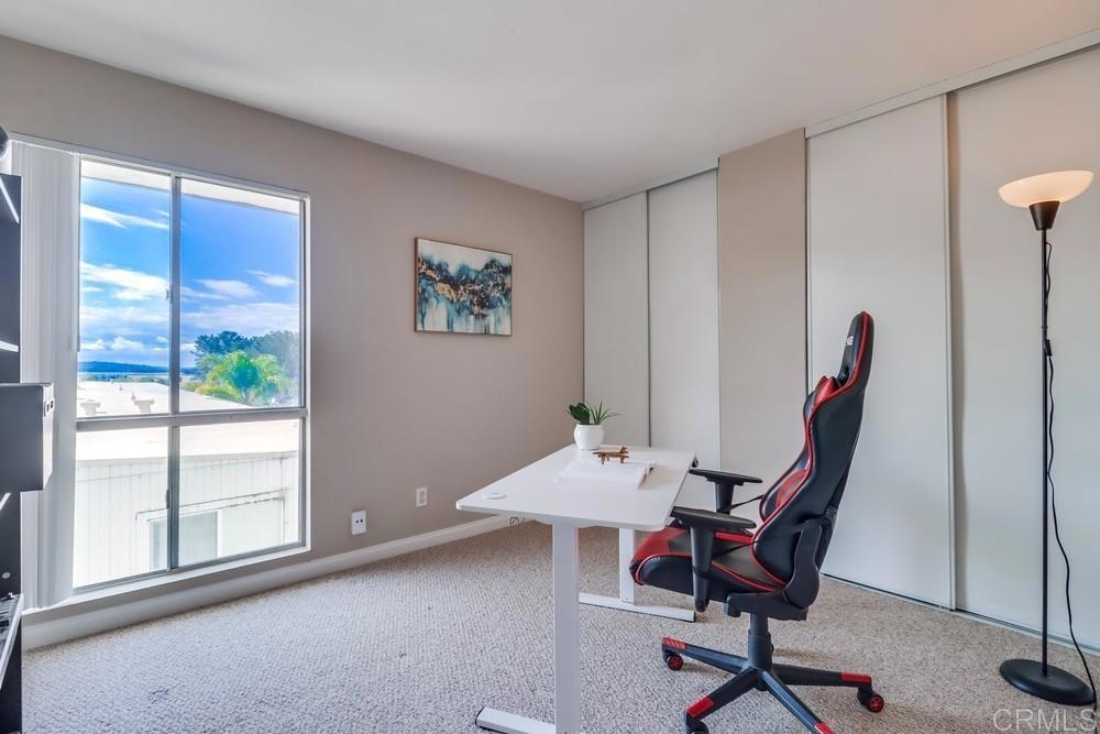 VIEWS!! Rare opportunity to own this second story end unit with NO shared walls, nestled in the highly sought-after Bay Park community. This is far and away the BEST unit in the complex! Breathtaking panoramic views of Mission Bay, Pacific Beach city lights and SeaWorld. Watch the SeaWorld fireworks at night from your living room, kitchen, or bedroom. Features include private patio, open concept living area, new flooring and paint. Low HOA fee, which includes water! Great central location, just minutes to the beach, shopping, dining and easy freeway access.