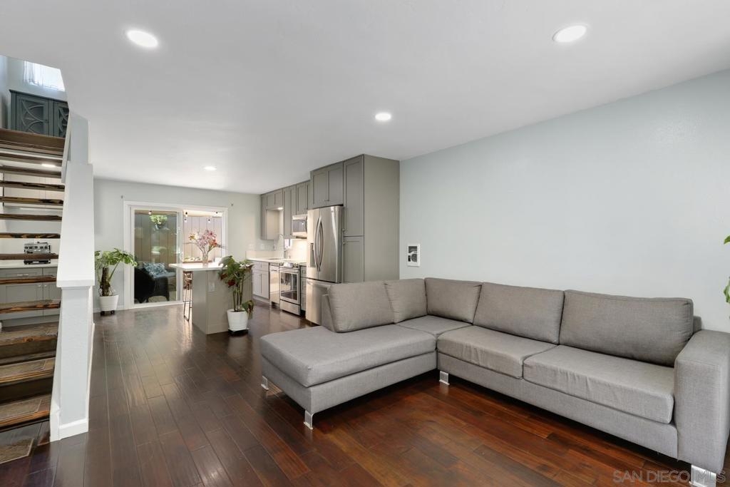 Located in the desirable Canyon Rim community in Bay Ho, this charming townhome offers a spacious open floor plan with recessed lighting and abundant outdoor living spaces. Enjoy modern touches such as engineered hardwood flooring, quartz countertops, sleek cabinetry, a large island, and stainless steel appliances. The generously sized primary suite boasts vaulted ceilings, dual closets, and a private balcony. A secluded patio provides the perfect space for relaxation or entertaining, while the attached garage adds convenience. Several units in this complex have successfully converted this floor plan into a 2-bed, 1-bath, offering additional versatility and value. Community amenities include a pool, spa, BBQ area, and tennis courts. Just a quick 5-minute drive to Pacific Beach and Mission Bay, this home offers the perfect blend of comfort, style, and an unbeatable location! FHA and VA approved complex!