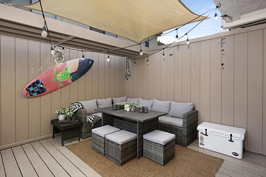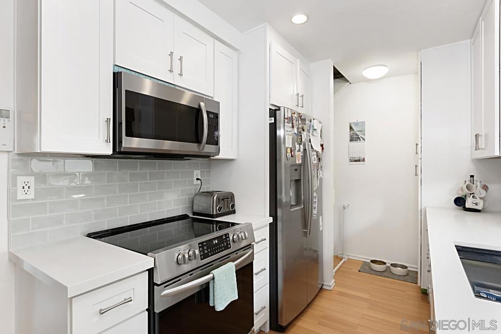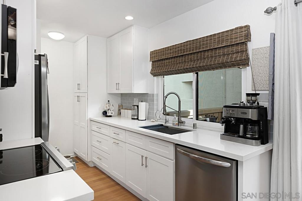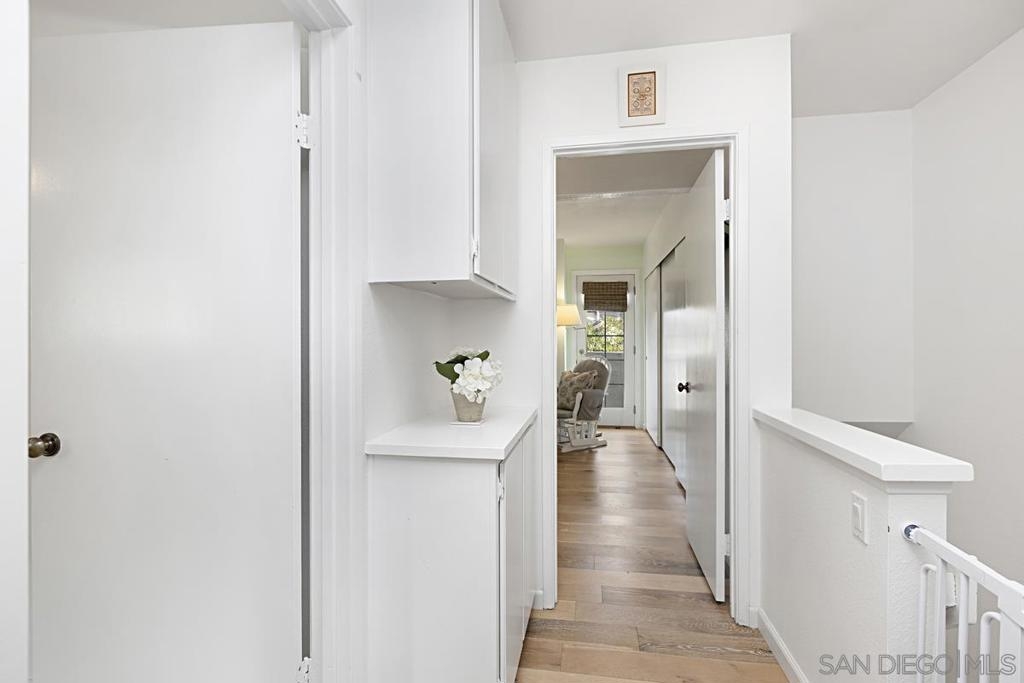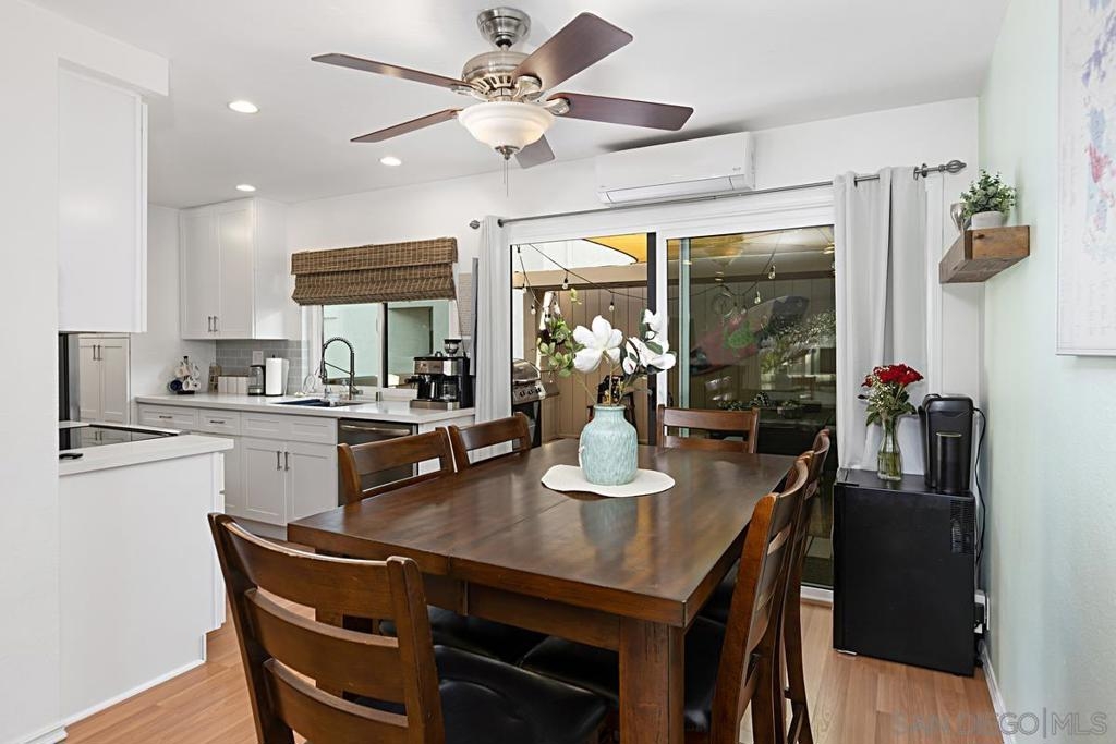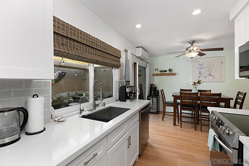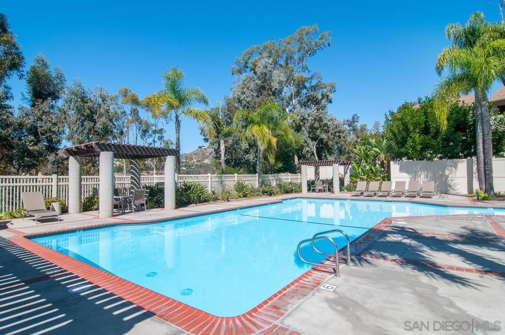 Fantastic opportunity to own in the desirable North Clairemont and Canyon Rim area—an inviting complex tucked away in a quiet location just 10 minutes from the beach. It's conveniently close to the I-5 and 52 freeways and a short drive to downtown, La Jolla, and UCSD. This beautiful townhome features a front patio area, a private deck, fireplace and an attached two-car garage with laundry hook ups and tool bench. Recent upgrades include a remodeled kitchen (June 2022) w/7-stage water filtration system, engineered hardwood flooring on the upper level, mini-split systems for heating and air conditioning (still under warranty), and updated master closet storage (2023). The refrigerator, washer, and dryer are included. The well-maintained complex boasts a community pool and spa, tennis and pickleball courts, BBQ areas, and a clubhouse for your enjoyment.