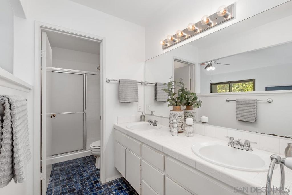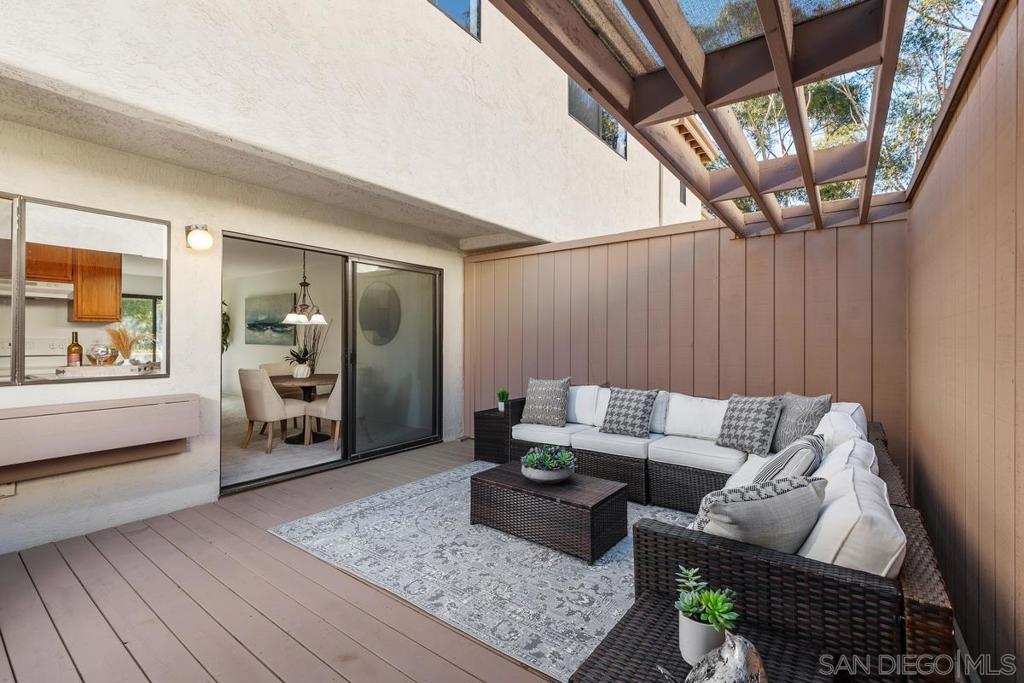 FHA and VA approved complex!!! Beautiful property nestled in a prime area of the quiet and pristine Canyon Rim complex in Clairemont, Bay Ho community. Inviting private and spacious deck off main living area and kitchen, great for entertaining! Main bedroom features vaulted ceilings, en suite bath with dual-sink vanity and unique dual balconies overlooking the well-maintained open and parklike community landscape, perfect for starting your mornings. Large 2-car attached garage with storage area and direct entry to unit. Just minutes from Pacific Beach, USD, UCSD, downtown, Clairemont Square, Costco, freeways, and more!