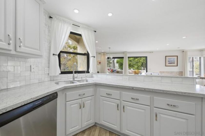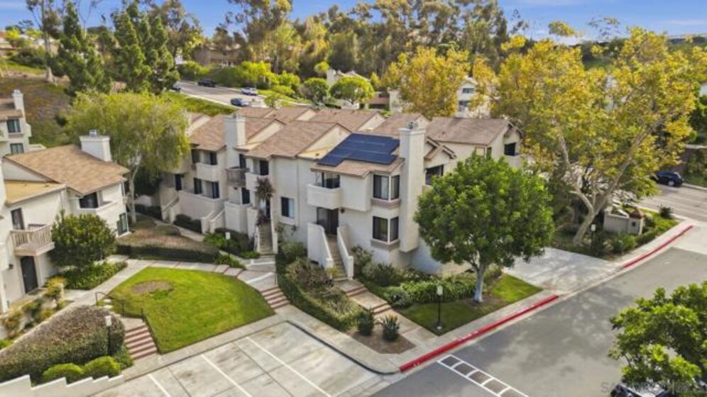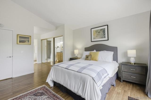 Rarely on the market Canyon Rim’s largest floor plan END UNIT featuring 2 beds 2.5 baths and 3 decks. Highly desirable Canyon Rim community is located just 4 miles to the beach! SOLAR. Entire interior painted 2023. California indoor outdoor living at its best with attached deck off the kitchen and dining area, oversized spacious 2 car garage with full-sized washer/dryer and ample storage space. Dual pane windows and doors throughout. Spacious primary bedroom with newly added AC/heating system, dual sink vanity, walk in shower and attached deck overlooking Canyon Rim’s lush and mature landscape. 2nd en-suite bedroom with attached deck and upgraded bath. Additional seller upgrades include kitchen remodel including granite countertops, tiled backsplash, appliances, refaced kitchen cabinetry, whole house water filtration and reverse osmosis system, blinds and drapes throughout. Laminate flooring and recessed lighting throughout. Only ONE adjacent neighbor and no neighbors above or below. This peaceful and beautifully landscaped community offers 2 pickleball courts, 2 tennis courts, solar heated sparkling pool and spa, clubhouse and BBQ. Easy access to freeways, the beach, nearby shopping and restaurants set back in beautiful Rose Canyon. HOA installed BRAND NEW ROOF 2024. Termite Fumigation to entire community 2024 and painted all exterior. Welcome Home!