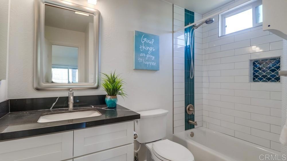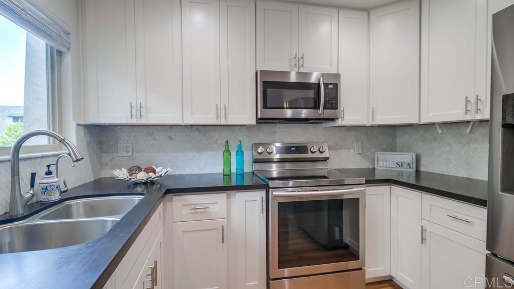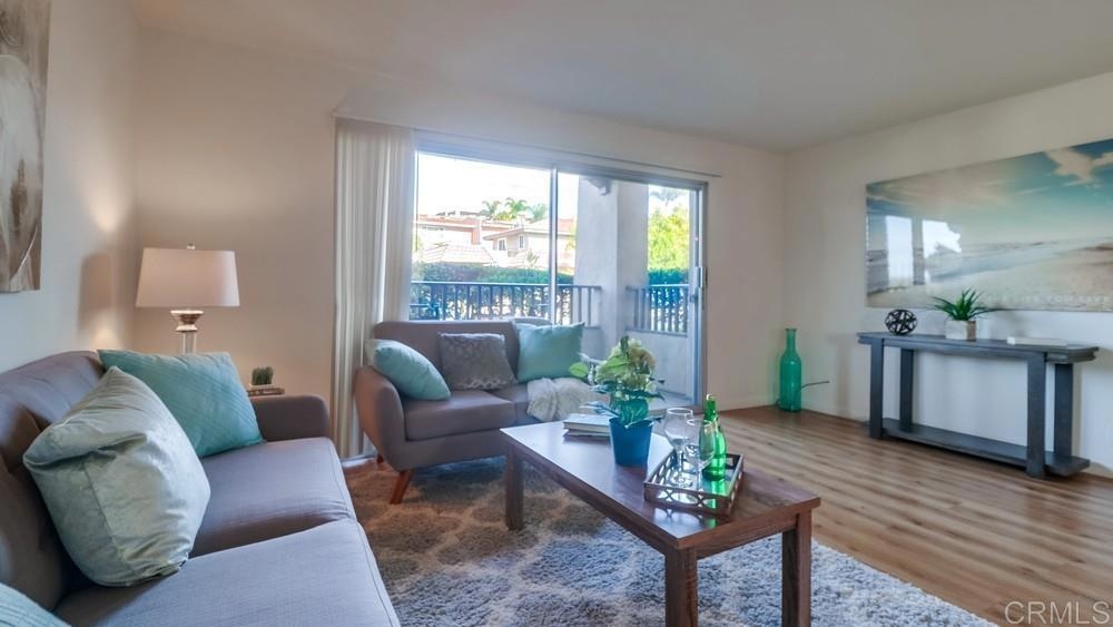 Beautifully remodeled in 2019, this end unit is turn-key. Featuring dual pane windows, smooth troweled ceilings, new cabinets & counters in kitchen/baths, Samsung appliances, vinyl flooring with the look of hardwood, tiled shower/tub, bedrooms & bathrooms are situated on opposite sides of unit for privacy, spacious closets with cedar planks, efficient Stiebel Eltron wall mounted compact heaters in bedrooms & living room, in-unit laundry room with closet shelving, private covered patio off living room for enjoying your favorite food & beverage al fresco, 2 covered assigned parking spaces with 4 large cabinet lockers, gated Costa Viva complex includes 2 pools & spas, elevator and stair access to unit. Walk to Mission Bay, close to beach.