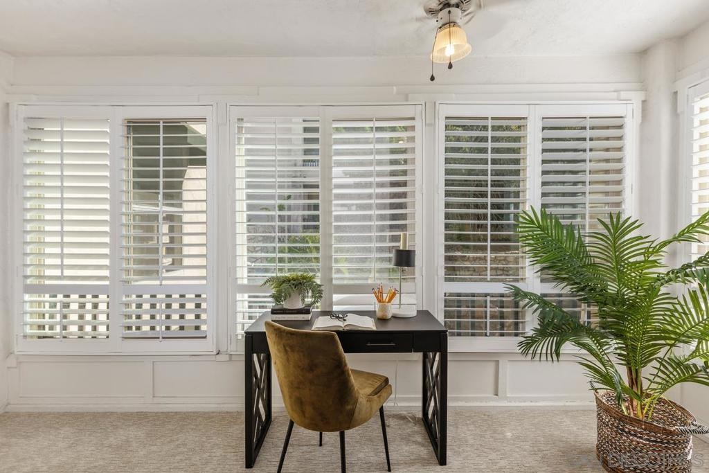 Step into the serene lifestyle you've been searching for! This 2-bedroom, 2-bath condo is located in the highly sought-after, gated community of Costa Viva in Bay Park. Enjoy a short walk to Mission Bay Park and just minutes to some of the best beaches in San Diego! With a spacious, open floor plan, this unit features an enclosed balcony that expands your living space and provides a peaceful setting with views of the community’s tranquil water feature and lush greenery. The condo is beautifully appointed with plantation shutters, stainless steel appliances, and full in-unit laundry room! The large main bedroom includes an ensuite bathroom and a generous walk-in closet. Costa Viva residents enjoy a resort-like experience with two pools and well-maintained grounds. This unit also includes two covered parking spaces and extra storage for convenience. Don’t miss out on the opportunity to call this fantastic property home.