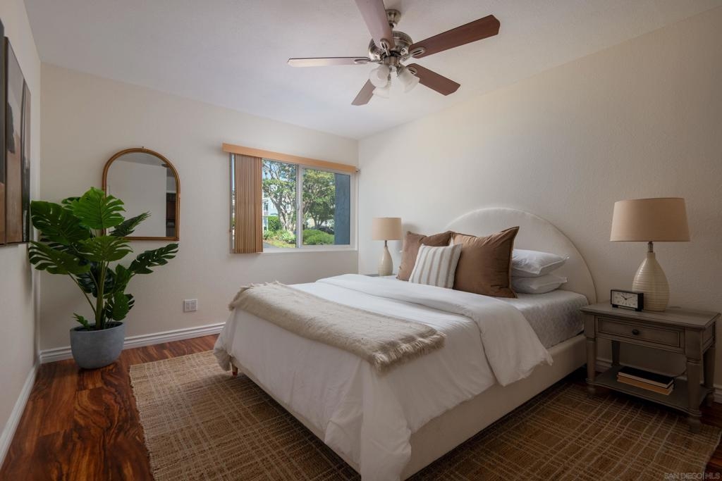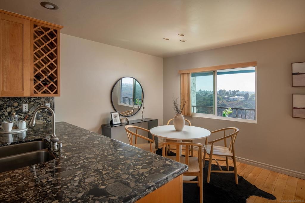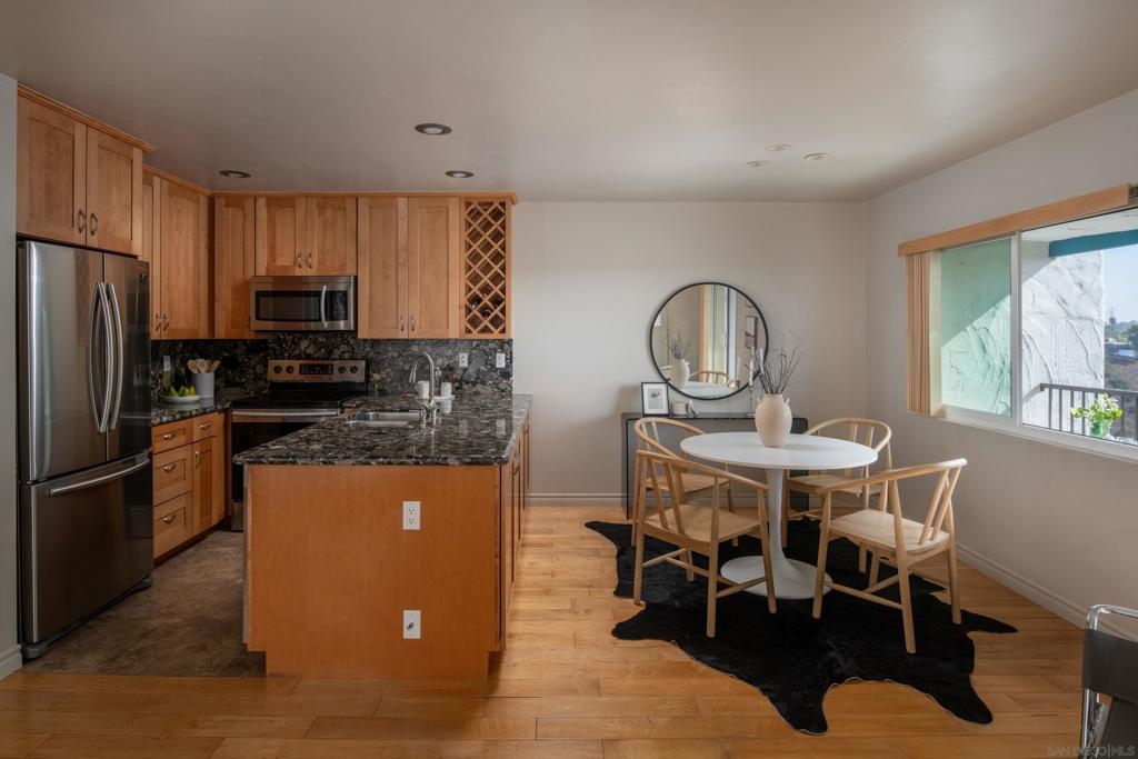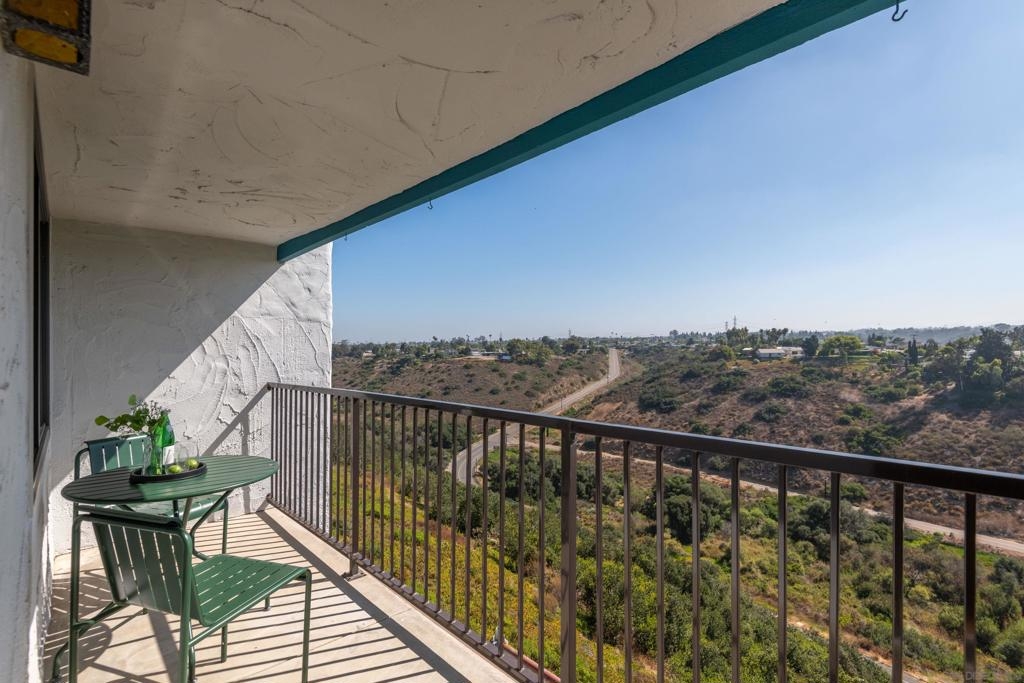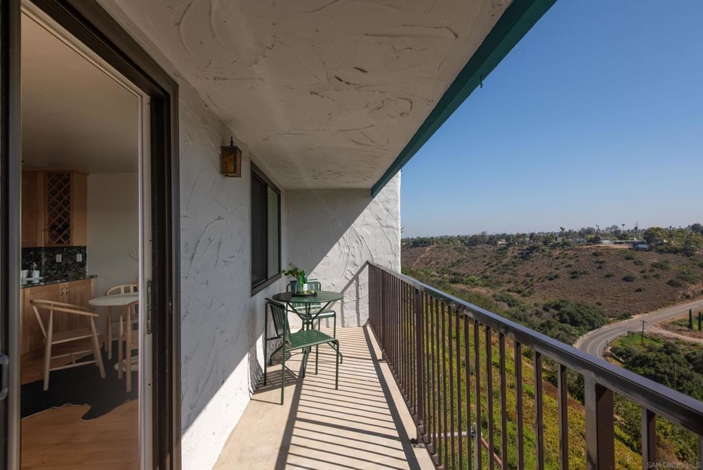 Gorgeous top floor 2BED/2BATH single level condo overlooking Tecolote Canyon. You will absolutely love the beautiful panoramic canyon views and spectacular sunrise. This meticulously cared for move-in ready home boasts a gourmet kitchen w/ss appliances, solid wood cabinetry, and granite countertops. Other features: solid wood floors in LR/DR & hallway, double paned vinyl windows/sliders, engineered wood floors in bedrooms, airy layout w/tons of natural light, all with low HOA dues. 1 assigned carport parking space & 1 guest parking