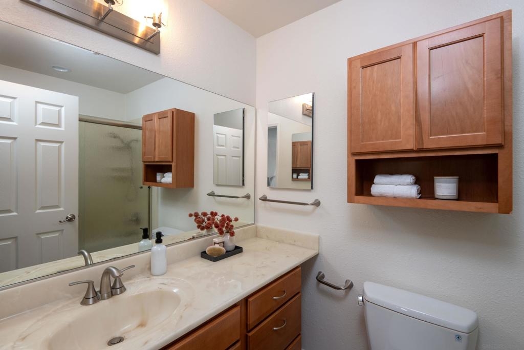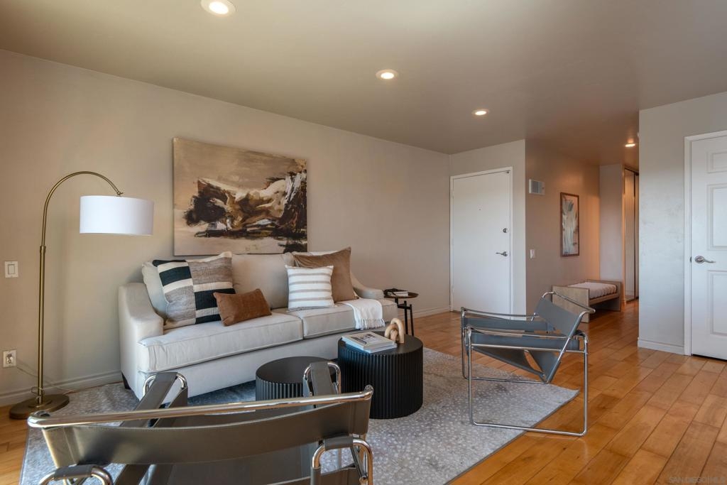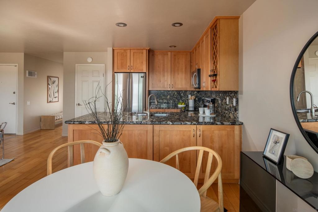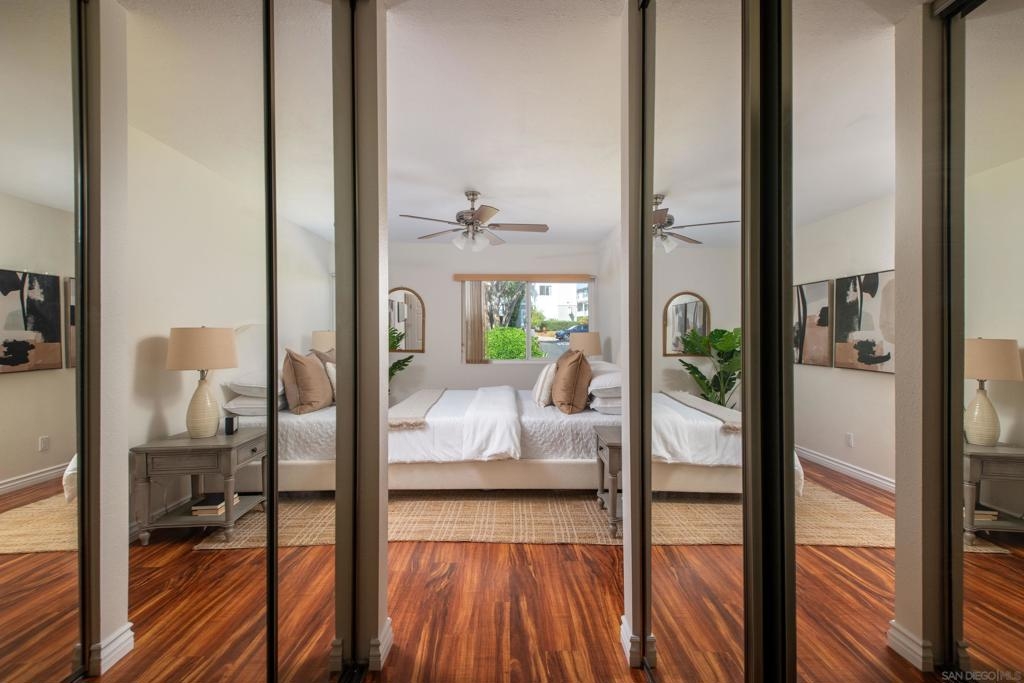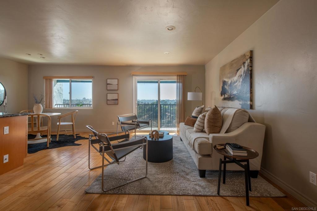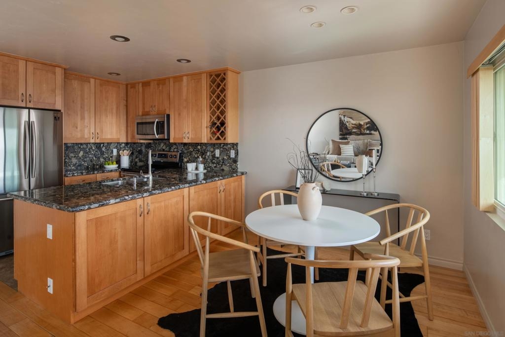 Gorgeous top floor 2BED/2BATH single level condo overlooking Tecolote Canyon. You will absolutely love the beautiful panoramic canyon views and spectacular sunrise. This meticulously cared for move-in ready home boasts a gourmet kitchen w/ss appliances, solid wood cabinetry, and granite countertops. Other features: solid wood floors in LR/DR & hallway, double paned vinyl windows/sliders, engineered wood floors in bedrooms, airy layout w/tons of natural light, all with low HOA dues. 1 assigned carport parking space & 1 guest parking