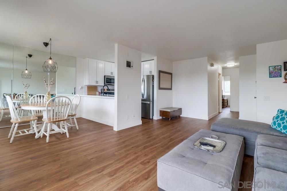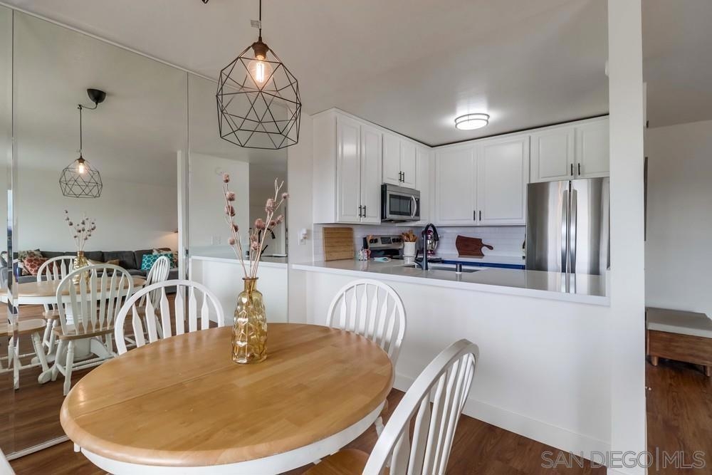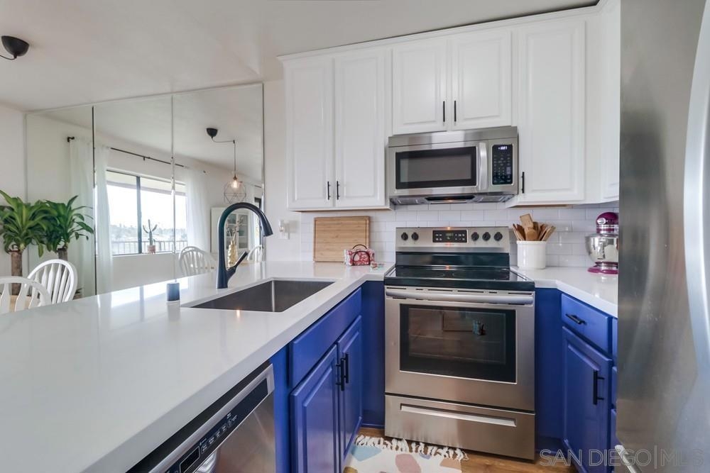 Perched above Tecolote canyon, enjoy sunrise views from the patio while having your morning coffee. This 2 bed/2 bath condo is conveniently located just over a mile from I-5 and walkable to Sprouts, Rite-Aid, the library, restaurants, and bars. Tecolote Canyon has a golf course, driving range, and hiking & mountain biking trails. New vinyl plank flooring throughout installed in 2020 and new kitchen appliances, countertop, lighting, and tile backsplash in 2021. One assigned carport parking space as well as one guest parking pass included. Buildings in the complex are in the process of being painted. All appliances come with this sale and the HOA includes water & trash. Equipment: Dryer, Washer Sewer: Sewer Connected