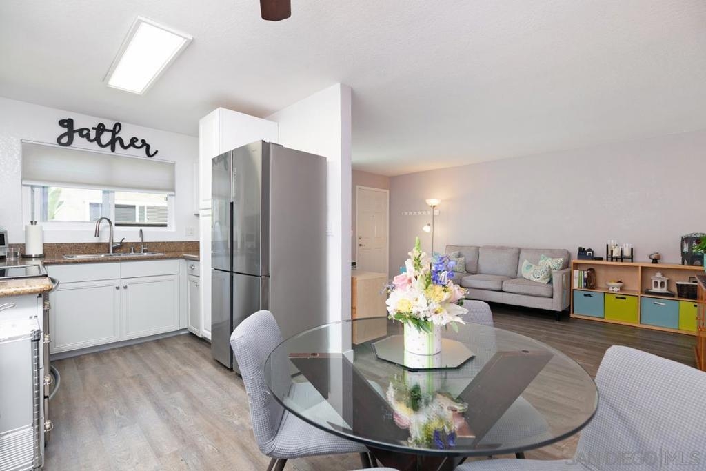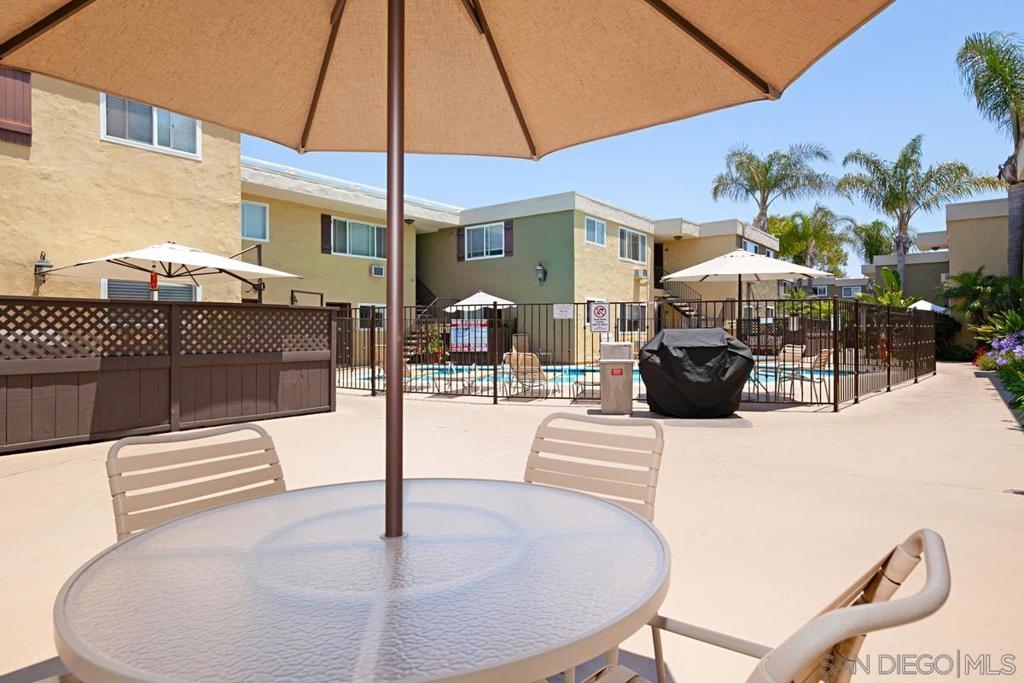 Welcome to the heart of Clairemont! This newly renovated home could be yours. This is a beautiful, clean, sunny, corner unit with large windows bringing in lots of natural light. There's a large private patio with storage, space efficient master closet and hallway closet, luxury vinyl plank flooring, stainless steel appliances, newer fridge. Take a straight shot down Balboa to the beach, then after a long day at the beach, come home to the heated swimming pool surrounded by palm trees galore.This fully gated, safe and quit community is close to tons of shopping! Come see it quickly before its gone! Complex Features: ,,, Sewer: Sewer Connected Topography: LL