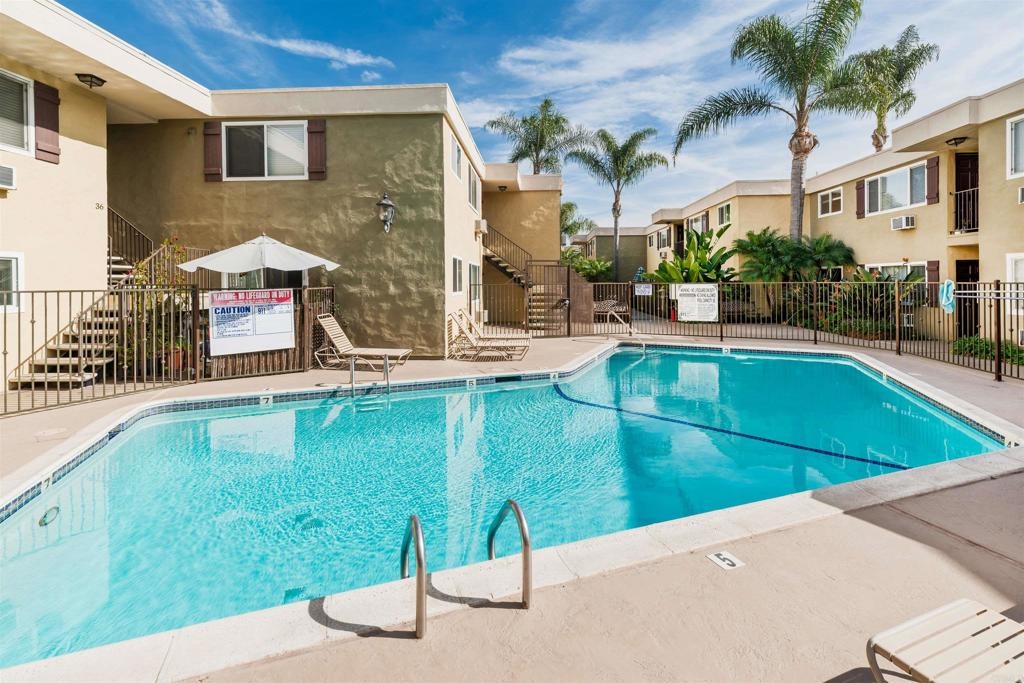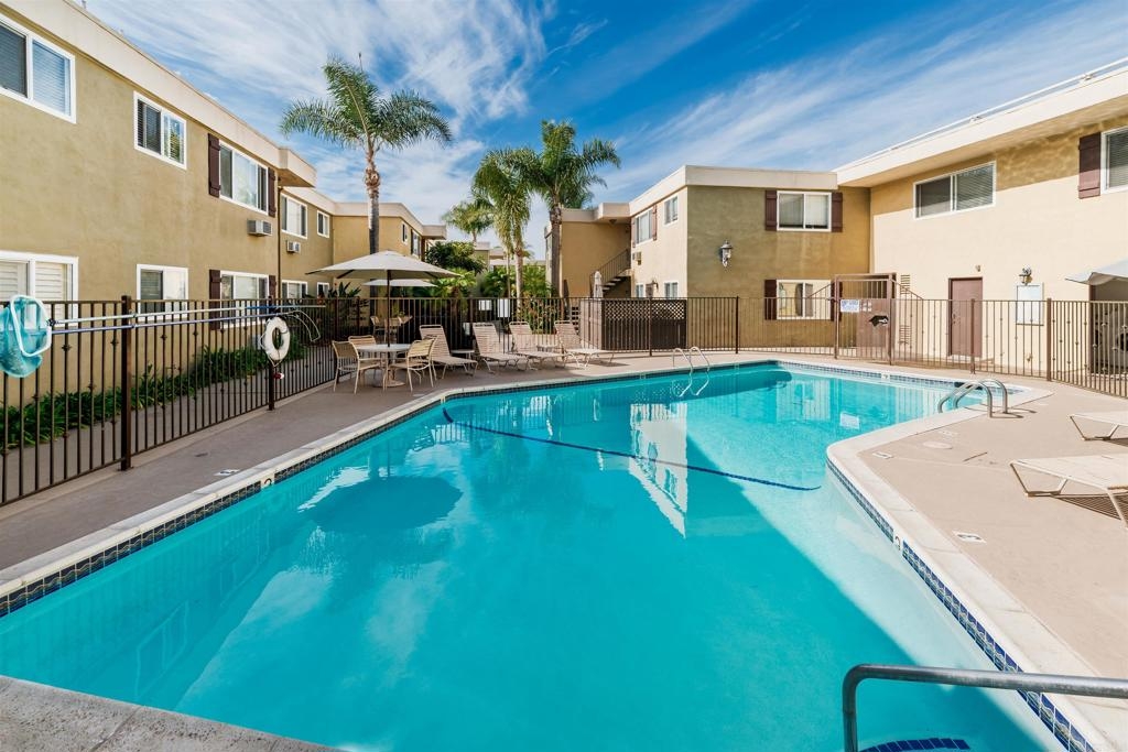 This spacious 2-bedroom condo is ideally located in the heart of San Diego. The updated upper-level unit features an open living area, a large kitchen with granite countertops and a cozy dining nook, ample closet space with mirrored doors, and 2 full baths with granite counters. With newer flooring and fresh interior paint, this move-in-ready home offers comfort and convenience. Situated in a gated community, residents enjoy amenities such as a sparkling pool, a community laundry room and a beautifully maintained complex. Close to shopping, dining, schools/colleges and entertainment, this home is perfect for those seeking accessibility and a vibrant lifestyle. Enjoy quick access to some of San Diego’s most popular attractions, including SeaWorld, Petco Park, Pacific Beach, and Mission Bay, as well as effortless travel to Downtown or charming destinations to the north. Don’t miss this incredible opportunity to own in one of San Diego’s most desirable areas!