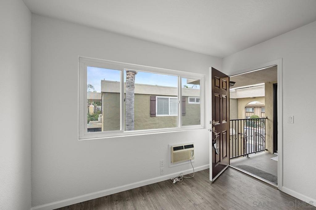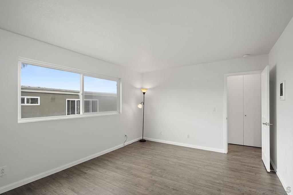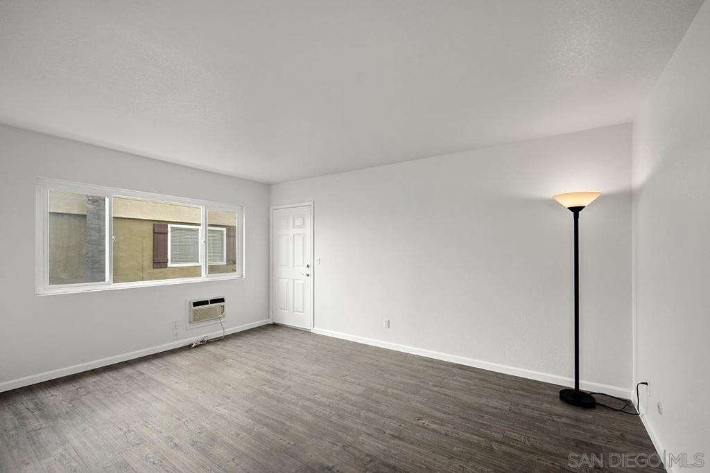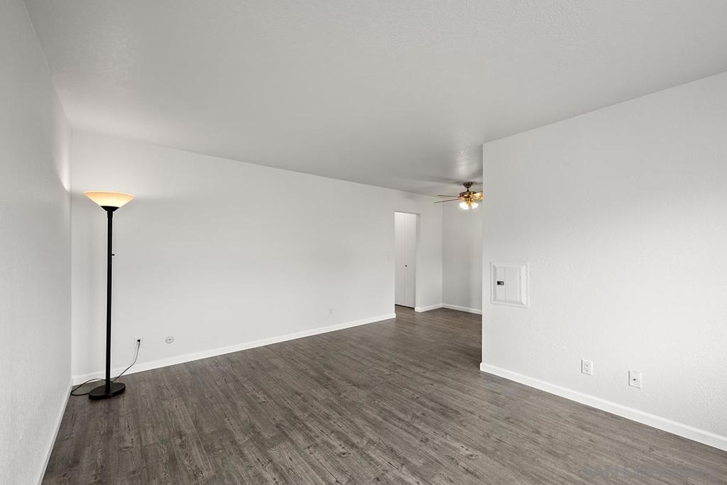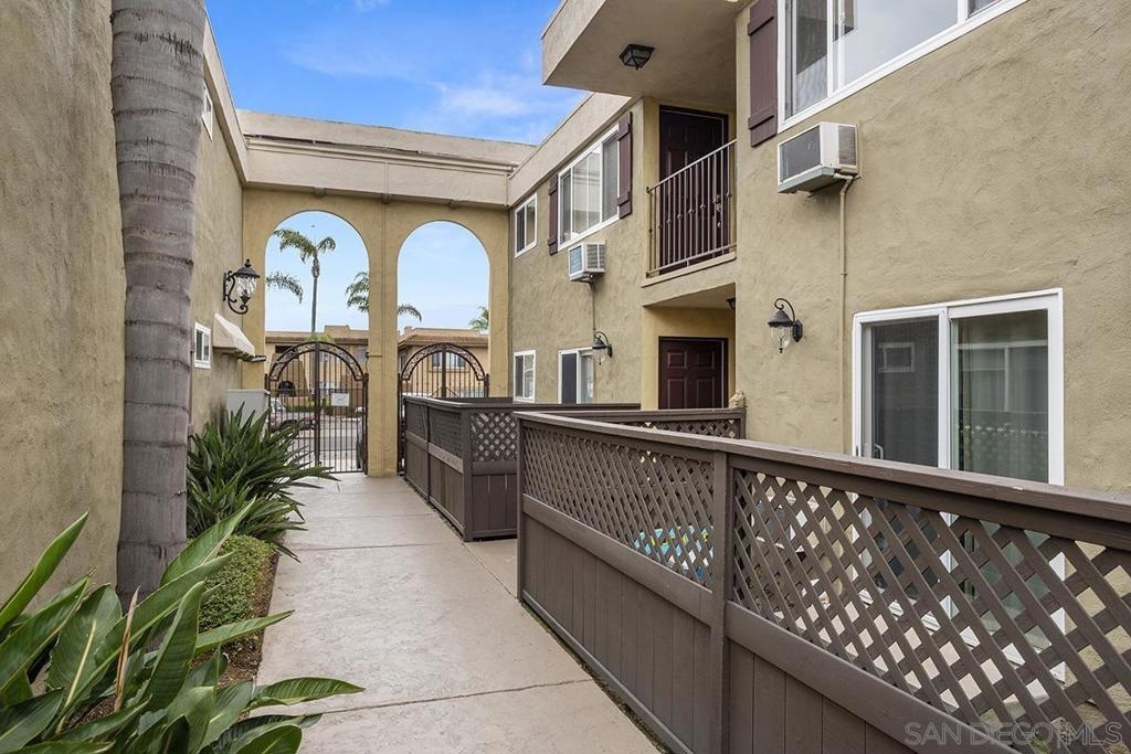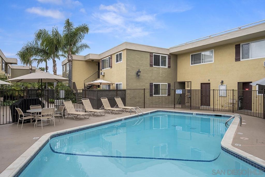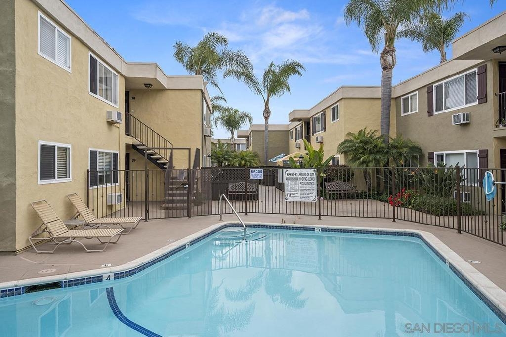 Wonderful opportunity to live at Heritage Park East in centrally located Clairemont! Beautiful top floor 1 bedroom and 1 bath unit that is light & bright and now ready for a new owner. This condo was just recently painted and new floors were installed. One designated parking space behind the gates. This well managed and maintained, gated community has an inviting pool area, laundry room, and mature landscaping. Close to all. Not to be missed.
