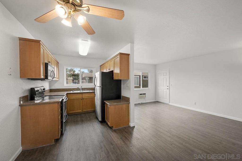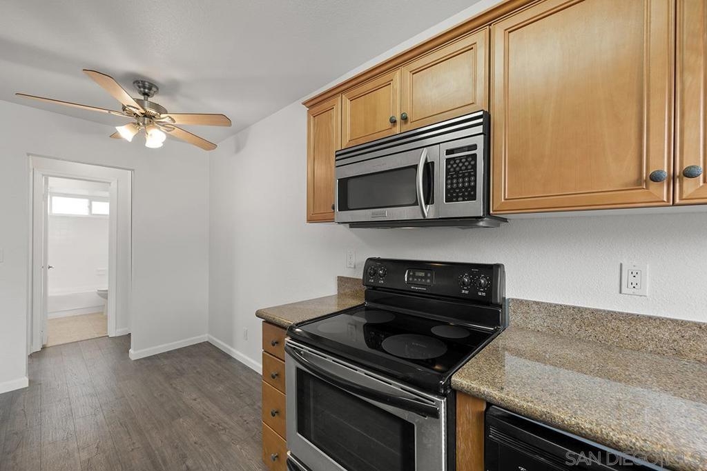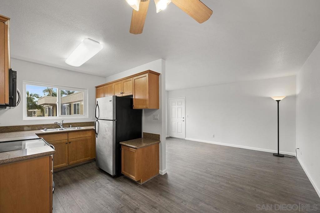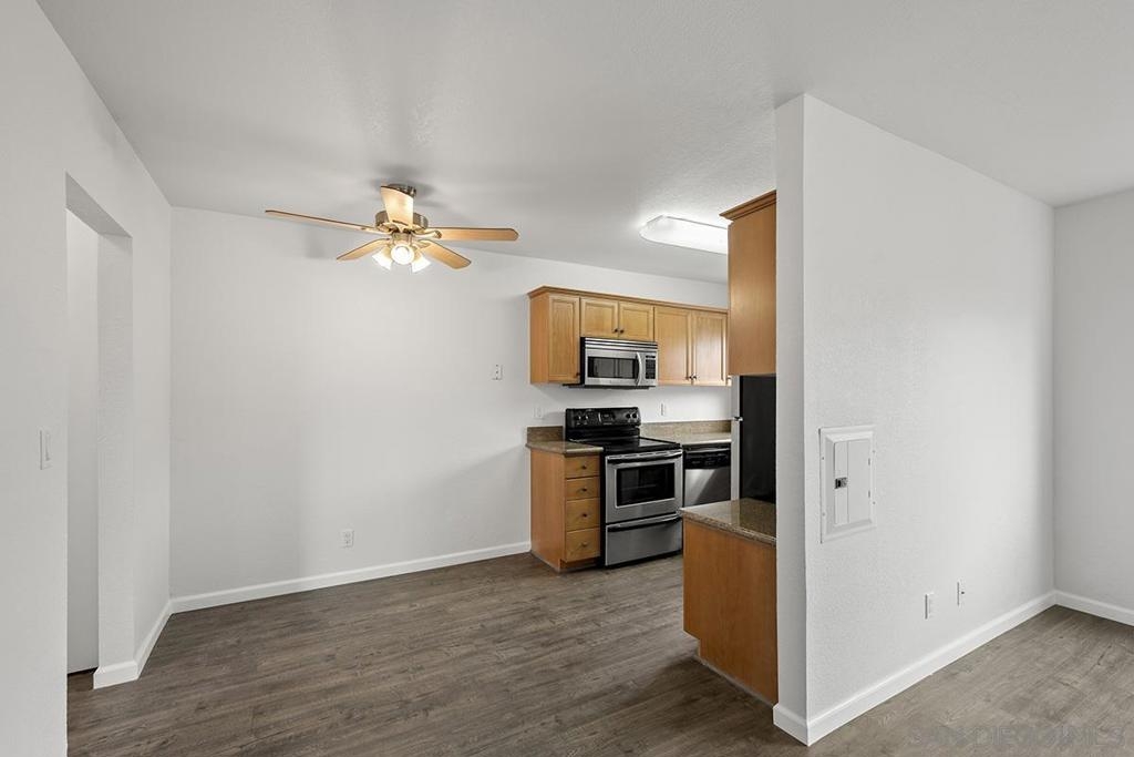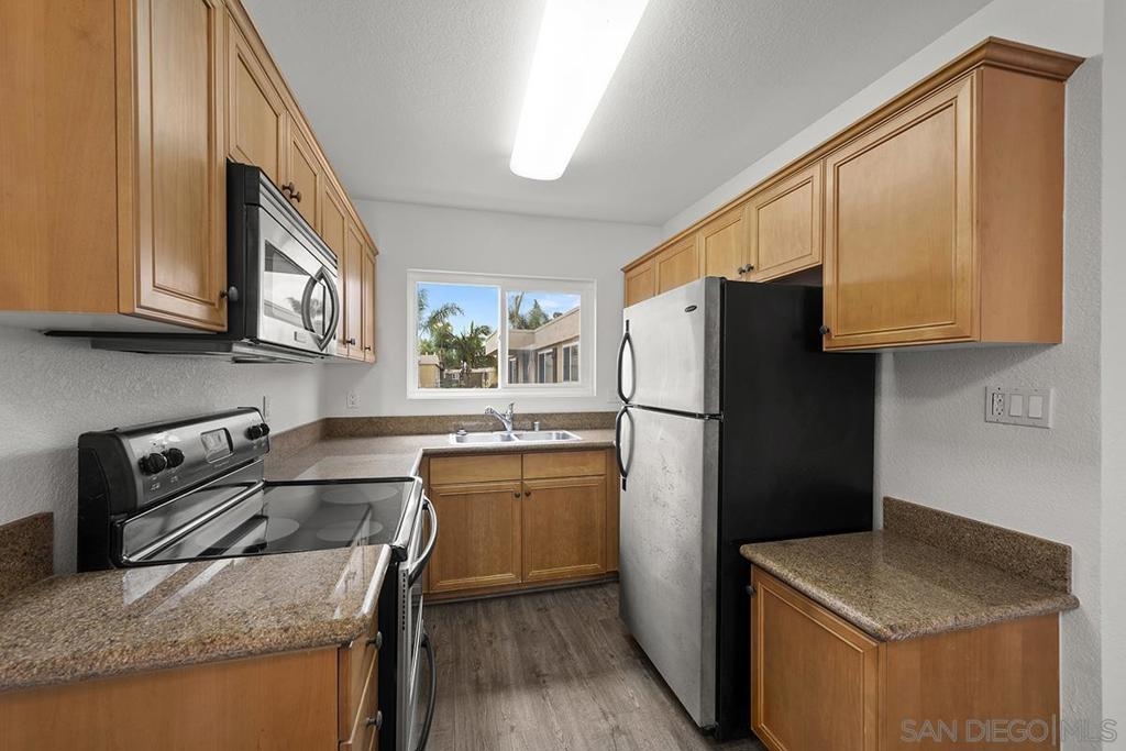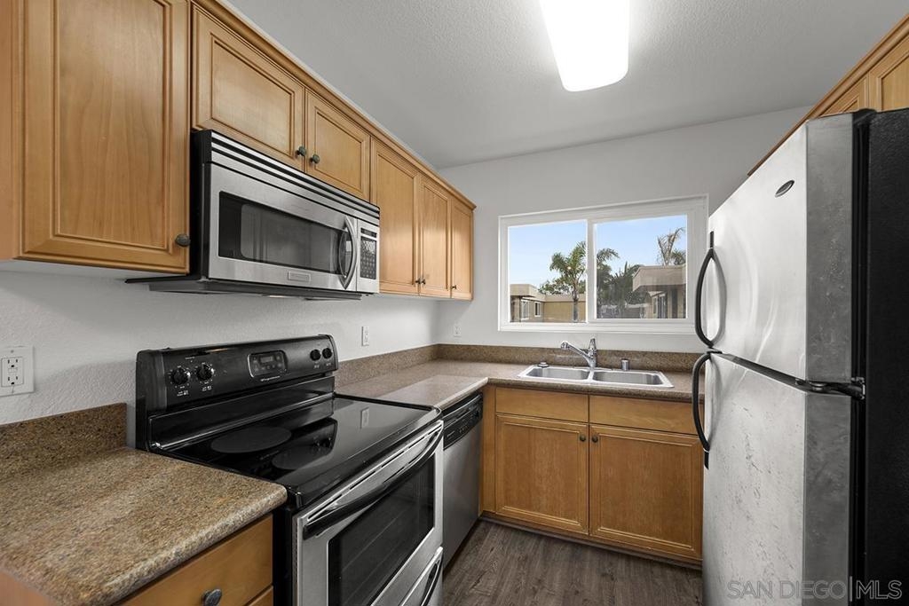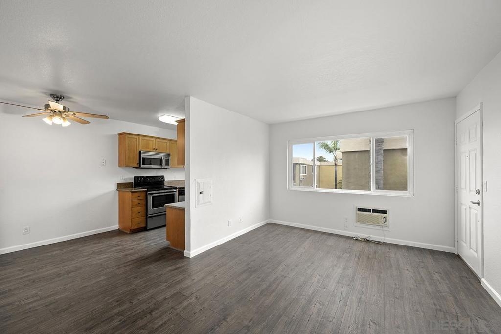 Wonderful opportunity to live at Heritage Park East in centrally located Clairemont! Beautiful top floor 1 bedroom and 1 bath unit that is light & bright and now ready for a new owner. This condo was just recently painted and new floors were installed. One designated parking space behind the gates. This well managed and maintained, gated community has an inviting pool area, laundry room, and mature landscaping. Close to all. Not to be missed.