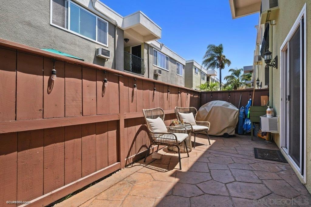 This beautiful condo is centrally located in the gated community of Heritage Park West. This home features entry-level access and includes two bedrooms and two full baths along with a private patio. The unit is immaculate and a must see! The open concept living space includes a modern look with custom light fixtures, facets, mosaic backsplash, newer cabinetry and flooring, and a spacious kitchen with granite countertops. The complex is nestled in beautiful coastal landscaping providing true San Diego living. Heritage Park West includes two onsite laundry facilities, a community pool, and is centrally located to all major freeways, public transportation, beaches and walking distance to shops and restaurants. Complex Features: ,, Sewer: Public Sewer Topography: LL