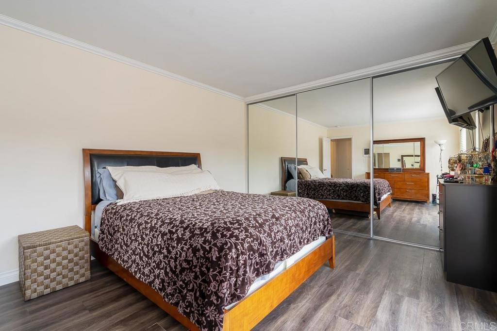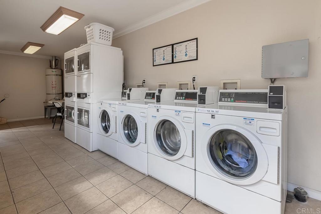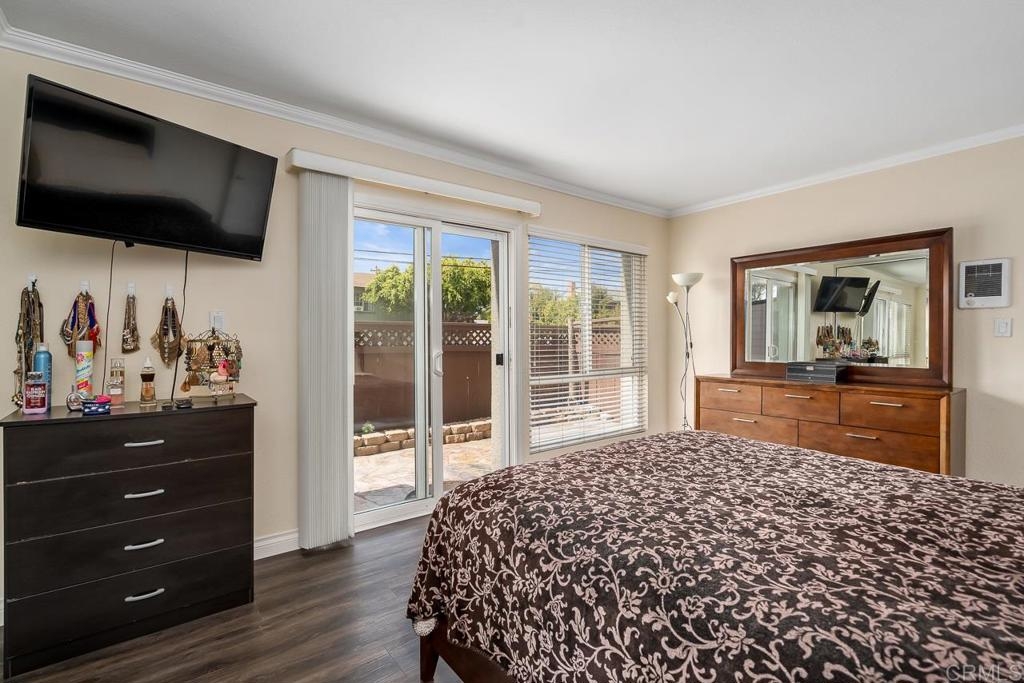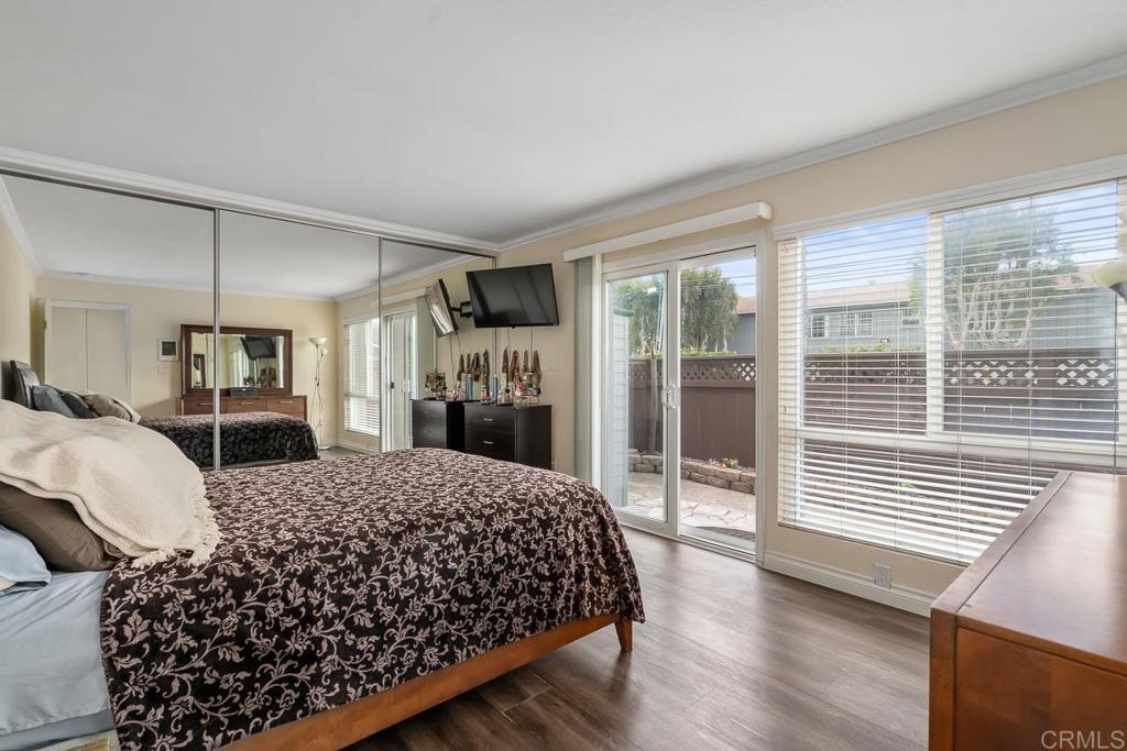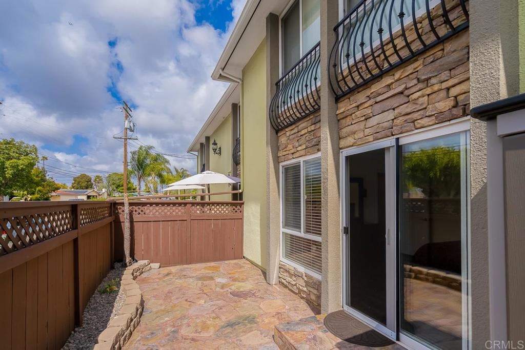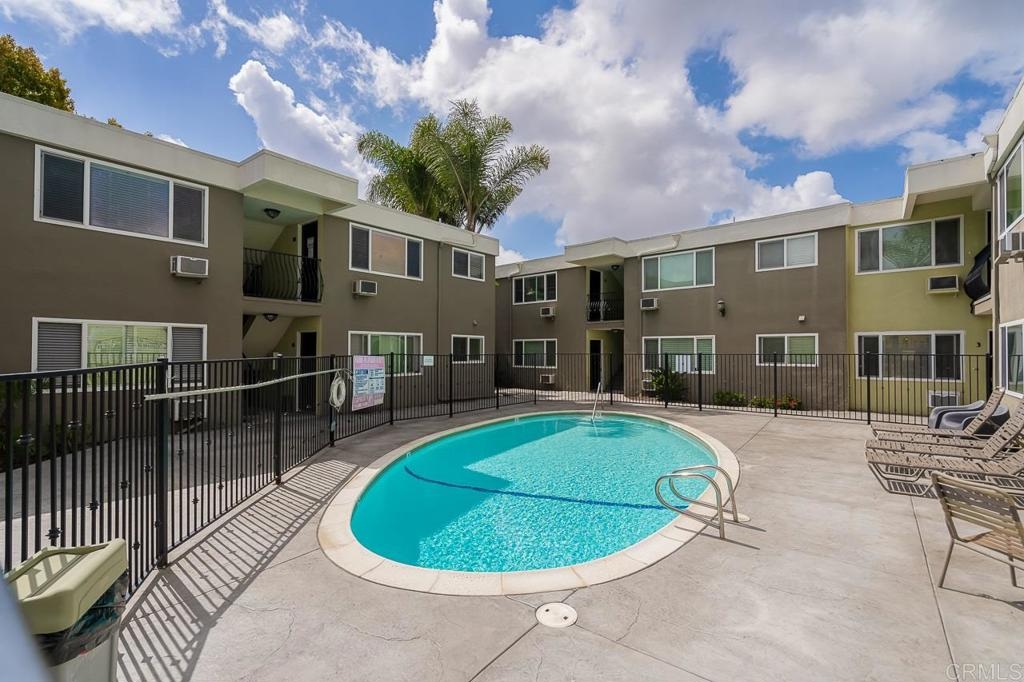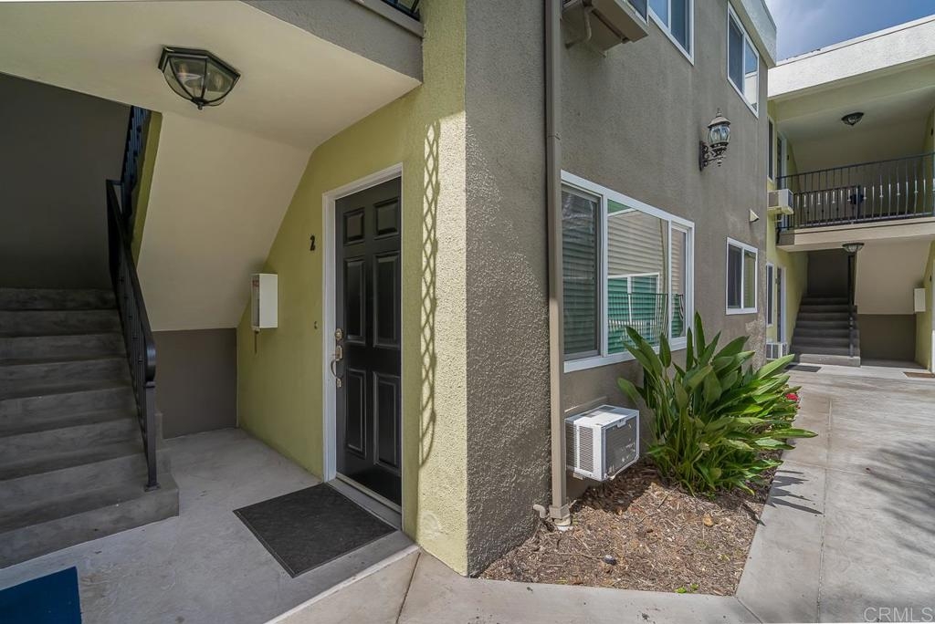 Highly desirable, affordable, first floor unit, with a PRIVATE PATIO, in the heart of Clairemont! This spacious floor plan offers lots of natural light & easy access to the pool. PRIVATE PATIO is hardscaped; ready for grilling & entertaining. The A/C wall unit in the living room is only 2 years old & WIFI accessible. Kitchen has granite countertops, stainless steel appliances & very large stainless steel sink. Beautiful laminate floors in living room, dining room & master bedroom. Crown molding throughout. Master bedroom has an extra large closet & plenty of room to have a personal work space. Gated community with Pool. Unit is ideally located, walking distance to parks, shopping & dinning. Minutes away from Pacific Beach, La Jolla & MCAS Miramar. Easy access to several freeways.