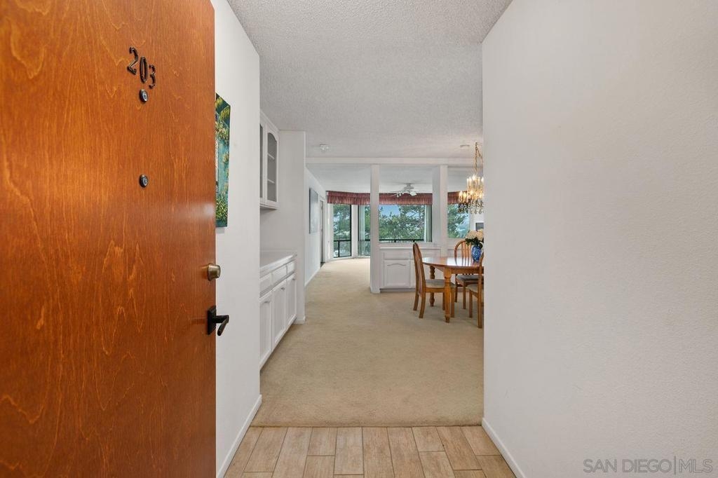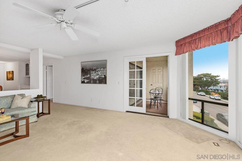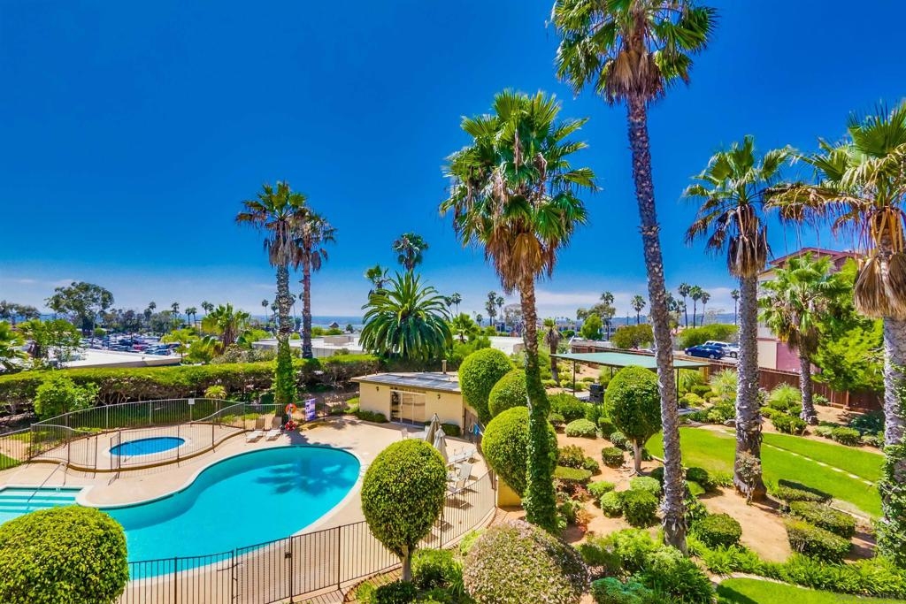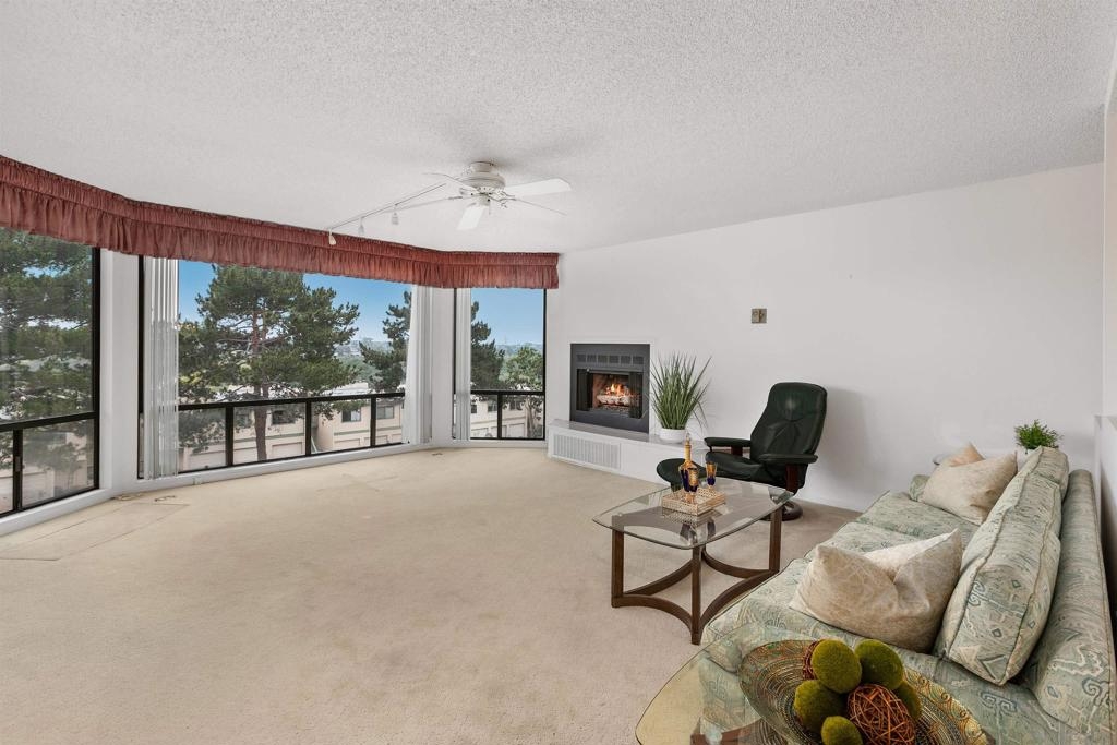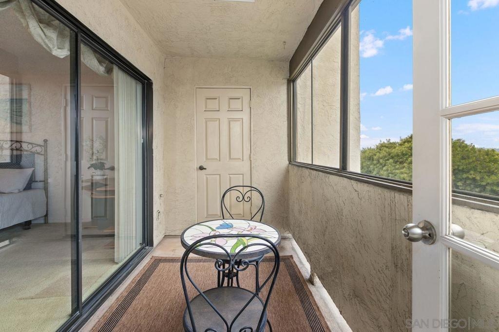 Beautiful 2 bedroom/2 bath spacious single level condo with amazing amount of natural light and views to the East of trees and Tecolote canyon. Sitting in your living room feels like you are in a tree house. Two private balconies off of each bedroom. Gas fireplace, soaking tub, extra large shower in Master Bath. In unit laundry closet. Very well maintained property that you will want to rush to see. Make this beauty your own. Lots of shared amenities in the backyard including a community pool/spa and BBQ and picnic area. Underground secured parking with one parking space and an assigned storage unit. Elevator access from parking garage. This building is close to everything. Walking distance to Sprouts, multiple restaurants/bars and Rite Aid. Minutes from Mission Bay, Sea World, Pacific Beach, Mission Beach, the Airport as well as Downtown and Little Italy.