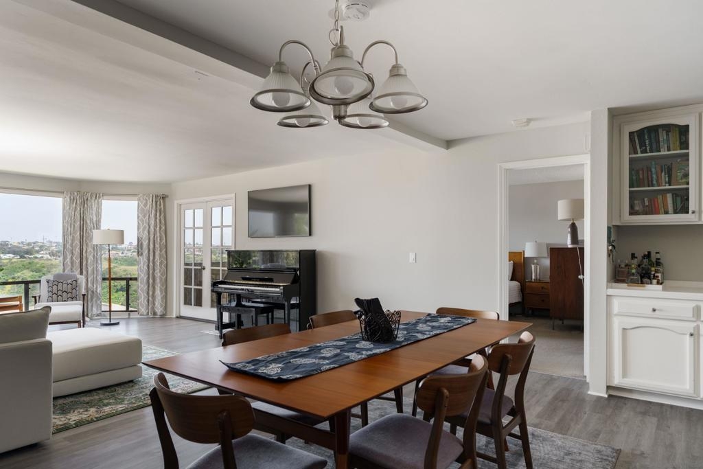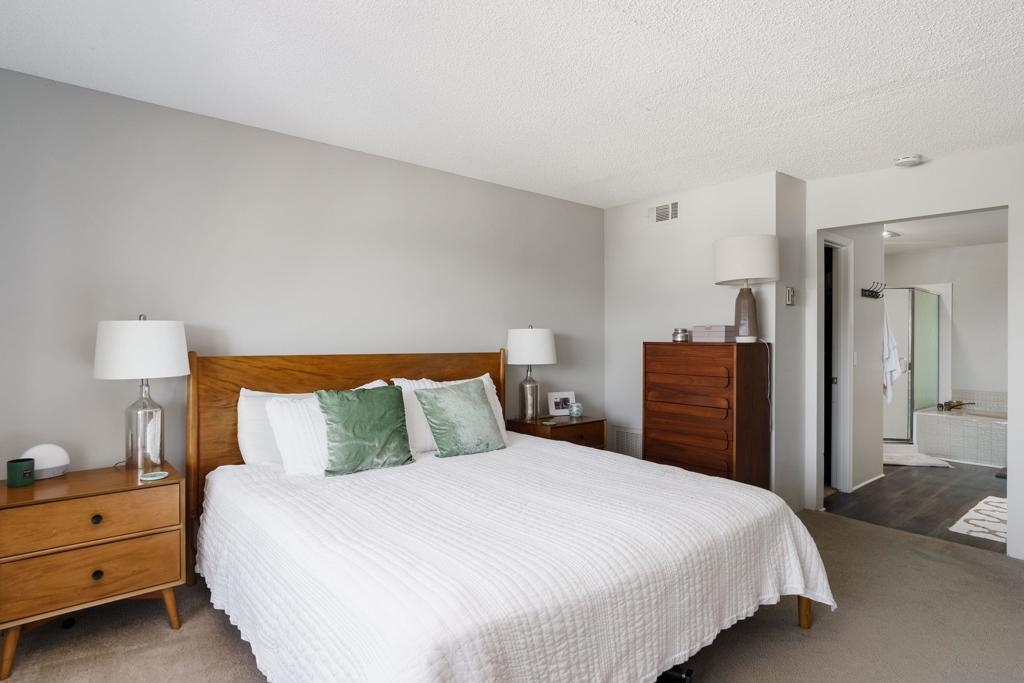 SIT DOWN VIEWS...END UNIT...SOUTH EAST CORNER...ELEGANT AND OPEN FLOOR PLAN...SINGLE LEVEL, 2 BEDROOM 2 FULL BATH WITH INTERIOR LAUNDRY..RECENTLY REFRESHED INTERIOR..PRIMARY BEDROOM PROVIDES ENSUITE WALK IN CLOSET WITH FULL BATH... WALKING DISTANCE TO DINING,SHOPPING,COFFEE,TROLLEY,TRANSPORTATION,BAY PARK DINING,PARKS,GOLF AND MINUTES FROM MISSION BAY..LIVES LIKE 2 MASTER BEDROOM AS 2ND BED IS ON OPPOSITE SIDE.ALSO INCLUDES, ON SITE, LARGE 8X8 STORAGE UNIT! NATURAL LIGHT IS A PLENTY !