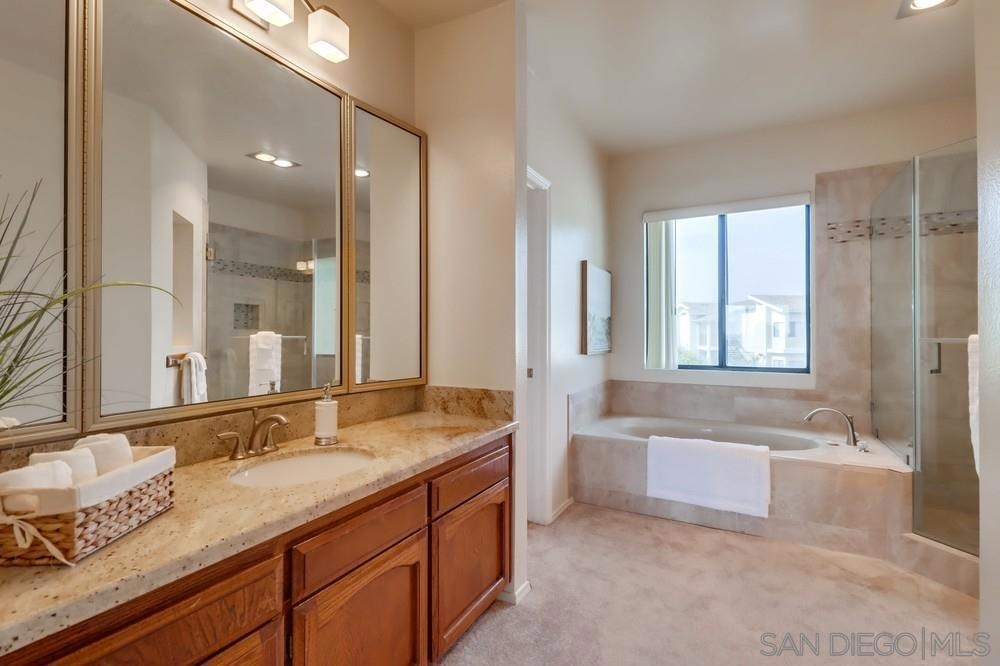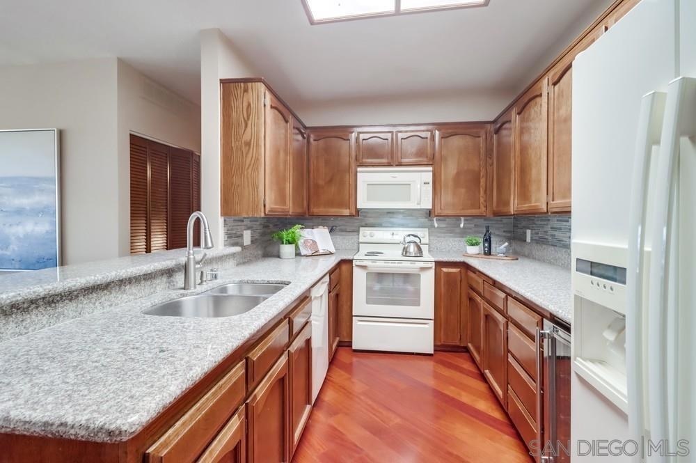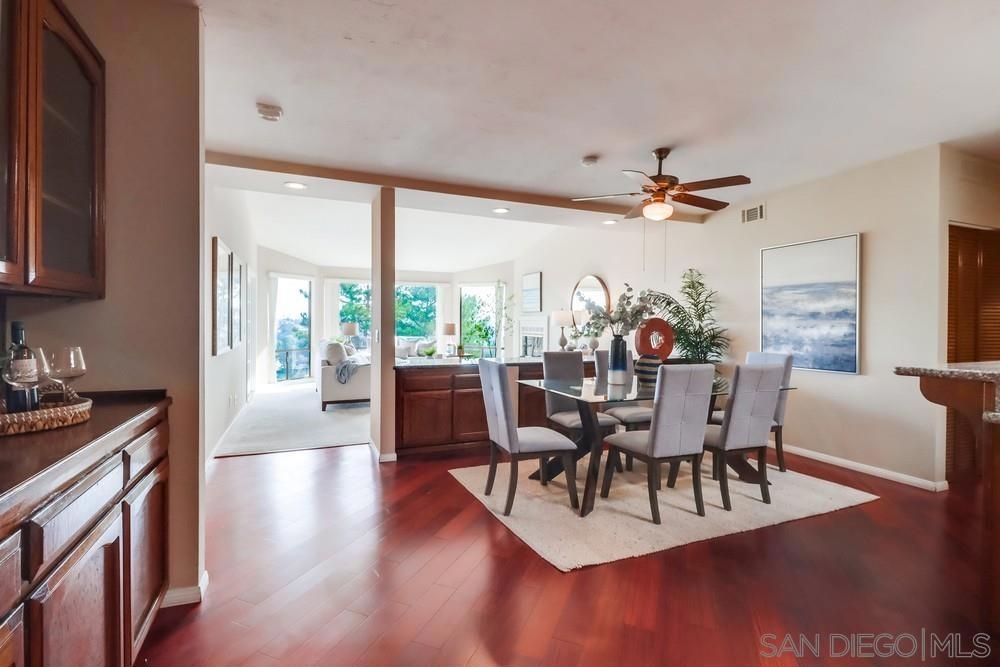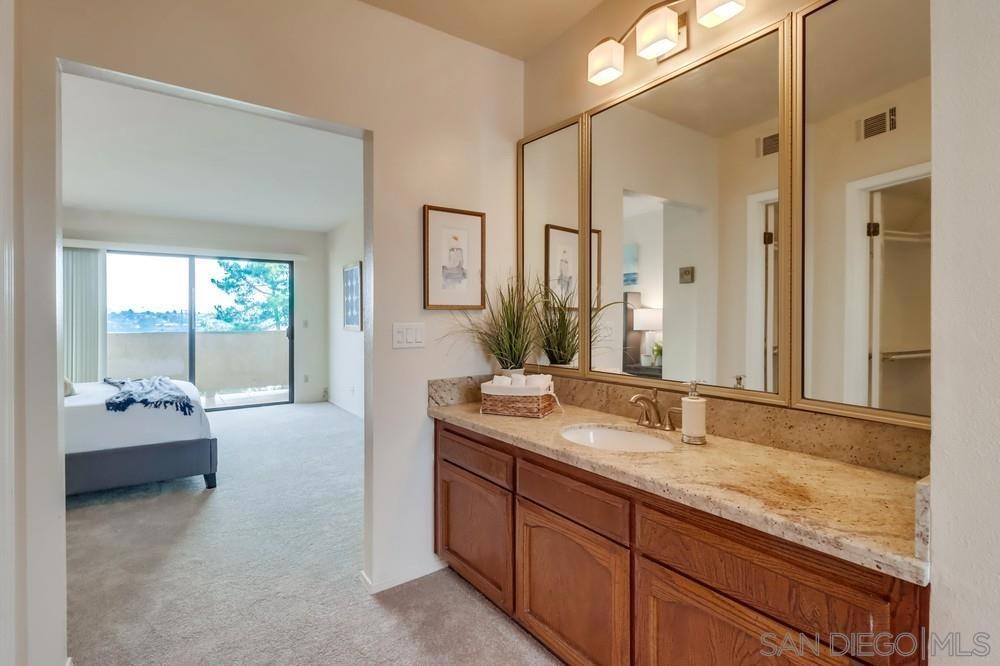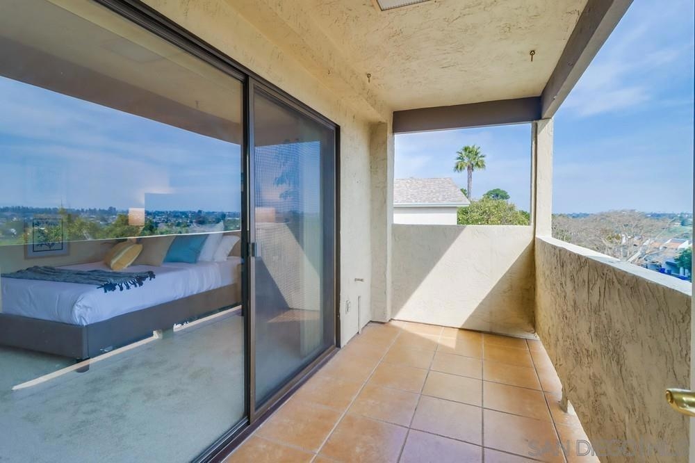Enjoy stunning city & canyon views from this TOP floor CORNER unit in desirable Bay Park! Tons of natural light with floor to ceiling windows. Great outdoor space with balconies & views from each bedroom. Ideal layout with separate and private bedrooms. Primary bedroom offers large walk in closet, a soaking tub and dual sinks. Great location in Bay Park with close proximity to shopping, restaurants and a quick drive to the beach and bay. The Mission Bay Ridge complex features a pool/spa, sauna & rec room!
