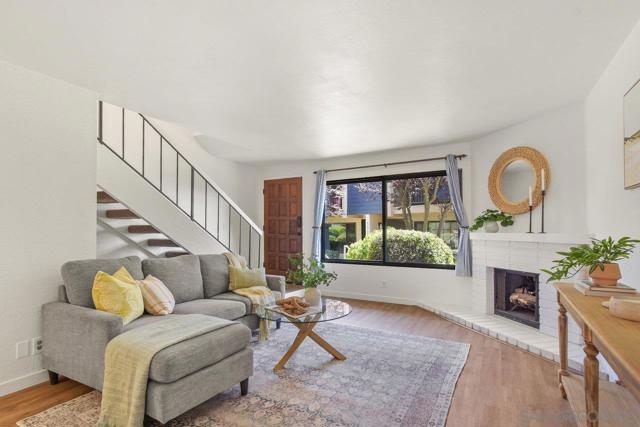 Beautiful remodeled 2-bedroom, 1.5 bathroom townhome, located near the beaches and downtown! As you enter, you'll appreciate the newer security door, double-paned windows and sliders, freshly painted walls throughout, fireplace, and wood-look flooring that flows throughout the downstairs. You'll love the updated kitchen with its natural stone countertops, stainless steel appliances, white Shaker cabinets, updated bathrooms, and the in-unit laundry with its new full-sized LG washer/dryer. You'll love the water view from your own private balcony upstairs bedrooms! The large back patio is an extension of your living space and wonderful for outdoor entertaining. And you have TWO parking spaces! Your HOA fee covers trash and water, and the complex has a swimming pool, spa, and racquetball court with locker rooms. Finally, the location can't be beat: easy freeway access, and super close to Pacific Beach and Mission Bay Park! And don't forget: the new trolley stop is just minutes away with service to downtown San Diego, PetCo Park, Snapdragon Stadium, and north to UTC. This one is IT!