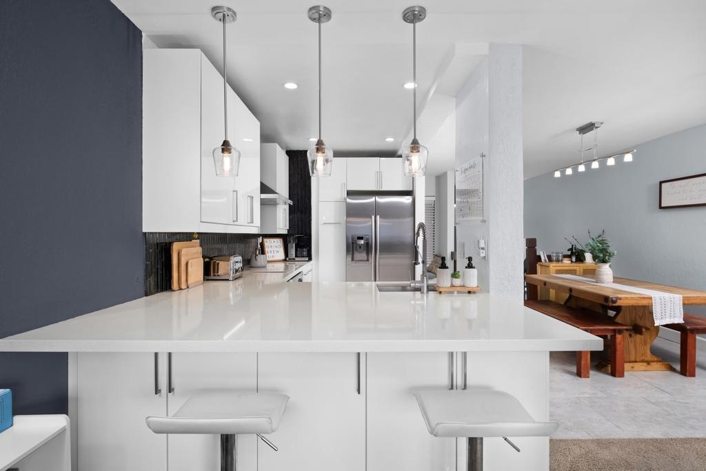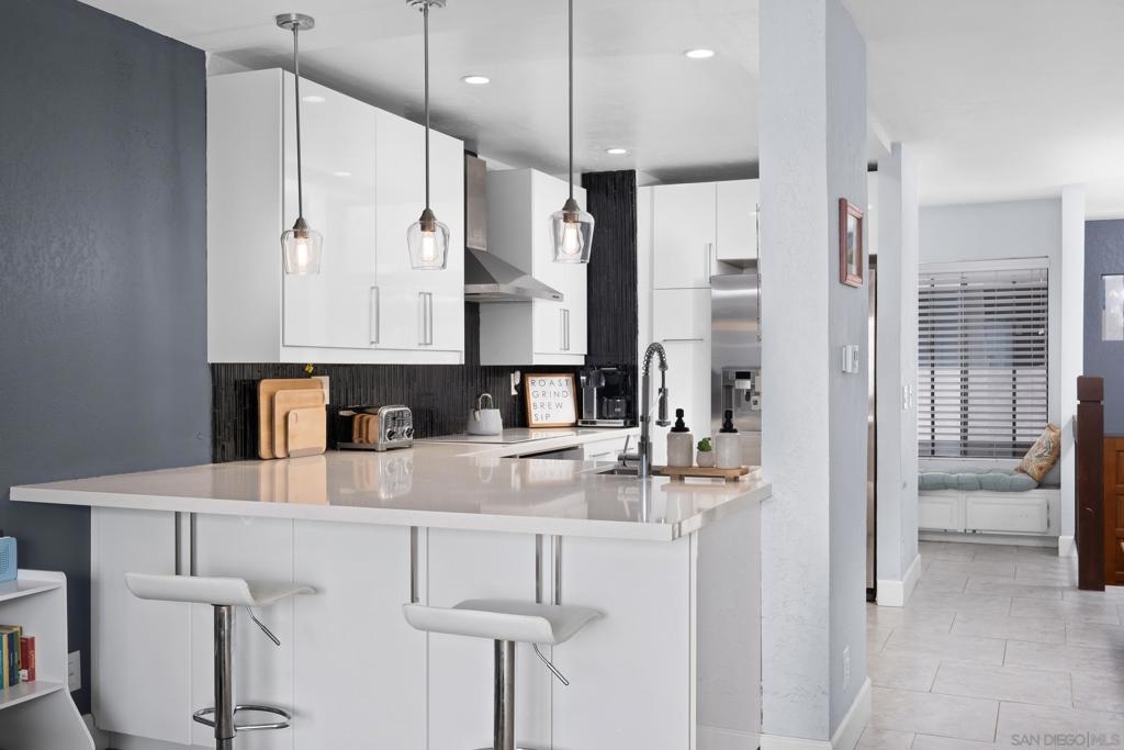Panoramic, OCEAN VIEWS from this tastefully remodeled townhome located in the very desirable, Bay Ho neighborhood/Pacific Racquet Club. Imagine coming home to a front row seat to stunning sunsets and coastal ocean breezes all year round. This 3 story townhome has an open concept kitchen with quartz countertops, SS appliances, and large eat in bar that flows into a ocean with patio big enough for a BBQ. Newer central AC and central heat! Great floor plan with half bath up stairs and a remodeled jack n jill bathroom between bedrooms. Home also has an attached oversized 1 car garage with full size laundry, and comes with one assigned parking space right in front of the unit. Complex has great amenities, including pool, spa, and racquetball court.