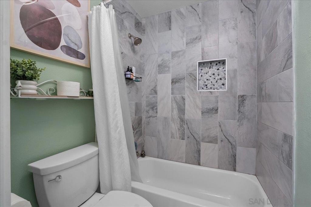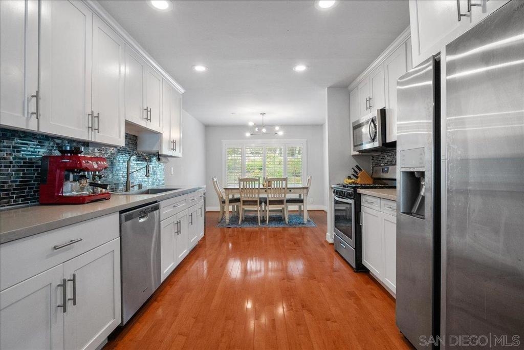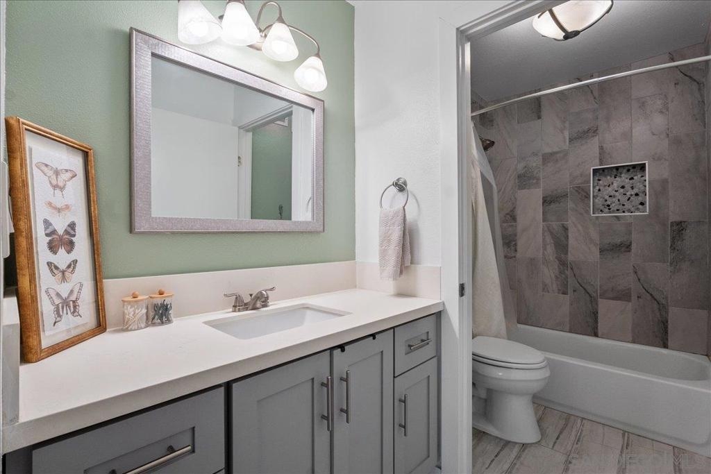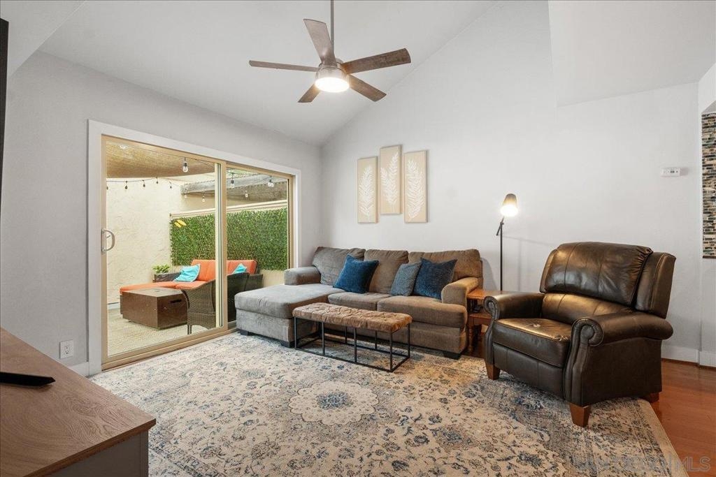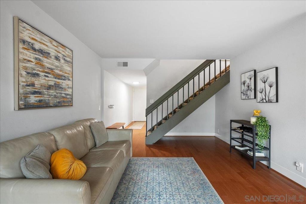 MAJOR Price Improvement, Sellers are Motivated and will entertain a seller-paid INTEREST RATE BUYDOWN for buyers, so bring your offers! Renovated condo on a cul-de-sac amongst the eucalyptus trees of Scripps Ranch. Gorgeous upgrades throughout. As you enter, there are engineered hardwood floors and an open floorplan which has the living room, kitchen, and dining room flowing together – great for entertaining. The living room has stunning vaulted ceilings and tons of natural light as it’s open to the spacious private patio. The kitchen has many upgrades including quartz countertops, stainless steel appliances, and plenty of storage. Upstairs you’ll love the large primary suite including large closet and an updated bathroom. There’s not one, but two spacious and private patios to enjoy entertaining or relaxing. There’s also an indoor laundry closet that have 2 full sized washer and dryer. The 2-car garage has upgrades too, with an epoxy floor, drywall, and a decorative accent wall. This home is in a great spot in the community, near the end of a cul-de-sac to give you peaceful living. The community also has 2 heated pools and spas to enjoy! The location can’t be beat as it’s just minutes to Lake Miramar, and is walkable to a local neighborhood pond, parks, hiking trails, and the nearby middle school. Also in a top-rated School District. Welcome home!