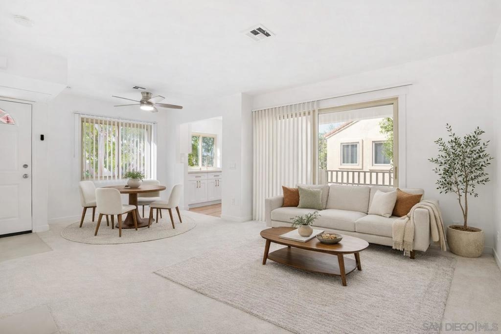Welcome to this beautifully updated 1-bedroom, 1-bathroom condo with 598 sq. ft. of modern living space. Every detail has been thoughtfully upgraded, including a brand-new kitchen with sleek cabinetry, quartz countertops, designer tile backsplash, and stainless steel appliances. The open living area features large-format tile at the entryway, a stunning new fireplace surround, and dual-paned windows that fill the home with natural light. The spacious bedroom connects to a fully renovated bathroom with a new vanity, tile, tub, and fixtures. Additional highlights include in-unit washer/dryer, newer HVAC system, private balcony, ample storage, and a dedicated covered parking space. Situated on the top floor for added privacy, this home combines comfort and convenience in one of San Diego’s most desirable locations. Enjoy being minutes away from endless shopping and dining in Mira Mesa, close to major freeways, UCSD, and the tech hub of San Diego. Whether you’re a first-time buyer, downsizing, or looking for an investment, this turnkey condo offers the perfect blend of style and location.