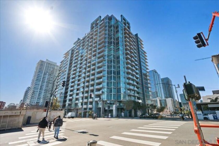Highly desirable corner residence in the Smart Corner building showcasing floor-to-ceiling windows and abundant natural light in the heart of East Village. One of the largest floor plans in the community, this industrial-inspired 2-bedroom, 2-bath condo offers approximately 1,284 sq ft with a modern open layout designed for upscale urban living. The bright kitchen with island flows seamlessly into the main living space, creating an ideal setting for entertaining, while the covered patio and in-unit laundry provide everyday convenience. The building features convenient ground-floor retail including 7-Eleven and Subway, adding everyday accessibility right at your doorstep. Ideally located within walking distance to the Gaslamp District, Petco Park, Balboa Park, dining, nightlife, and trolley access, this residence captures the true downtown lifestyle. The garage includes two tandem parking spaces and direct access toward Hwy 163 and Interstate 5 for effortless commuting. HOA amenities include a fitness center, panoramic rooftop deck with spa and BBQ grills, and sweeping views of downtown, Coronado, and the surrounding coastline. A prime opportunity for luxury city living or investment in one of San Diego’s most vibrant neighborhoods.