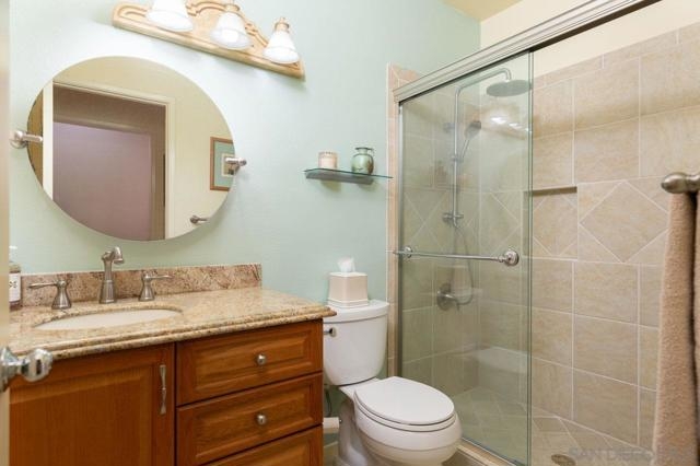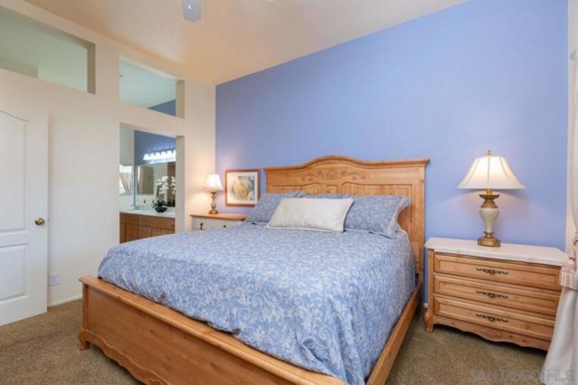 Bright and inviting 2-bedroom, 2-bath first-floor home in Belsera with 10’ ceilings and solid-surface floors through much of the space. Living room offers a cozy fireplace and smooth flow into dining area and updated kitchen with brand-new stainless appliances. Primary bedroom includes a walk-in closet and en-suite bath with double-sink vanity. Second bedroom works well for guests or a home office. Updated kitchen and main bath add to the move-in-ready feel. Attached 1-car garage, assigned parking space, and nearby guest parking provide convenience. Belsera amenities include pools, spas, volleyball court, and BBQ areas. Walking trails, nearby shops, and local restaurants support an easy outdoor lifestyle in Tierrasanta.