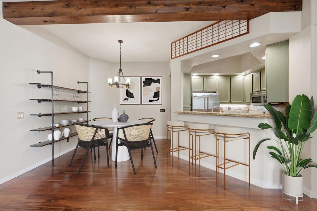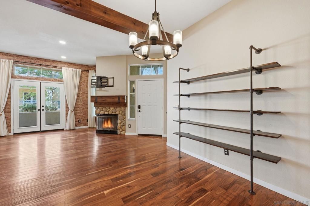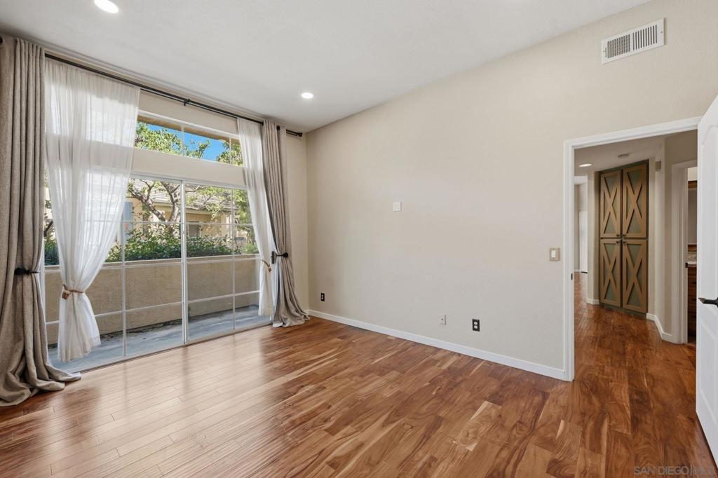 Welcome to this beautifully appointed 2-bedroom, 2-bath to condominium ideally situated in the heart of Rancho Bernardo. This light-filled corner unit offers privacy, tranquility, and picturesque park-like views within a desirable gated community. Thoughtfully designed for both comfort and style, the home features rich wood flooring, custom window treatments, and a spacious living area anchored by a newly updated fireplace-perfect for relaxing evenings at home. The kitchen is equipped with a new Samsung induction stove and cooktop, blending modern efficiency with sleek design. Enjoy seamless indoor-outdoor living with two private patios-one off the living room, ideal for entertaining or morning coffee, and another off the primary bedroom, creating a peaceful retreat. The guest bathroom has been newly remodeled and includes the added luxury of a bidet, while both bedrooms offer comfortable storage accommodations and ample natural light. Residents enjoy access to a community pool set within lush, well-maintained grounds. Ideally located just minutes from an array of restaurants, cafes, theaters, and shops, with convenient access to the 56 and 15 freeways, this home offers the perfect blend of convenience and lifestyle. Located within the highly sought-after Poway Unified School District, this is an exceptional opportunity to own in one of North County San Diego's most desirable communities.