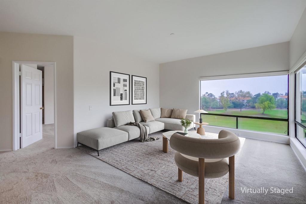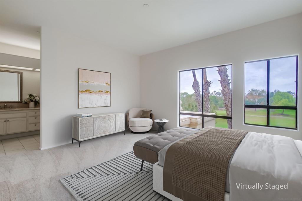 Spectacular top floor corner residence in The Summit at Masters Hill offering panoramic views spanning West, North, and East overlooking the Bernardo Heights Golf Course and surrounding mountains. This exceptional home is ideal as a snowbird or lock and leave retreat or a full time residence. Designed for effortless single level living, this light and bright home features large picture windows that capture the views, brand new carpet, fresh interior paint, and a brand new HVAC system for year round comfort. The updated kitchen offers ample storage, a pantry, and generous counter space. The spacious primary suite features a dual vanity and abundant closet space. The second bedroom offers mirrored closet doors and convenient direct access to the second bathroom, making it perfect for guests or a home office. Enjoy beautiful pool and spa views from the private balcony. The building offers elevator access with no interior or exterior stairs, creating easy accessibility and a truly low maintenance lifestyle. HOA includes membership to the Bernardo Heights Community Center with pools, tennis courts, fitness center, and more. Located in the award winning Poway Unified School District. Spectacular top floor corner residence in The Summit at Masters Hill offering panoramic views spanning West, North, and East overlooking the Bernardo Heights Golf Course and surrounding mountains. This exceptional home is ideal as a snowbird or lock and leave retreat or a full time residence. Designed for effortless single level living, this light and bright home features large picture windows that capture the views, brand new carpet, fresh interior paint, and a brand new HVAC system for year round comfort. The updated kitchen offers ample storage, a pantry, and generous counter space. The spacious primary suite features a dual vanity and abundant closet space. The second bedroom offers mirrored closet doors and convenient direct access to the second bathroom, making it perfect for guests or a home office. Enjoy beautiful pool and spa views from the private balcony. The building offers elevator access with no interior or exterior stairs, creating easy accessibility and a truly low maintenance lifestyle. HOA includes membership to the Bernardo Heights Community Center with pools, tennis courts, fitness center, and more. Located in the award winning Poway Unified School District.