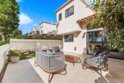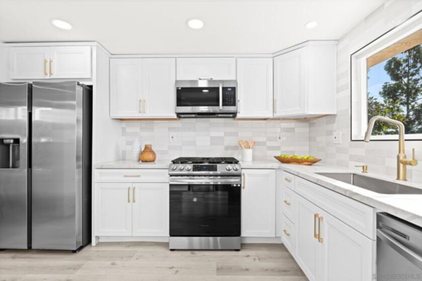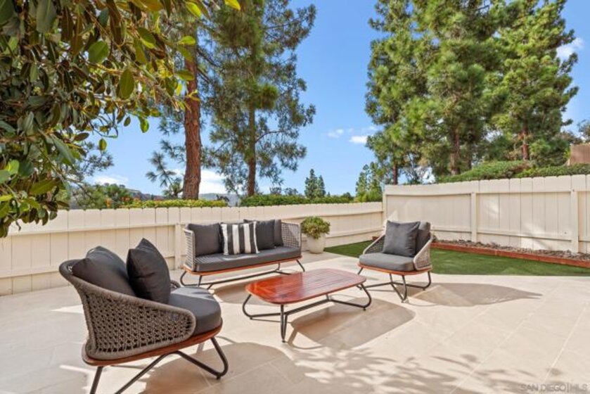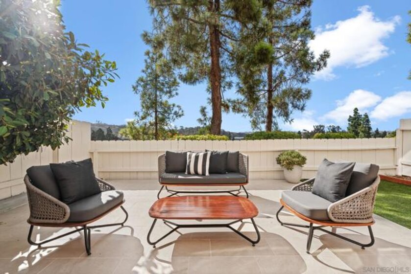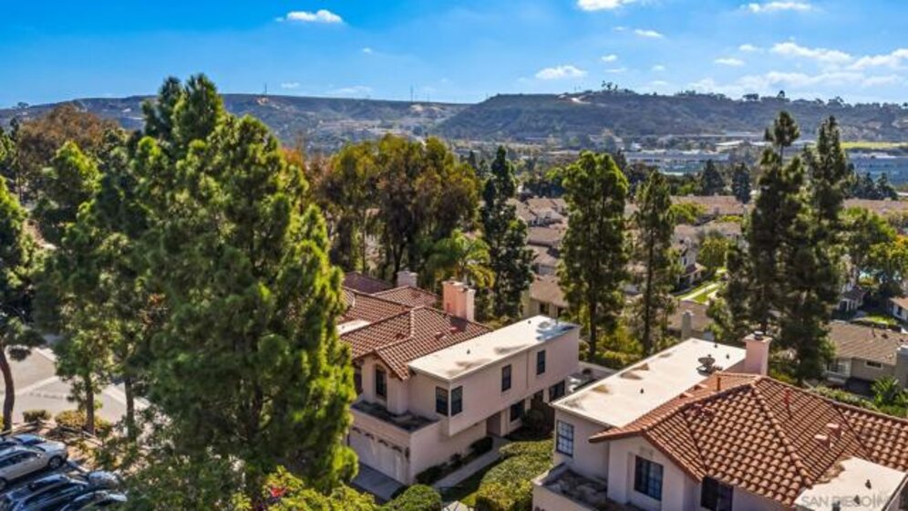 Welcome to your beautifully upgraded turn-key end-unit townhome, ready for you to move right in. Step outside to a bright, south-facing patio—newly tiled and perfectly elevated above the walking paths. Enjoy serene views of park-like pine trees and the rolling canyons and hills of Torrey Hills. The modern kitchen features stone countertops, tiled backsplash, and sleek stainless steel appliances—all oriented toward tranquil tree and hillside views. A sliding glass door provides direct access to the patio, ideal for entertaining with drinks and appetizers. The living room boasts vaulted ceilings, recessed lighting, and a cozy fireplace, creating the perfect retreat for winter evenings. It opens seamlessly to the spacious patio and its sun-filled, south-facing vistas. The bathrooms are finished in premium stone and tile, while the primary suite features a luxurious walk-in shower with dual shower heads. Additional highlights include dual-pane windows for superior quiet and insulation, central heating and air conditioning for year-round comfort, and a new energy-efficient on-demand gas water heater. The attached garage offers generous storage space and newly refinished, sealed floors. Enjoy resort-style living with a community pool, spa, and tennis courts, all in a beautifully maintained setting. Located just minutes from the shops and restaurants of Piazza Carmel, One Paseo, and Del Mar Highlands, as well as top-rated schools, the library, recreation center, the SR-56 bike path, and Torrey Pines State Beach. Experience the perfect blend of comfort, style, and location.