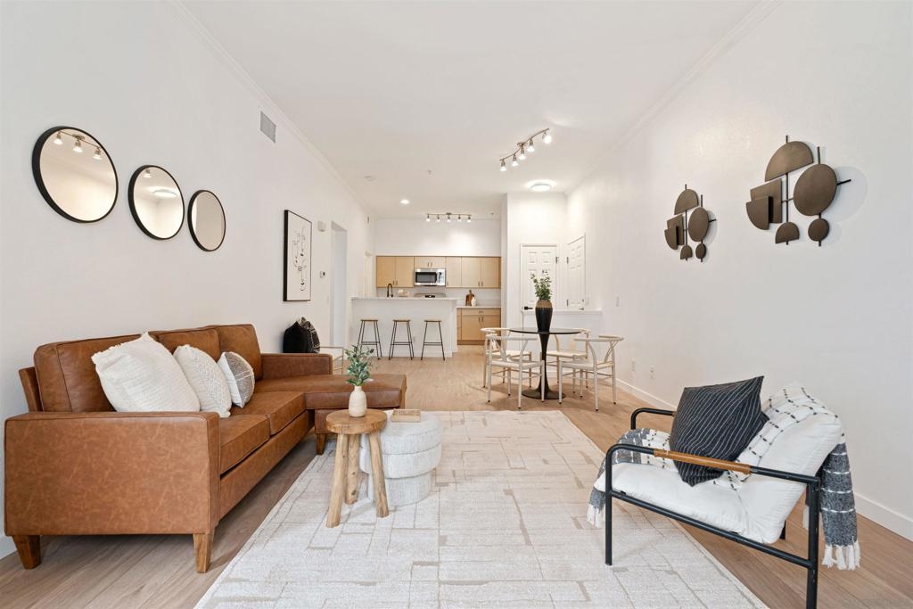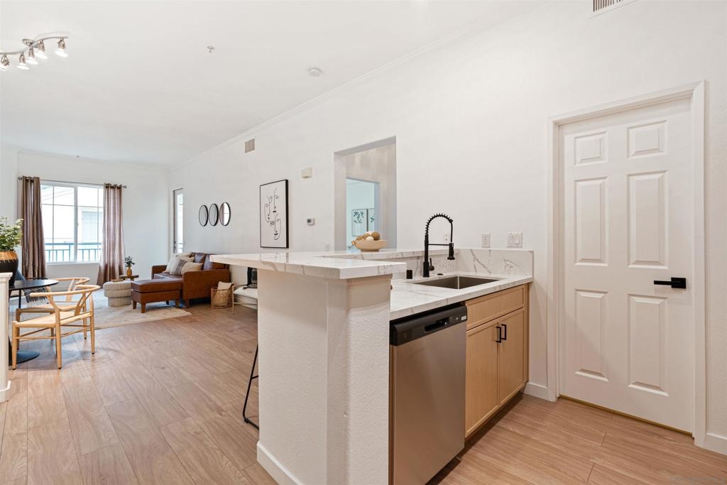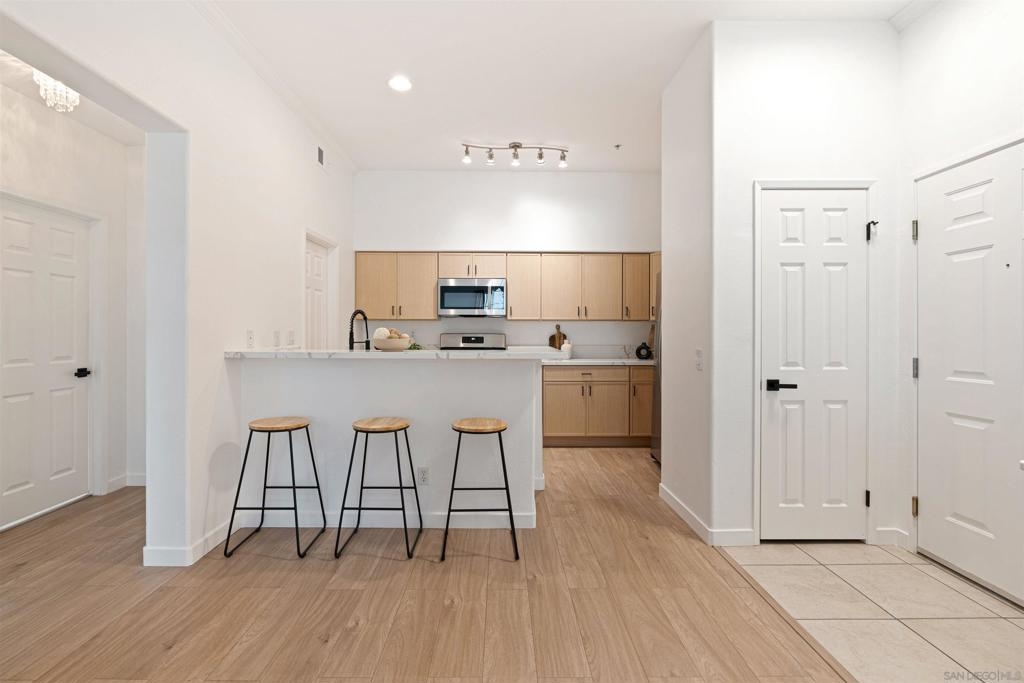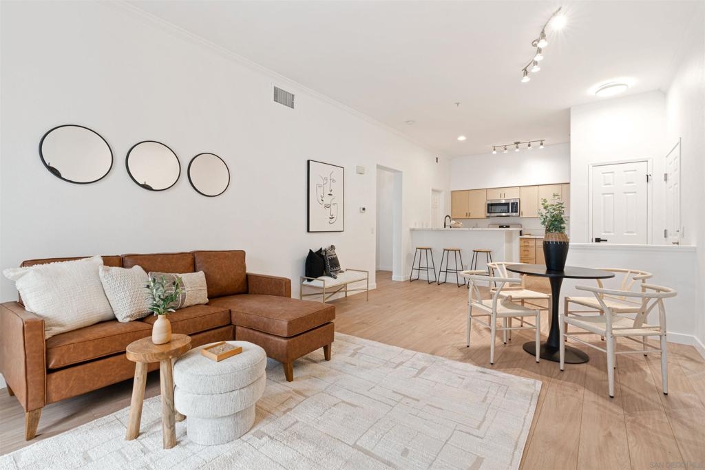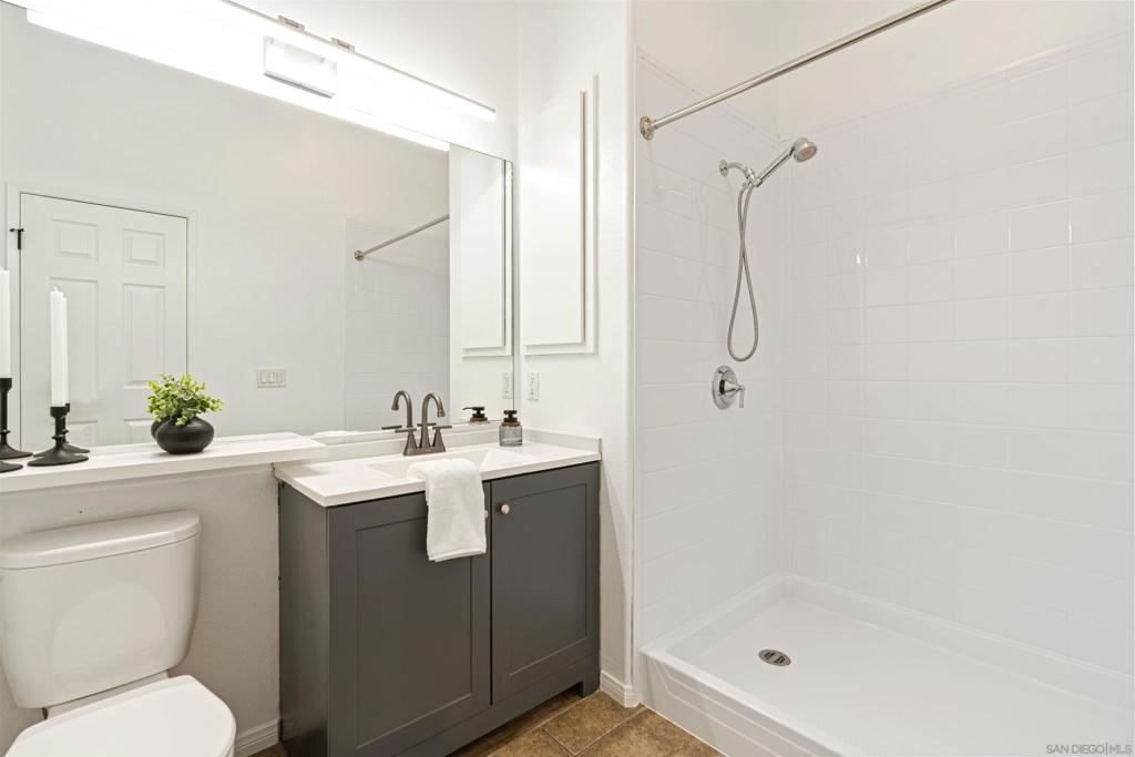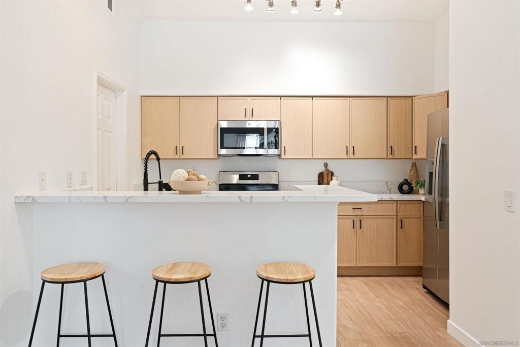 Top floor 1 bedroom 1 bathroom in The Heights at Carmel Valley! Step inside where brightness and an open layout immediately welcome you home. The newly updated kitchen is a true delight, offering a fresh and modern space. The living room creates an expansive and comfortable area. Cozy up on cooler evenings beside the fireplace or open the doors to the patio to let the breeze drift through. Both the living room and the bedroom offer direct patio access, allowing you to extend your living space outdoors and enjoy the fresh air anytime you wish. The gated community features a pool, spa, gym, and entertainment room. Close proximity to shopping, dining, freeway access, and Torrey Pine beach.
