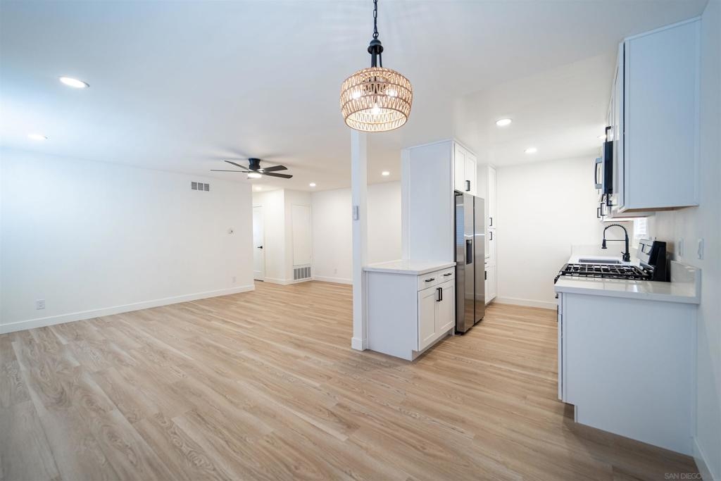 Welcome home to this beautifully remodeled 2-bedroom, 1-bath condo, where modern design meets everyday comfort. The open-concept layout is bathed in natural light, creating a warm and inviting living space ideal for both relaxing and entertaining. The sleek, contemporary kitchen showcases stainless steel appliances, quartz countertops, and custom cabinetry, offering both style and functionality. Each bedroom is generously sized and thoughtfully designed to provide a comfortable retreat. Conveniently located near major freeways, this home makes commuting a breeze while keeping you close to everything San Diego has to offer—dining, shopping, and entertainment. Whether you’re a first-time buyer or seeking a smart investment opportunity, this condo delivers the perfect balance of modern living and prime location. Some Images Have been virtually staged and contain original image next to it
