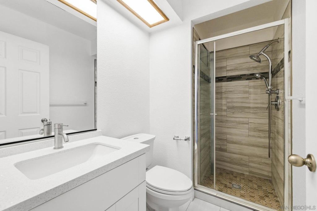 Beautiful Single-Story Villa located in the desirable Bernardo Heights area of Rancho Bernardo. This 2-bedroom, 2-bath home offers an open and airy floor plan, vaulted ceilings, and abundant natural light streaming from the skylights. The spacious living room features a cozy fireplace, 9-foot+ ceiling, and French doors that open to your private patio—perfect for relaxing or entertaining. Updated kitchen includes generous counter space, a charming bay-window breakfast nook, and stainless-steel appliances. Enjoy the convenience of an inside laundry room, ceiling fans, air conditioning, instant hot water, and direct access to the attached garage. The primary suite boasts vaulted ceilings, a skylight, and a beautifully updated en-suite bath. Residents of the Las Brisas community enjoy access to Bernardo Heights Community Center with tennis courts, pool, spa, fitness center, and more. Nearby Lucido Park offers tennis courts and a playground for outdoor fun. This turn-key home blends comfort, convenience, and resort-style living in one of Rancho Bernardo’s most sought-after neighborhoods.