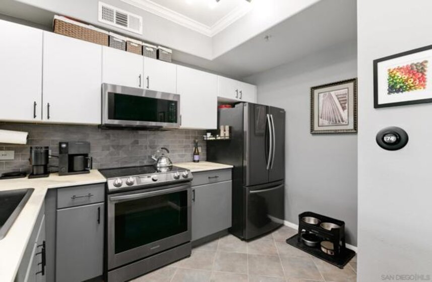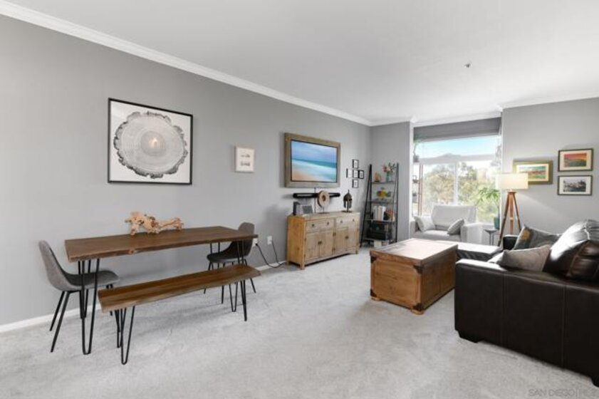 Welcome home to The Mills atop of beautiful Cortez Hill! This spacious corner VA and FHA approved unit features new carpet, updated kitchen with newer black stainless steel appliances, and stackable in-unit washer and dryer. Smart-home upgrades include Google Nest keyless entry, smart thermostat, and integrated fire alarms. The home also features a balcony with views of Balboa Park and the bay. Building amenities include underground garage parking, fully equipped fitness center, private storage unit, additional street parking permits, and access to the historic Mills House clubhouse. The location is perfect for an active lifestyle. Minutes from Balboa Park, Little Italy, Bankers Hill, Gaslamp, Petco Park, the Embarcadero, and the airport. Walk to restaurants, the farmer's market, concerts, entertainment, and outdoor recreation—while still feeling tucked away from downtown’s hustle! With all this at your fingertips, this home is a must see!