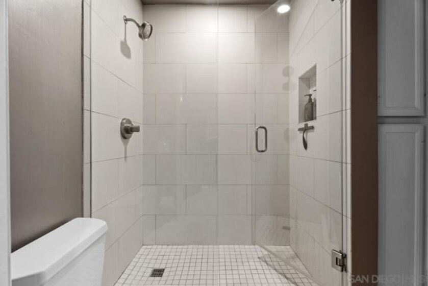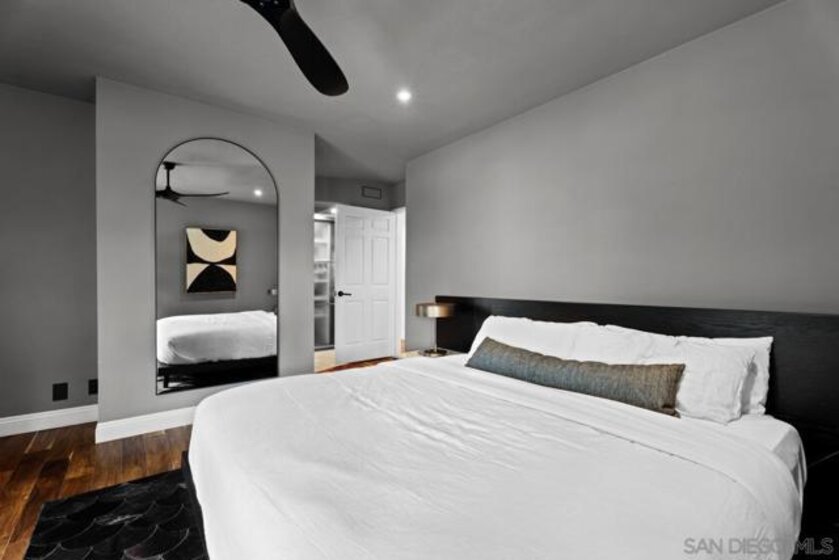 Tucked into the heart of Cortez Hill at Park View, this southwest-facing corner residence offers a rare blend of natural light, privacy, and design. Perched above a quiet, tree-lined street, the home is wrapped in windows and filled with light throughout the day, creating an open, inviting feel that’s hard to find downtown. Just moments from Little Italy and Balboa Park, the location delivers both walkability and a more residential setting. Extensively updated, the home features acacia wood floors, smooth-coated walls, and curated finishes throughout. The living and dining areas are anchored by custom wood slat accent walls and designer lighting, including a Crate & Barrel chandelier and CB2 fixtures, adding warmth and architectural interest. The kitchen offers granite countertops, stainless steel appliances, and a seamless connection to the main living space. Both bedrooms are generously sized, including a primary suite with an ensuite bath, ample closet space, and motorized blackout shades. Bathrooms have been tastefully remodeled with a clean, modern design. Additional highlights include a large in-unit laundry room, two side-by-side parking spaces with EV charging, and a brand new HVAC system. New windows and southwest exposure enhance natural light throughout. Smart home features include Philips Hue lighting, smart switches, Nest thermostat, and SimpliSafe security system. The home blends thoughtful design with modern convenience in one of downtown San Diego’s most desirable neighborhoods.