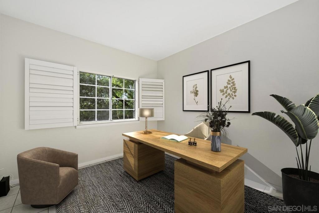 Desirable ground-floor corner unit in The Summit of Rancho Bernardo, offering privacy, abundant natural light, and a bright open layout. The spacious living room features a cozy fireplace and sliding glass doors that open to a private patio with peaceful greenery views, perfect for morning coffee or relaxing outdoors. The primary bedroom includes a large walk-in closet and an en-suite bathroom. Additional highlights include in-unit laundry, two parking spaces, and a private patio storage closet for added convenience. Enjoy the amenities of this highly sought-after community, including two pools, a fitness center, and tennis courts. Ideally located within the award-winning Poway Unified School District and just minutes from popular restaurants, shopping centers, parks, and everyday conveniences in Rancho Bernardo. VA approved complex.